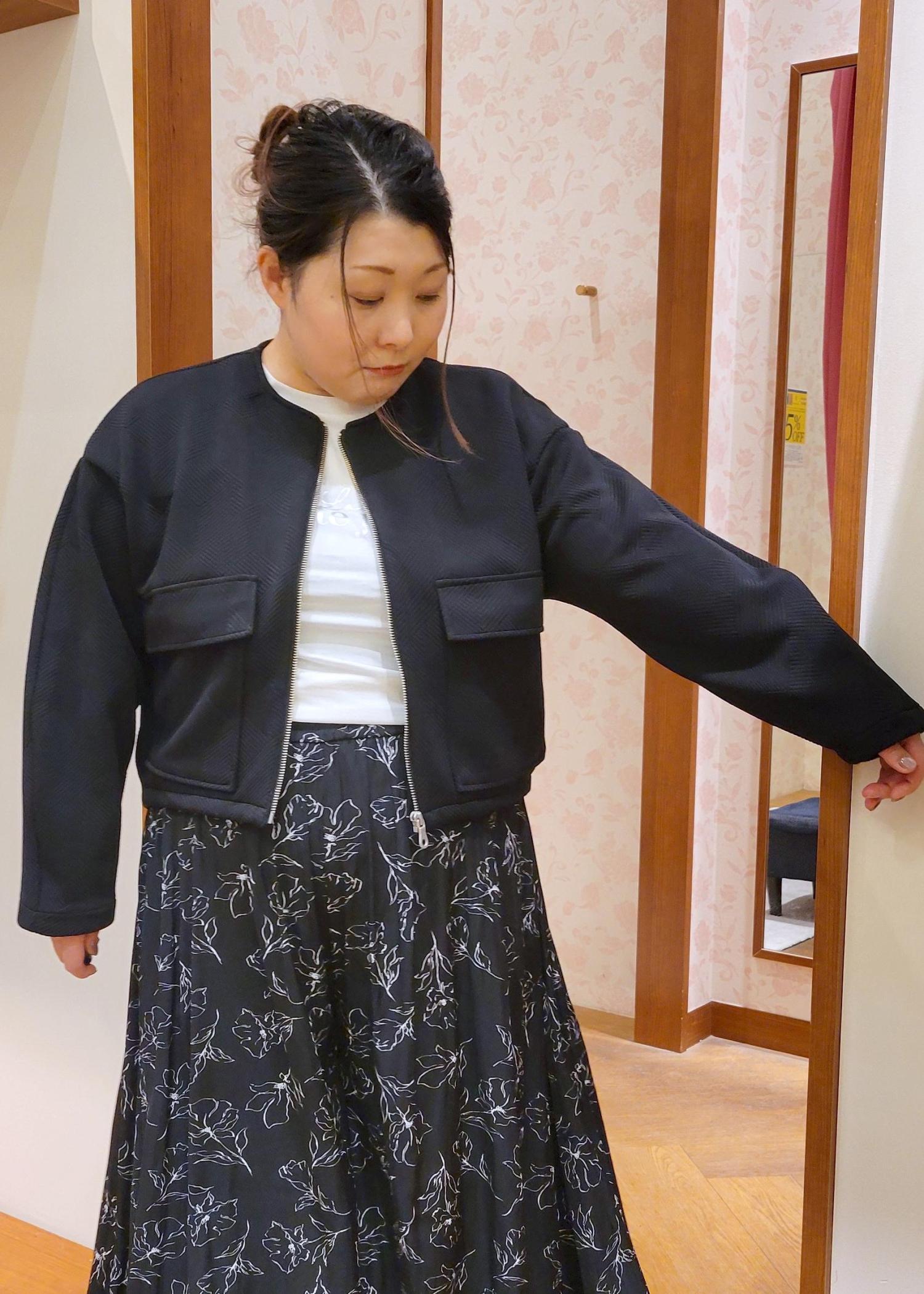 幾何柄ジャガードショート丈ブルゾン
