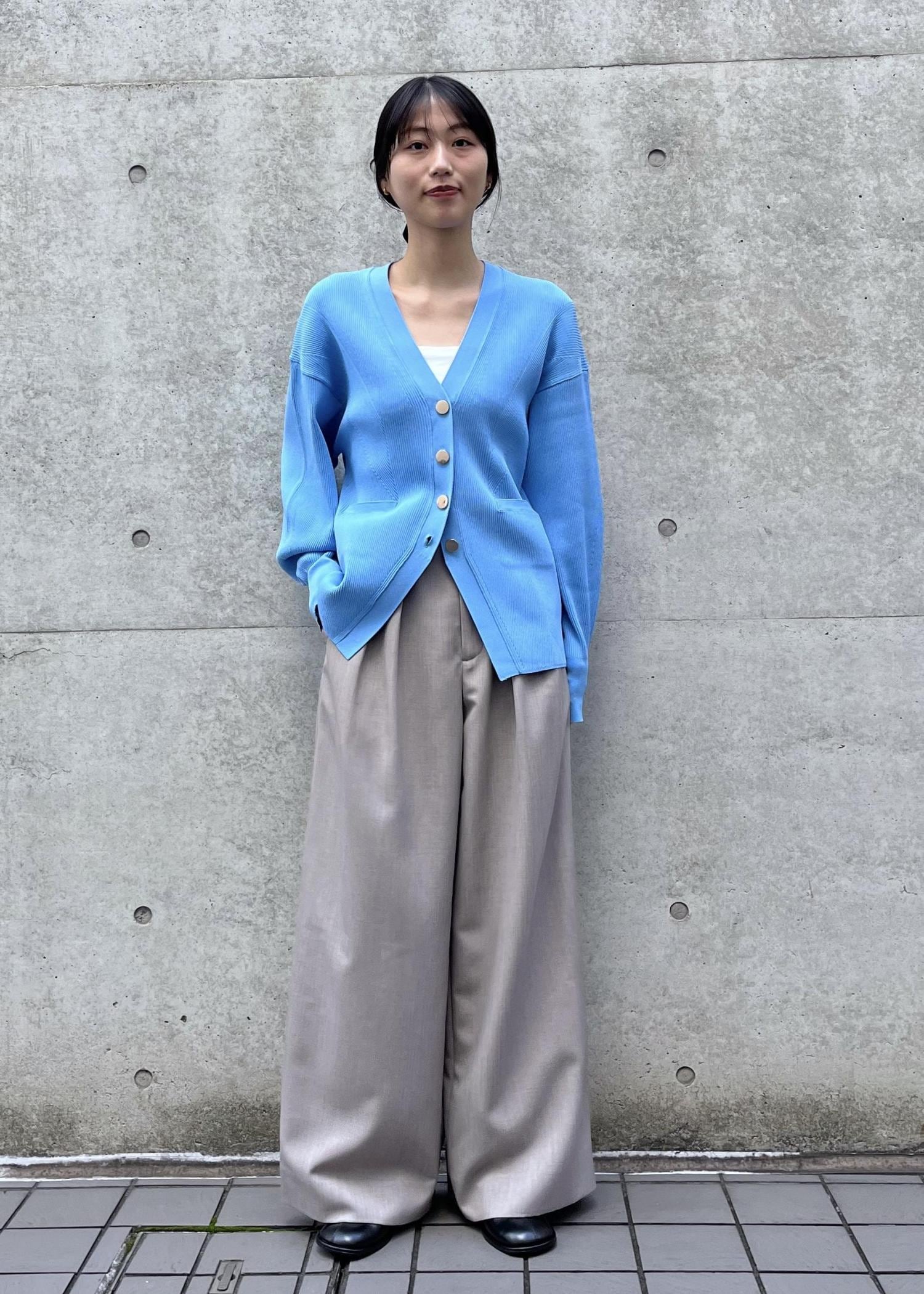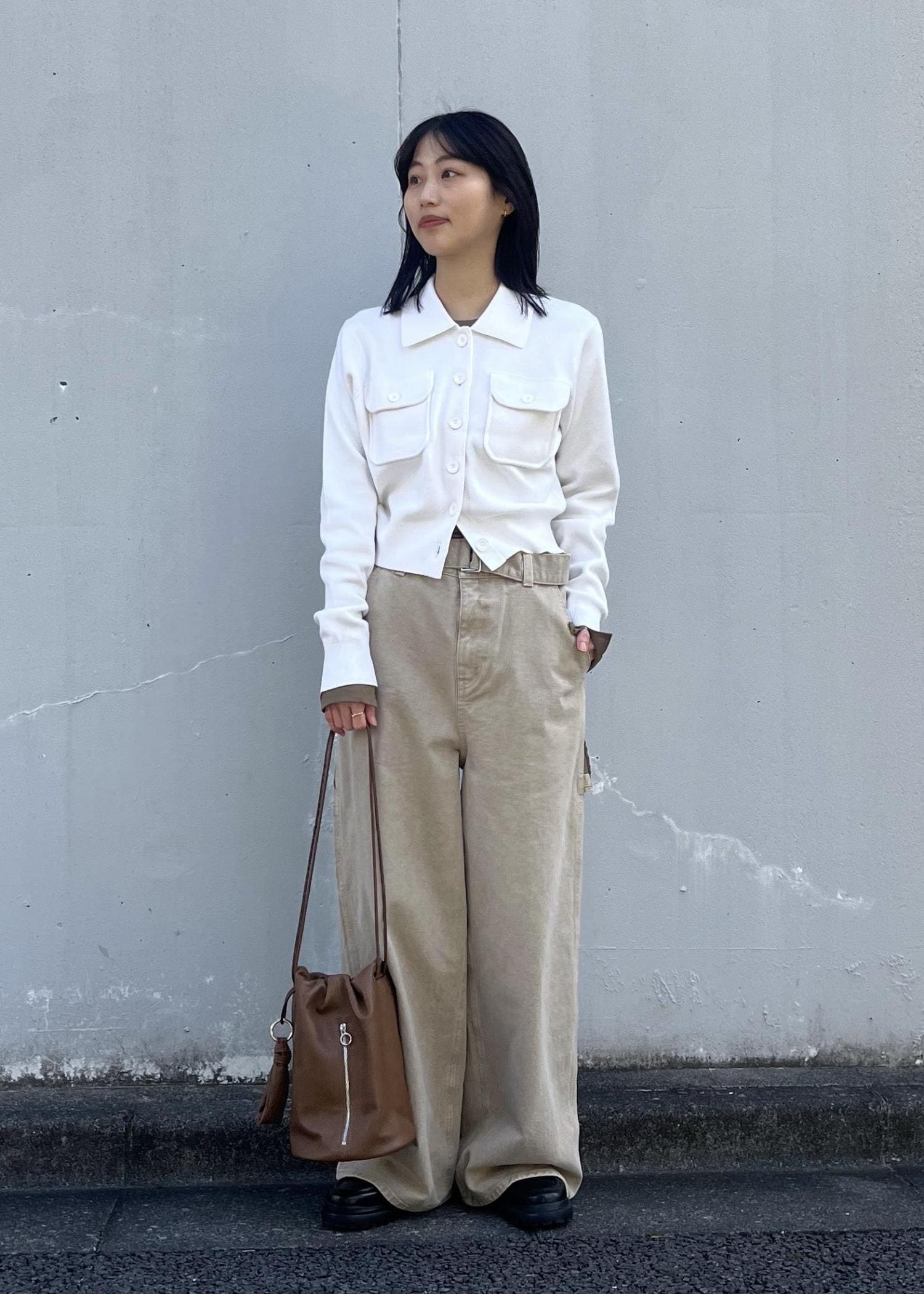 本日はベアキャミコンビカットソーカーディガンを着用しました。柔らかく伸びのいい素材なので着心地◎程よいフィット感が女性らしく見せてくれるのでラフにスウェットパンツ合わせもかわいいです!