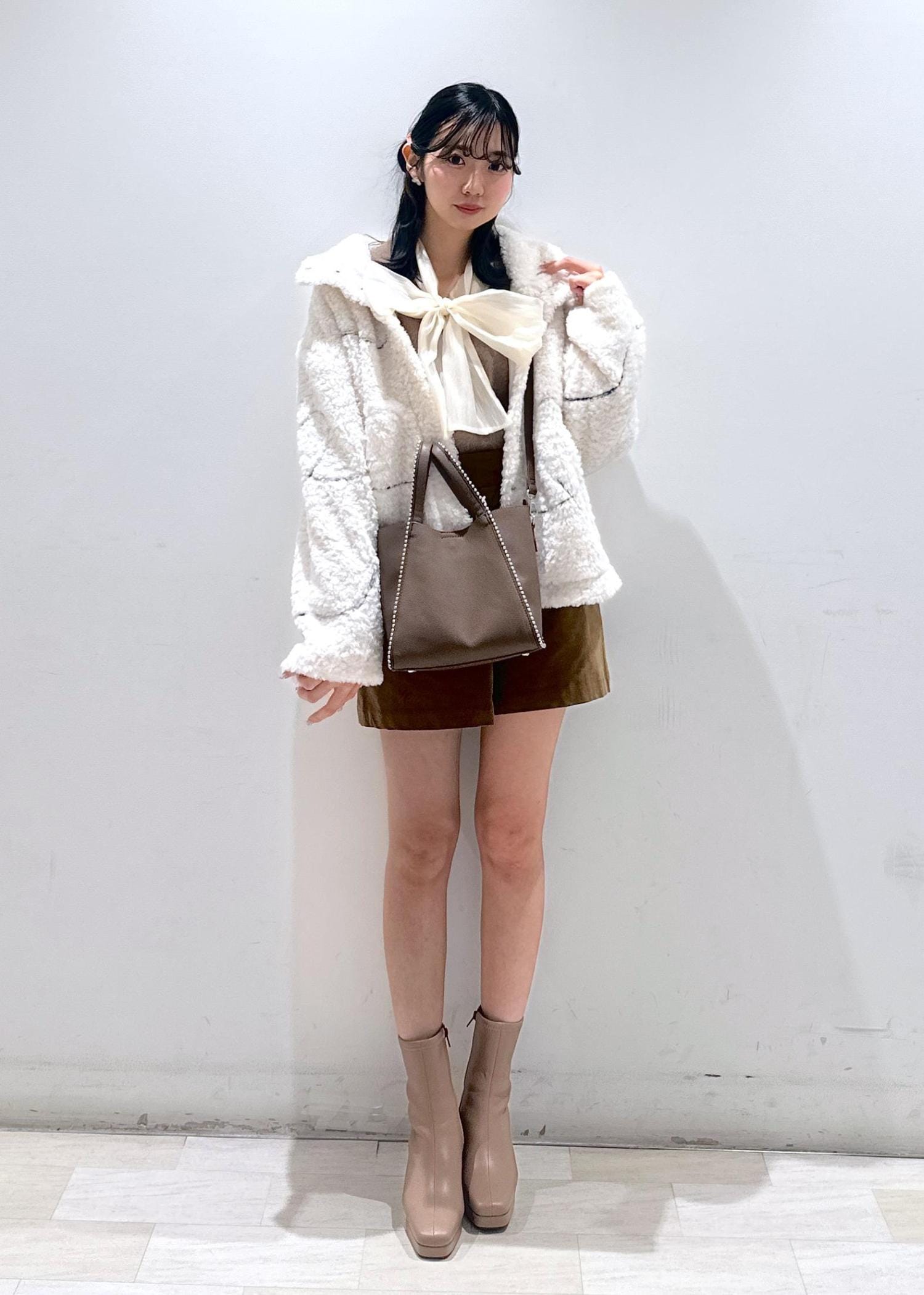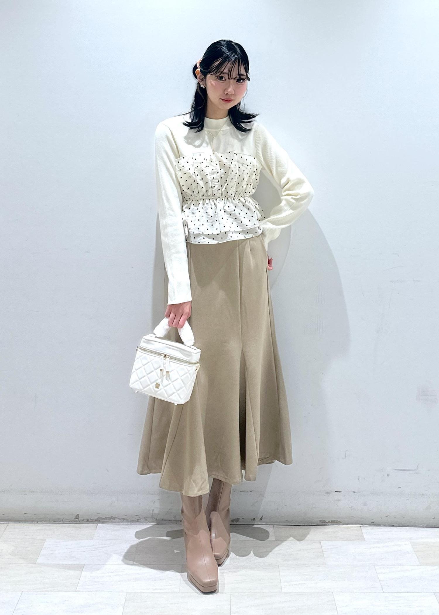 シンプルな色合いですがシルエットにこだわったガーリーコーデです。