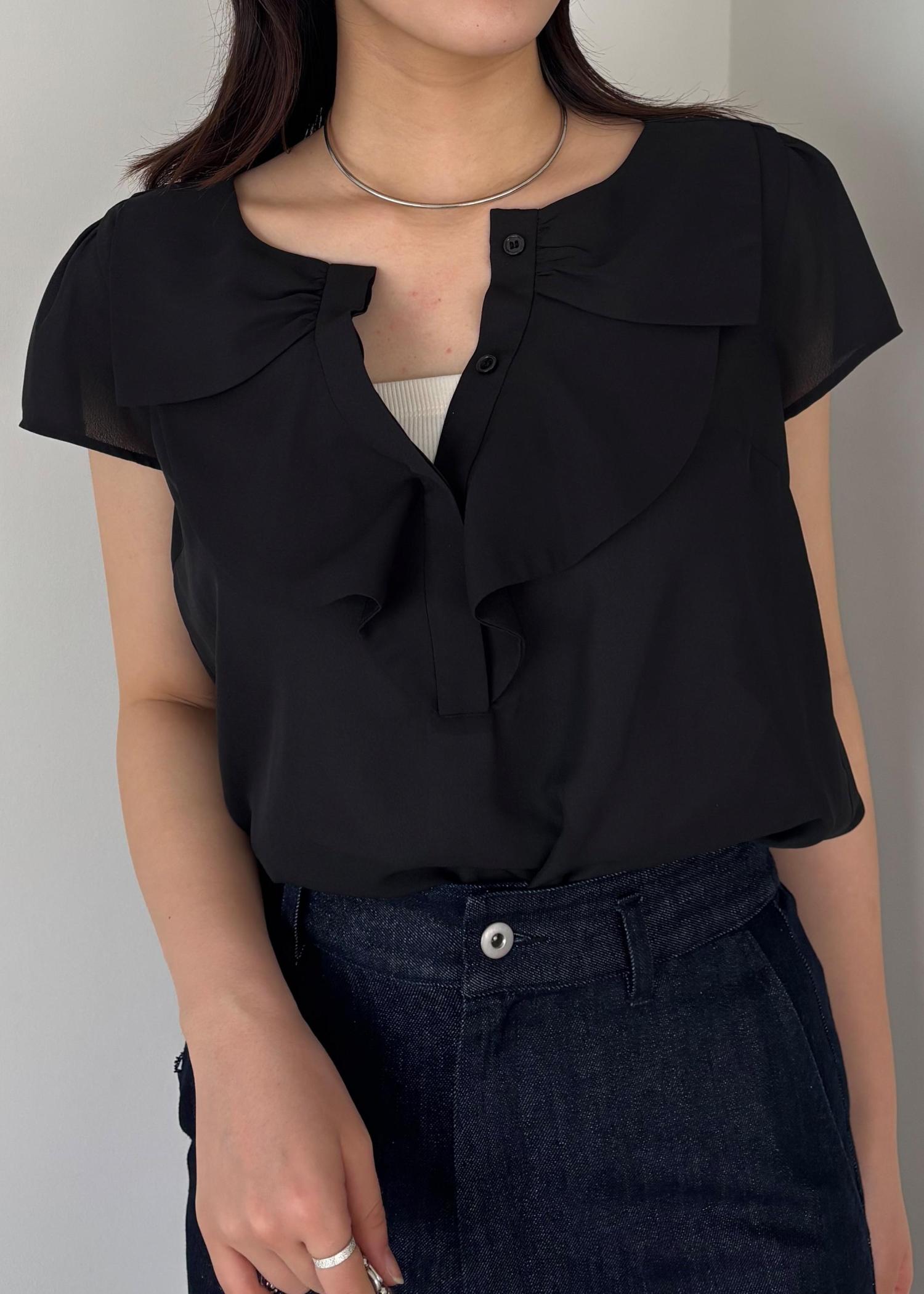 アウトレットVIS【WEB限定】【2WAY】リボンモチーフフリルブラウスブラック / F¥4,391レビュー165cmで腰にかかる丈感です!