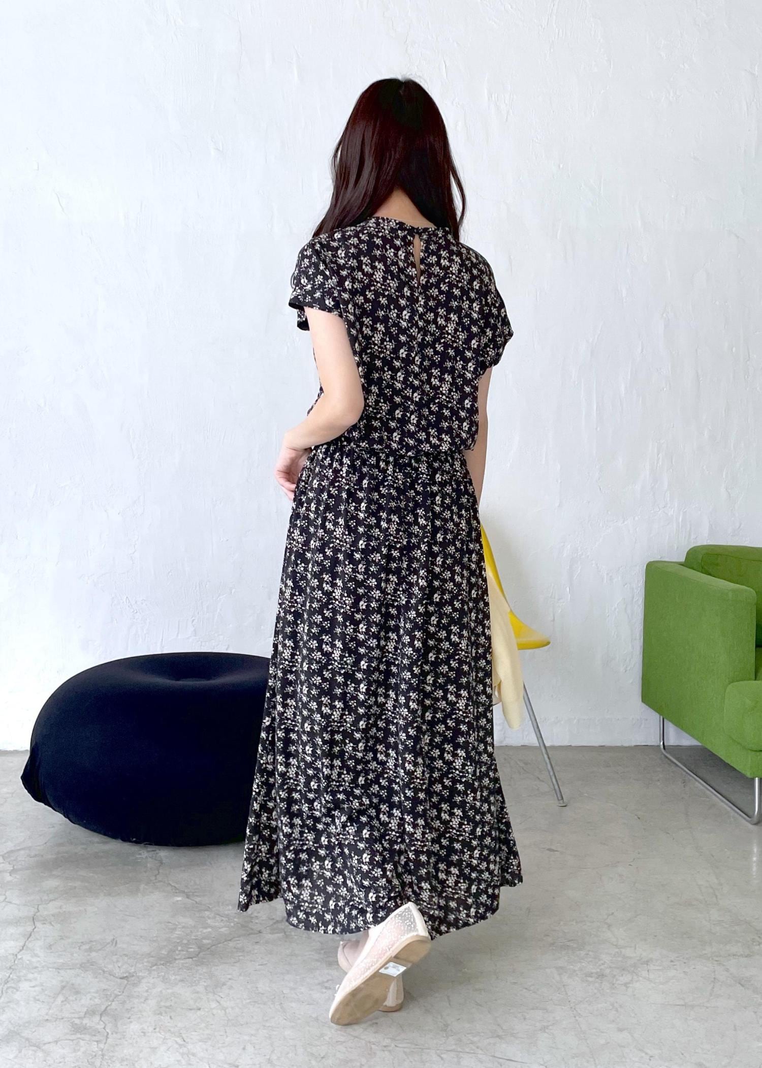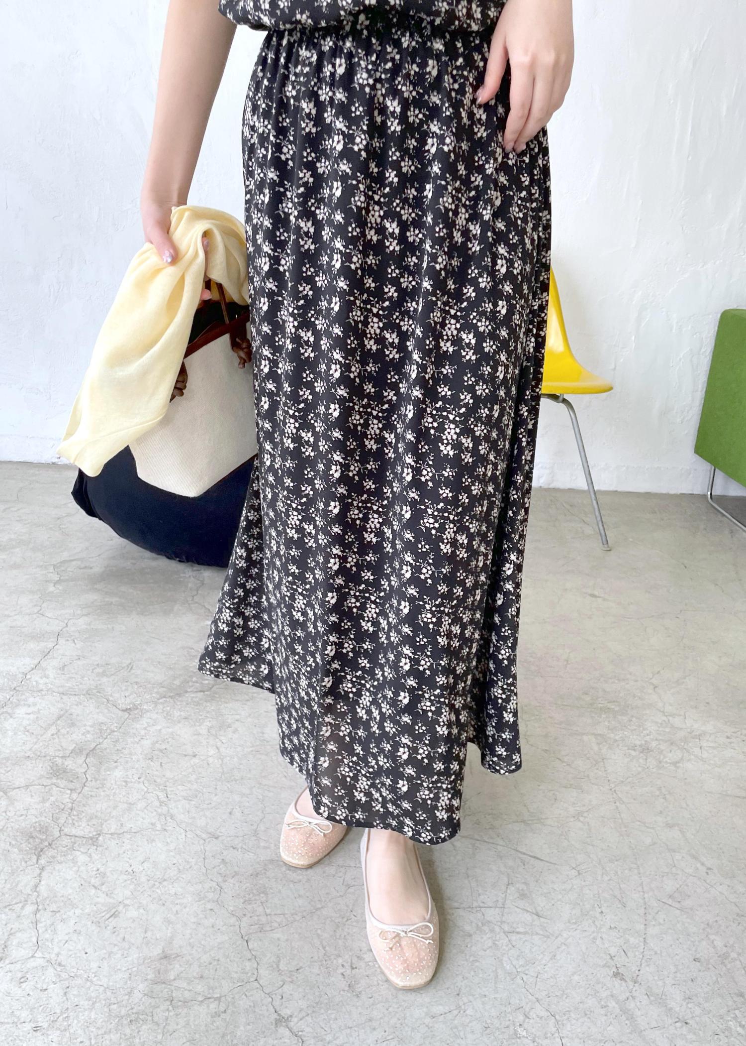 可愛らしい印象になりがちな小花柄のワンピースですが、シアーのアイテムやシンプルなバッグを合わせることによって大人らしく着用してみました。