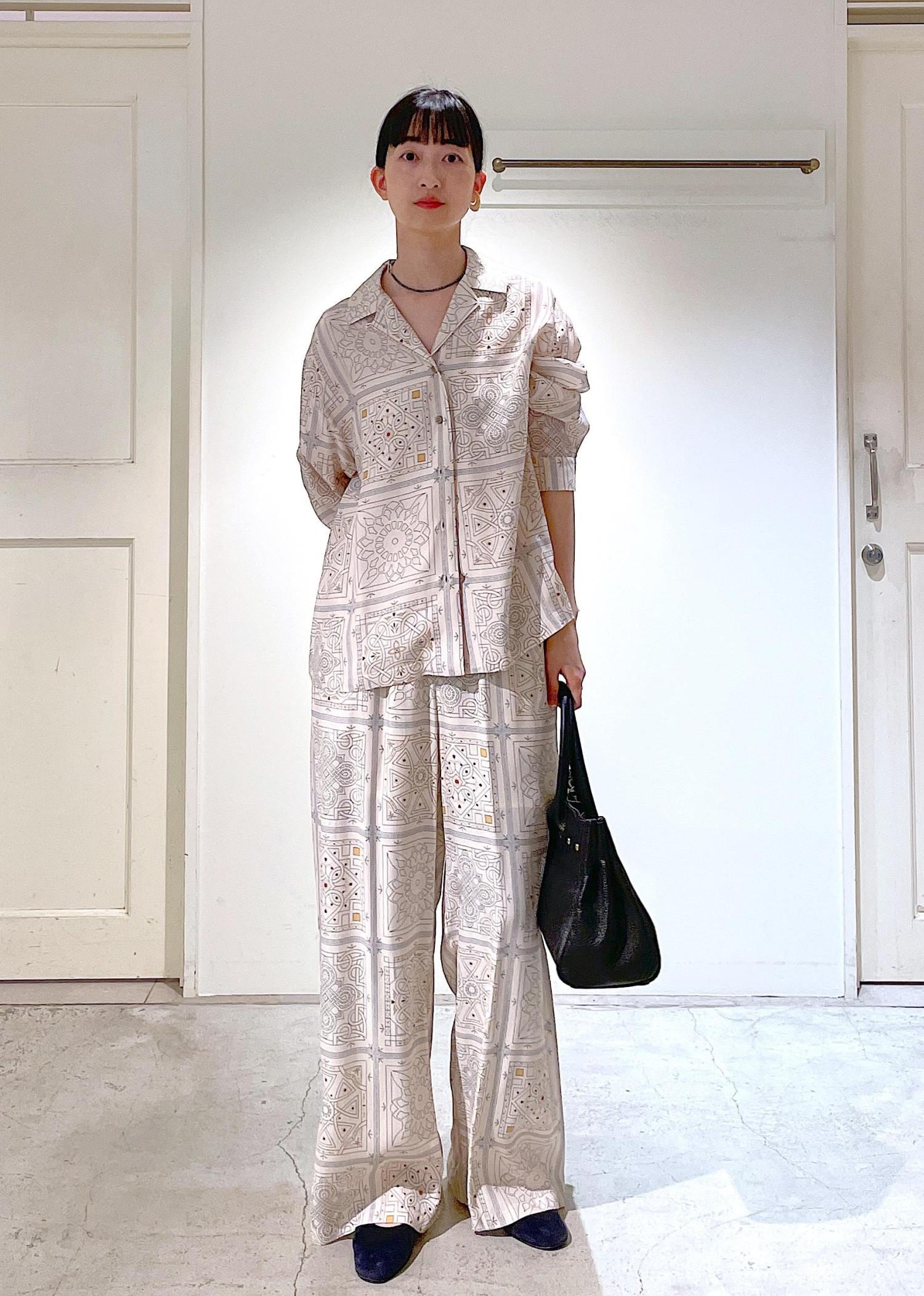 衿元の開きににこだわり、ラフになりすぎず、大人の抜け感を感じさせるシャツ、素敵です。