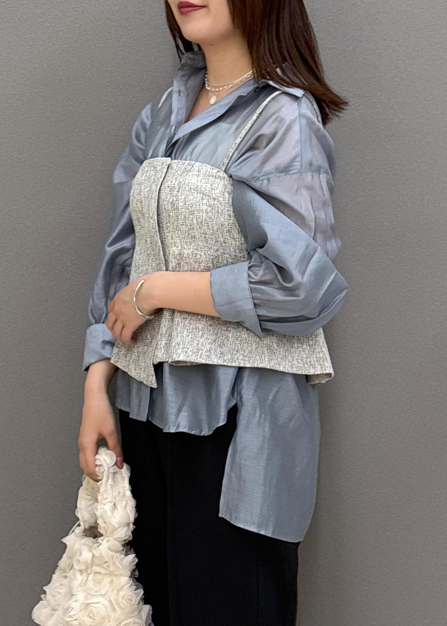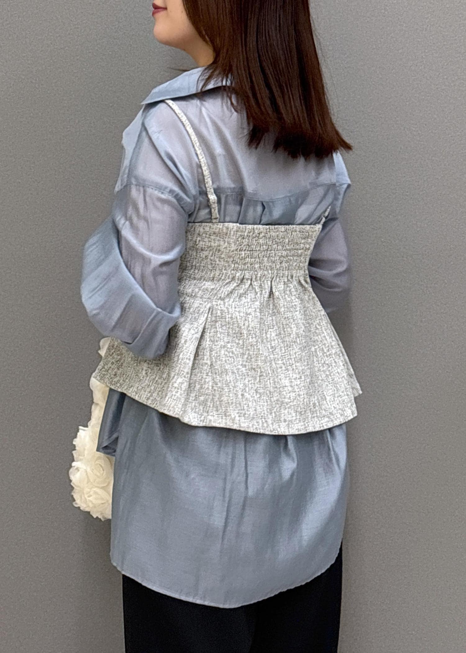 アウトレットVIS【洗える】アソートシアーシャツ(フラワー刺繍&無地)グレー / F¥2,745レビュー前後差がある着丈で160㎝だと後ろはヒップまで隠れる長さです。全体的にゆったりとしたシルエットで安心感も◎さらっとした薄手の素材で軽い着心地です!