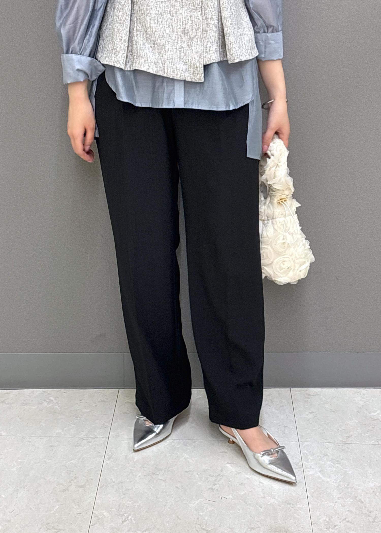 VIS【美easy】ワンタックワイドスラックスパンツ/洗えるブラック / M¥5,489レビュー160㎝でMサイズ着用だと足首が隠れる着丈です。太ももまわりもゆったりしていて、脚のラインを拾いにくいです。リネンライクの生地でさらっとした肌触りなので春夏通して使えます!