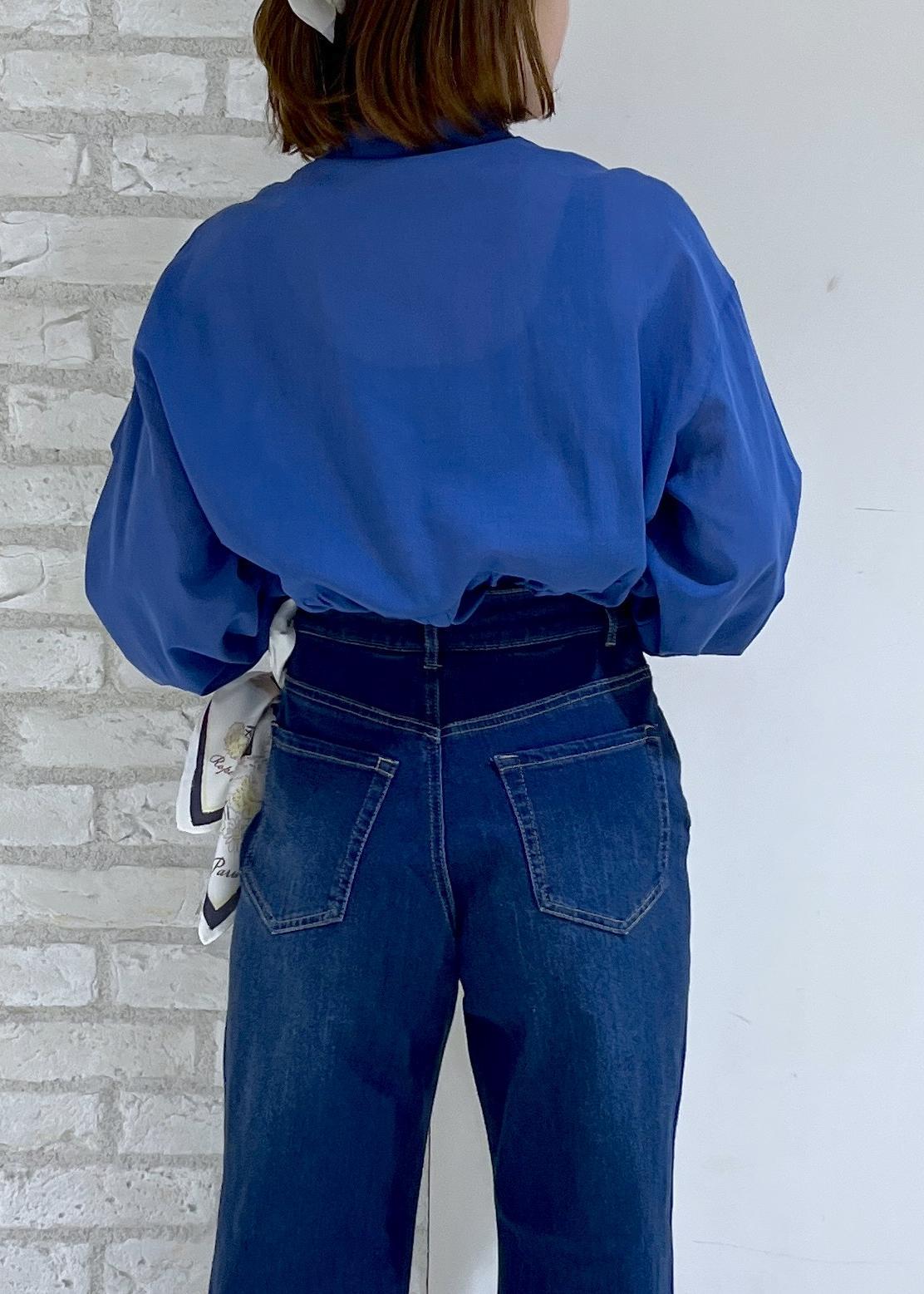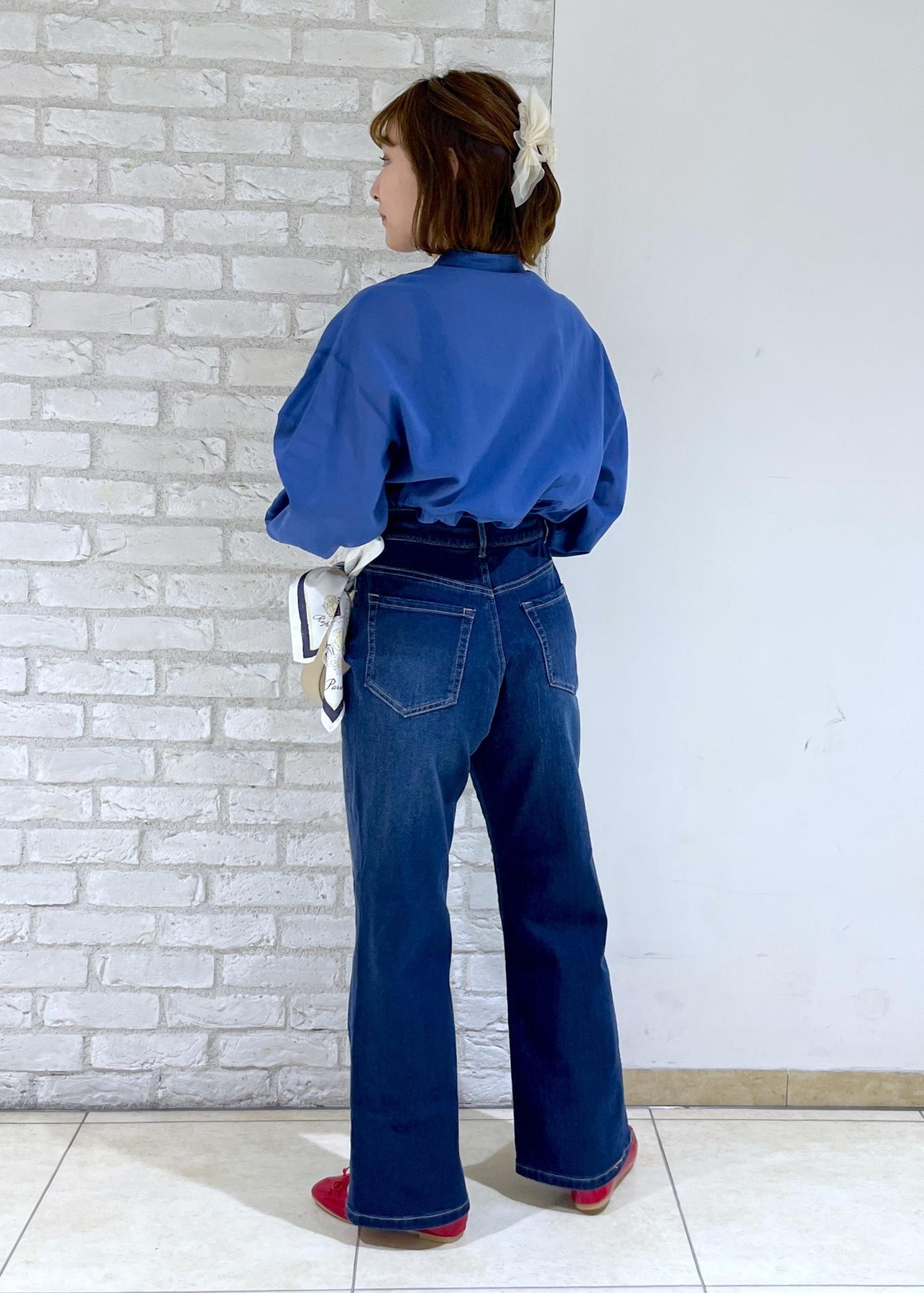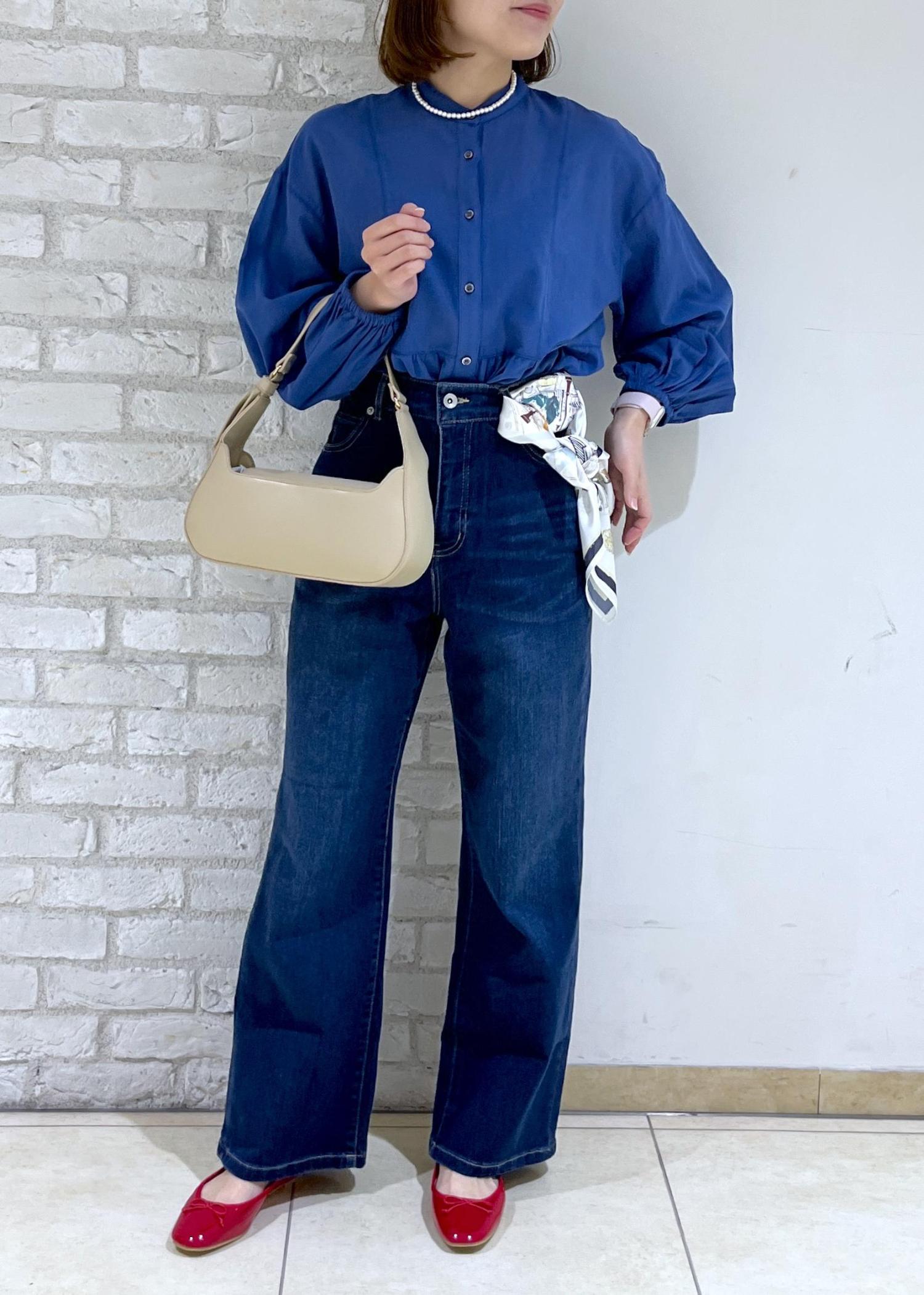 鮮やかなブルーのシャツにデニムで合わせたシンプルコーデ♪