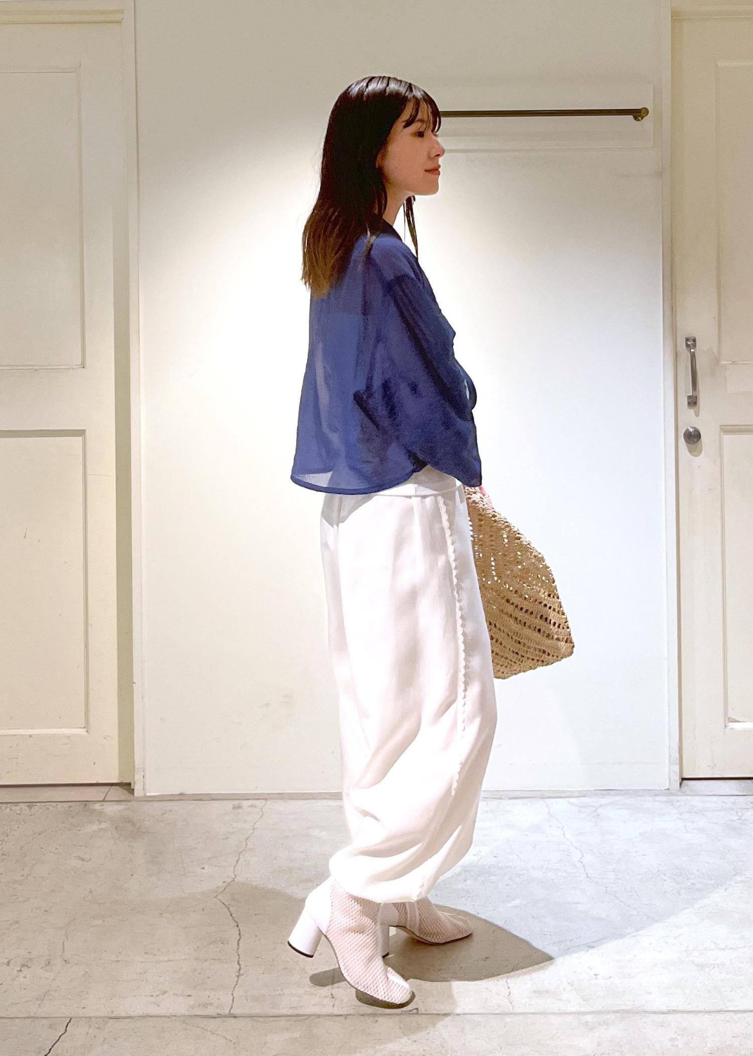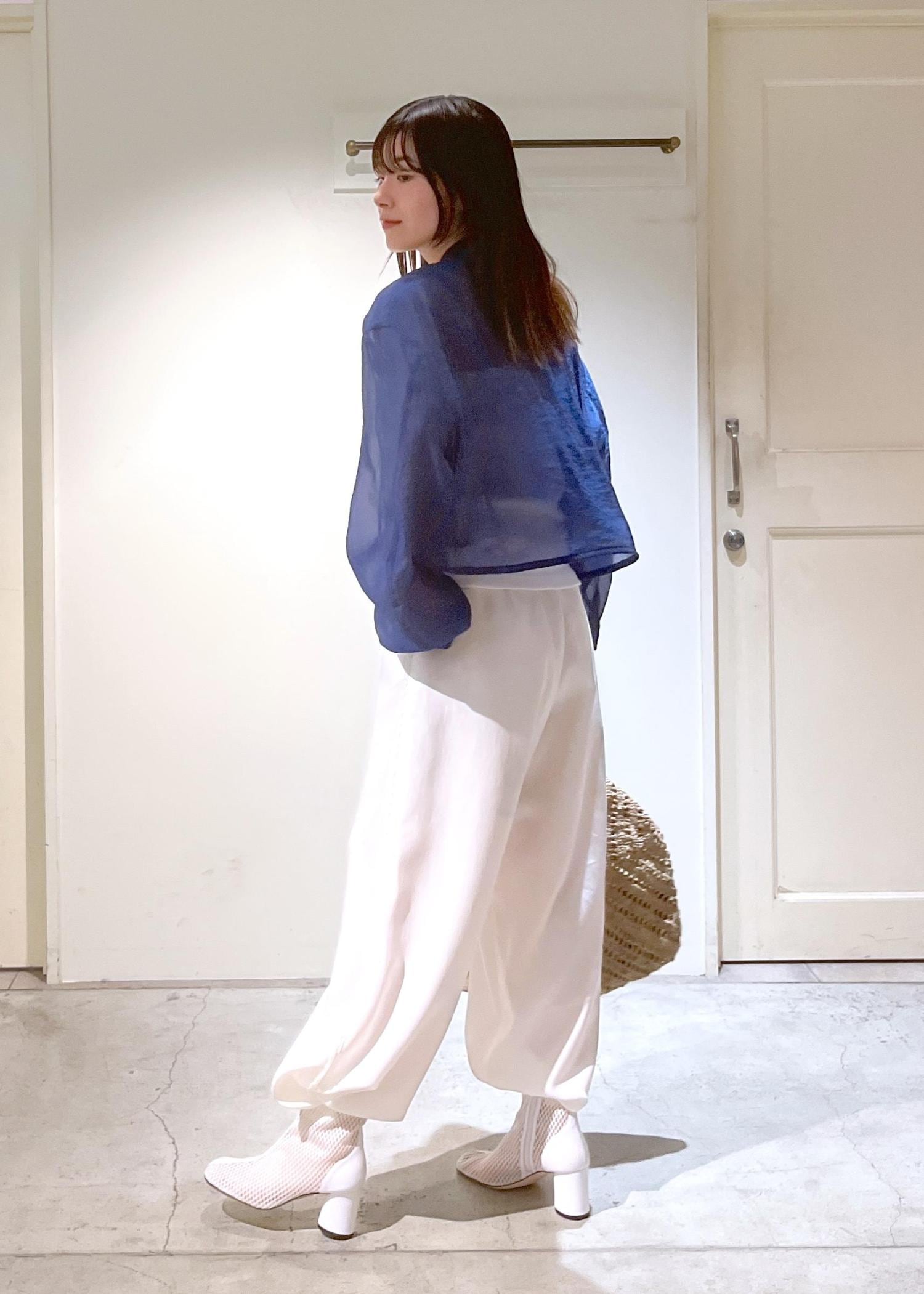 シャリ感あるシアー素材。ゆとりあるシルエットですが、袖はリブがあり、捲っても着ていただけます。夏場の日焼け対策にもバッチリです◎ -
