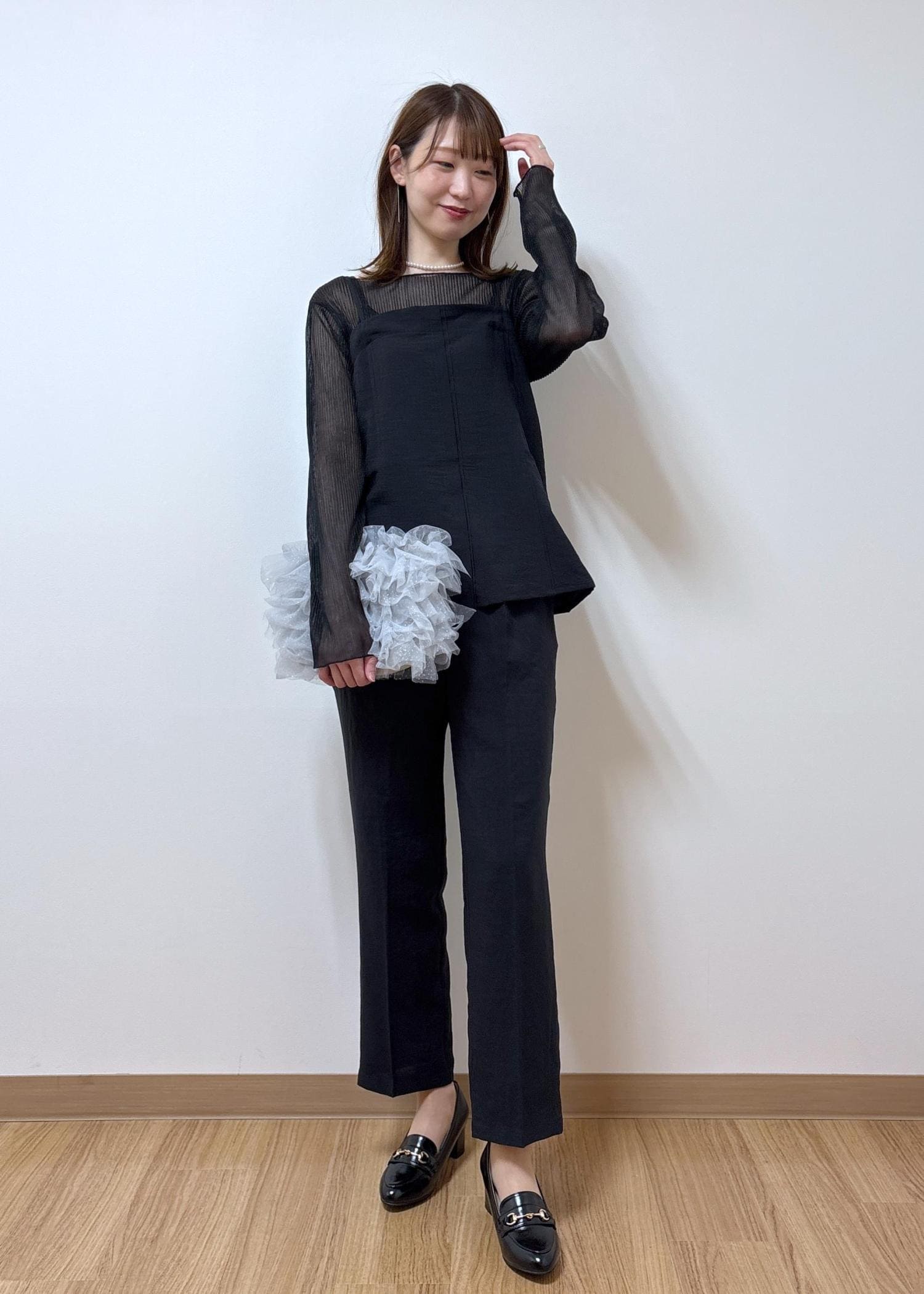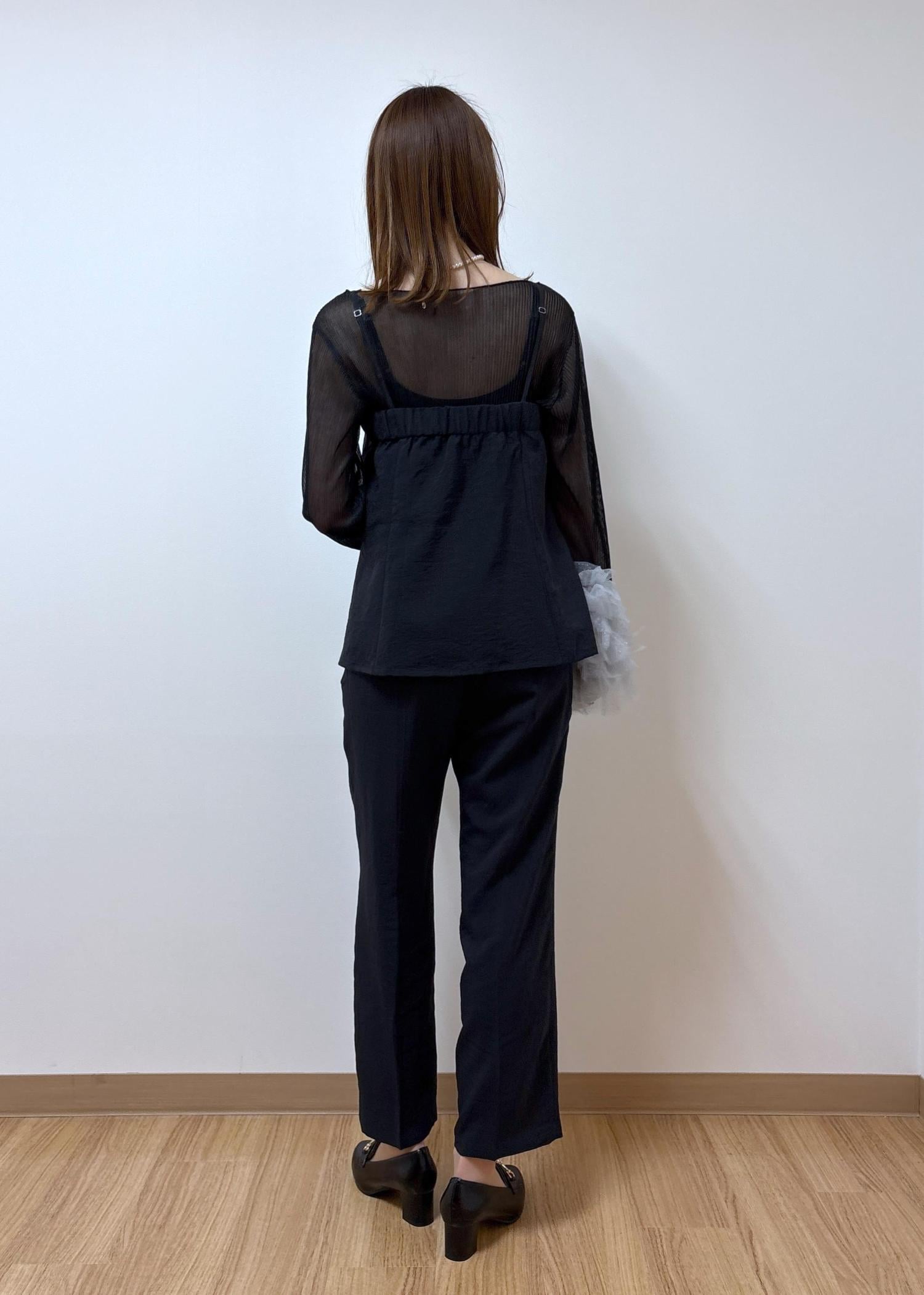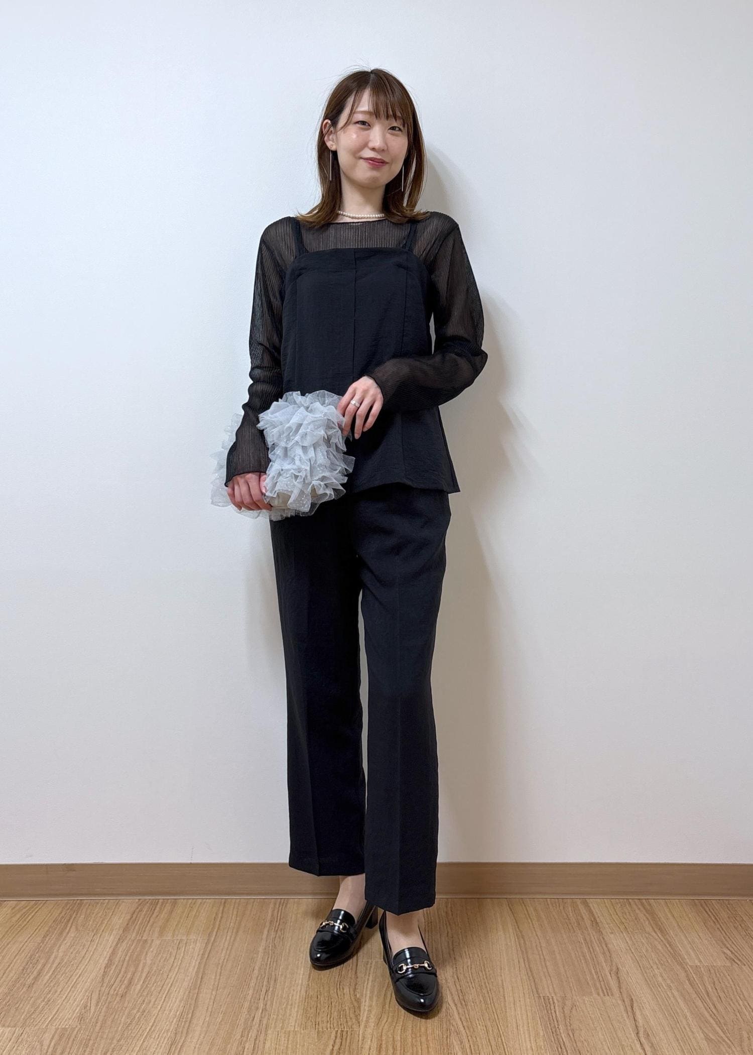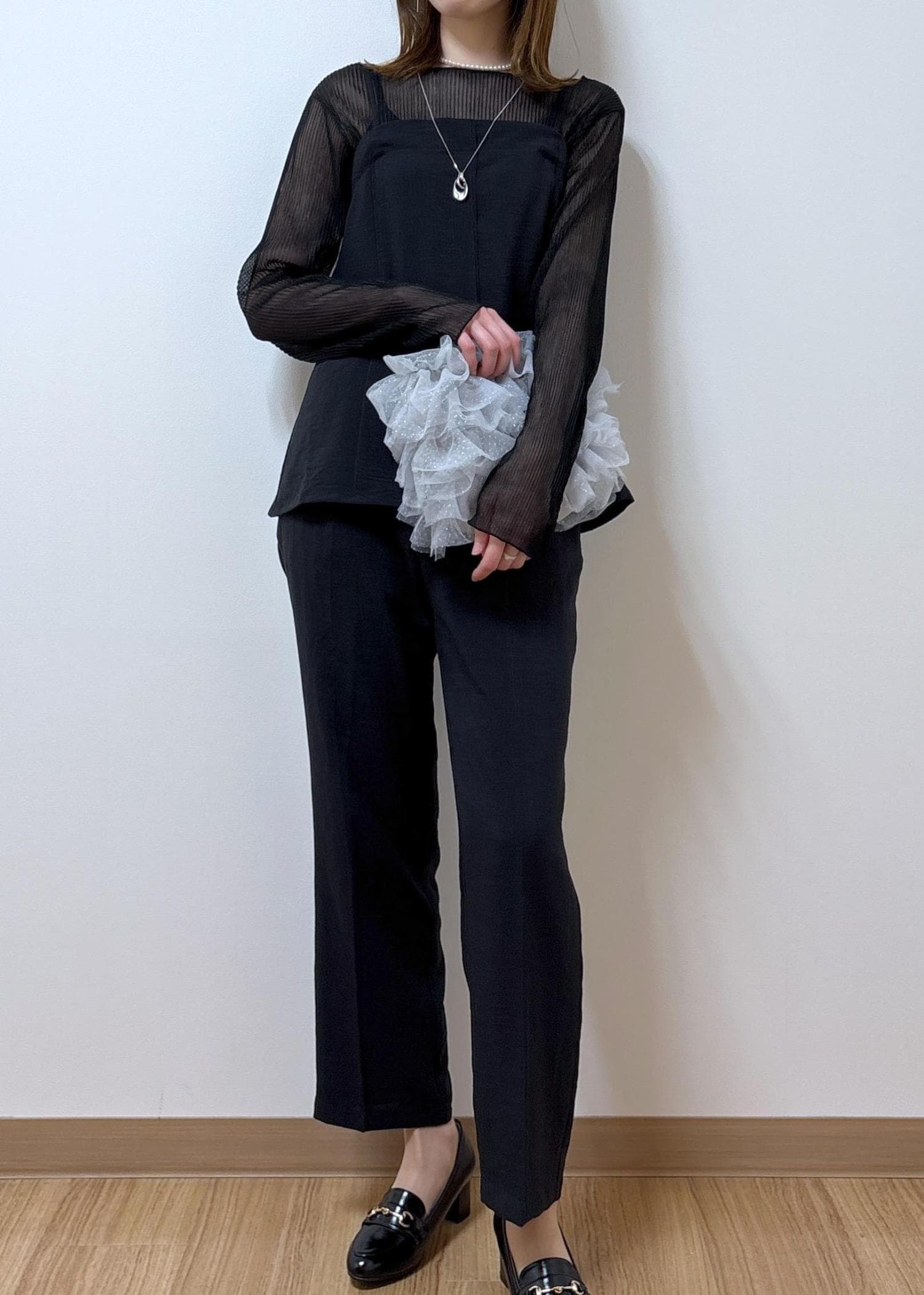 エフォートレスシリーズのビスチェとパンツのセットアップコーデです。