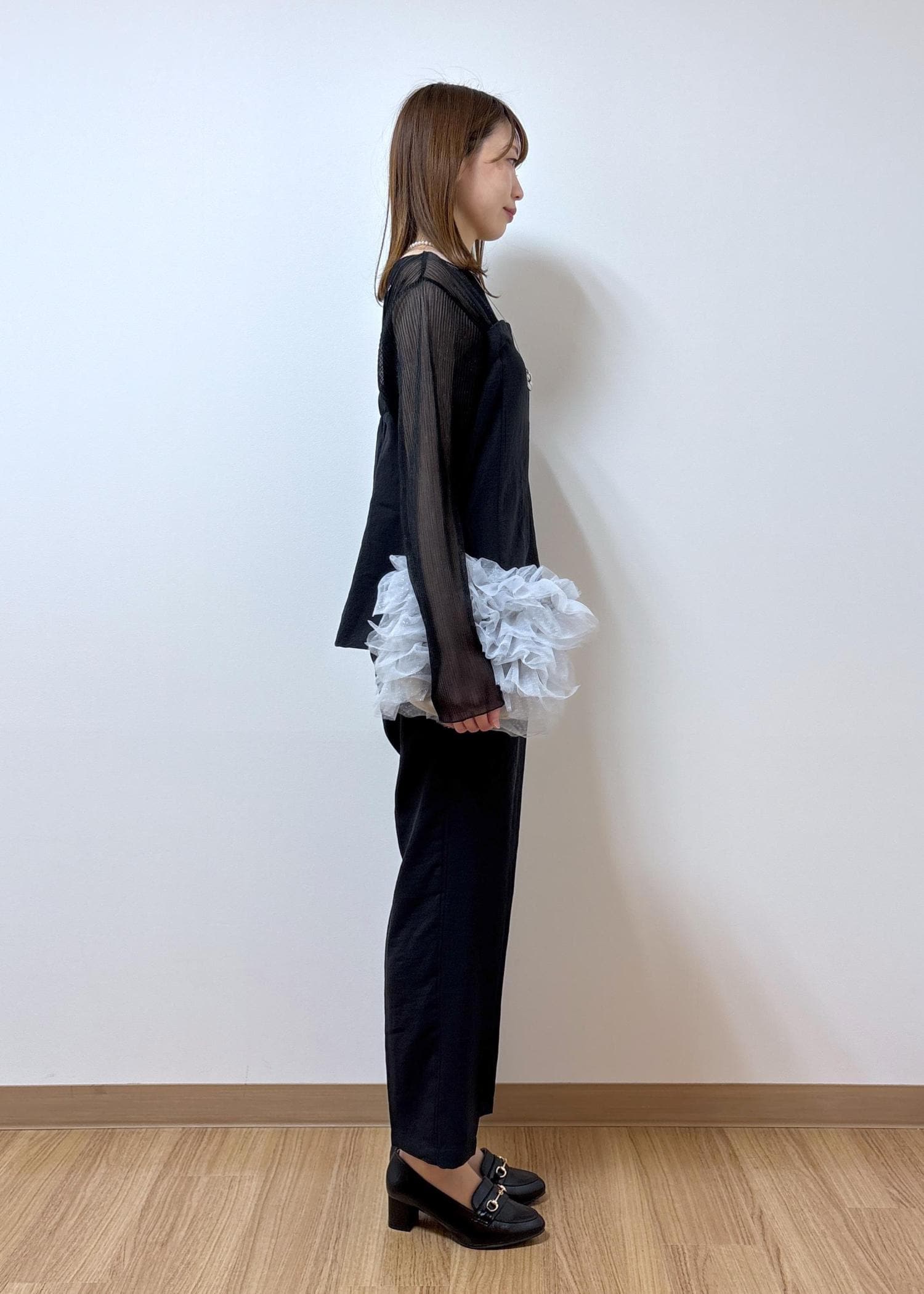 透け感のあるチュールのインナーで軽やかさを出しています。