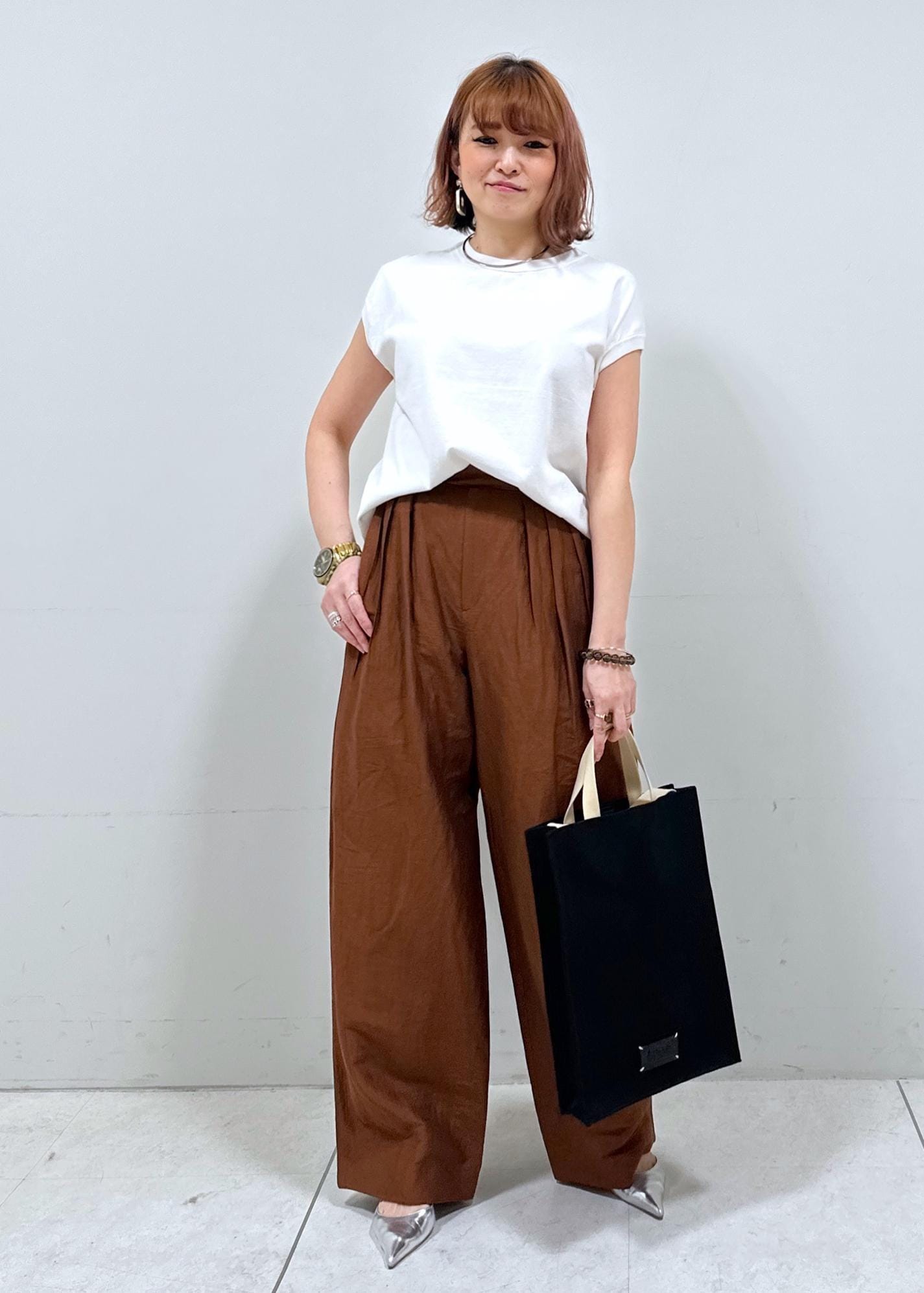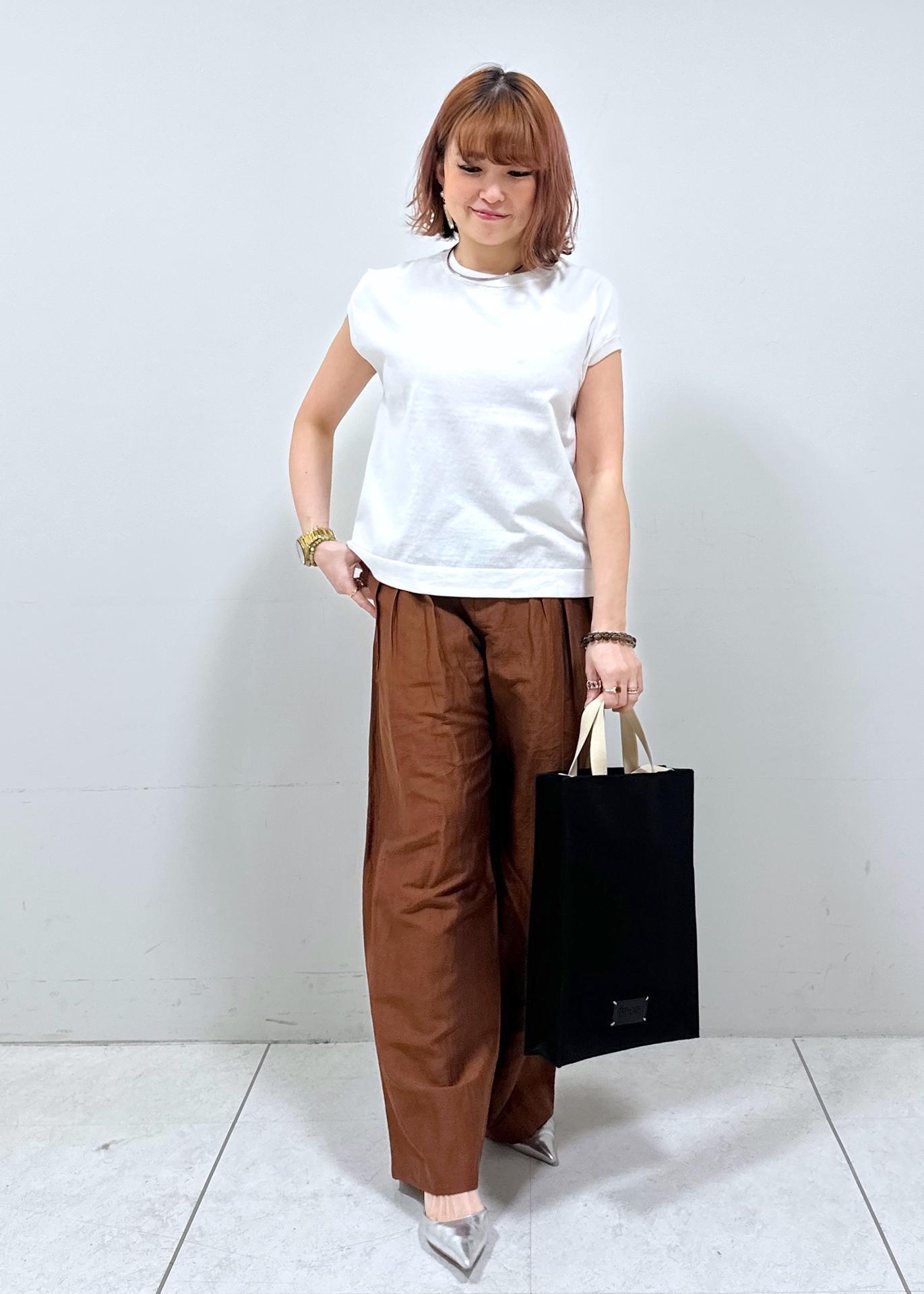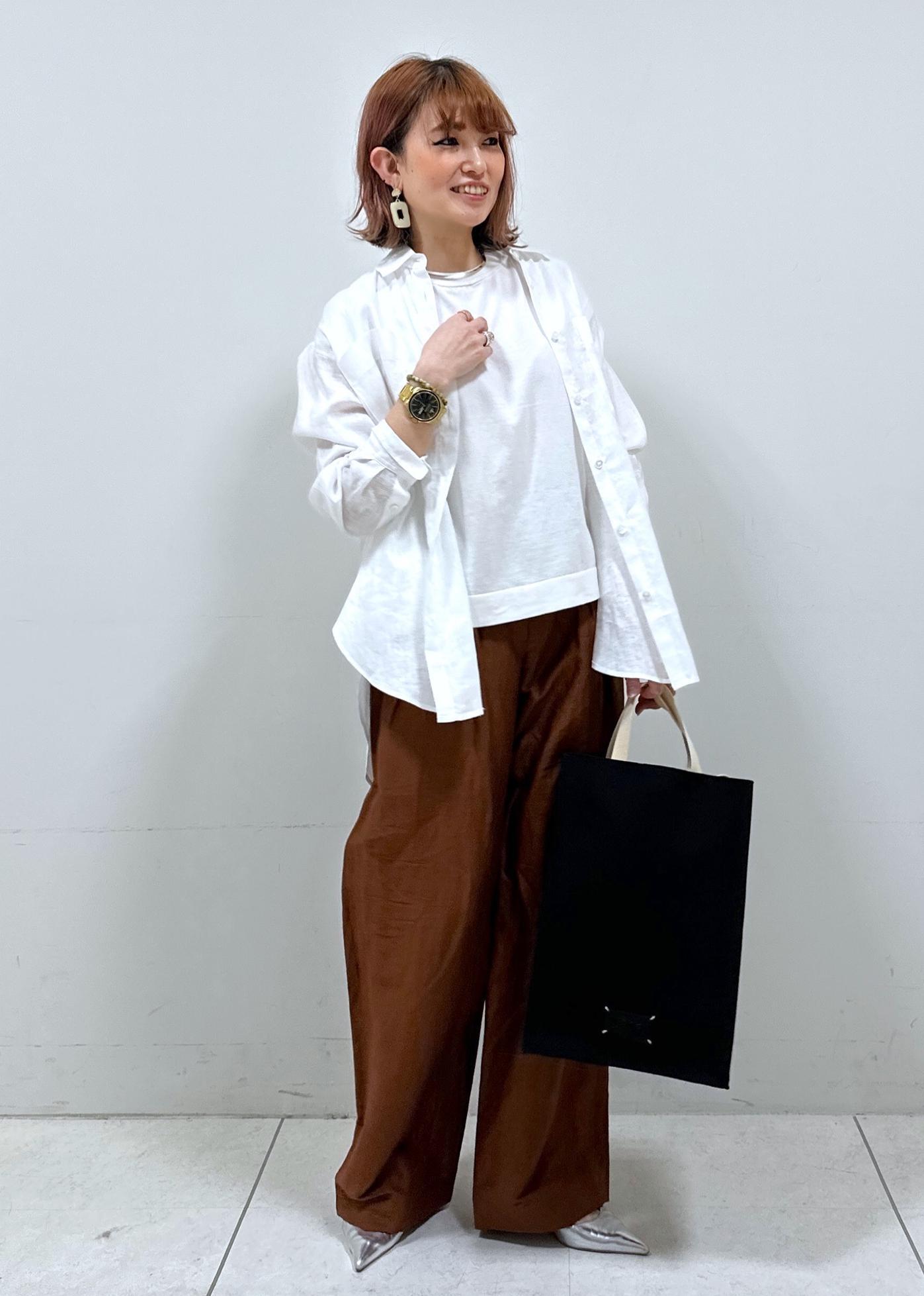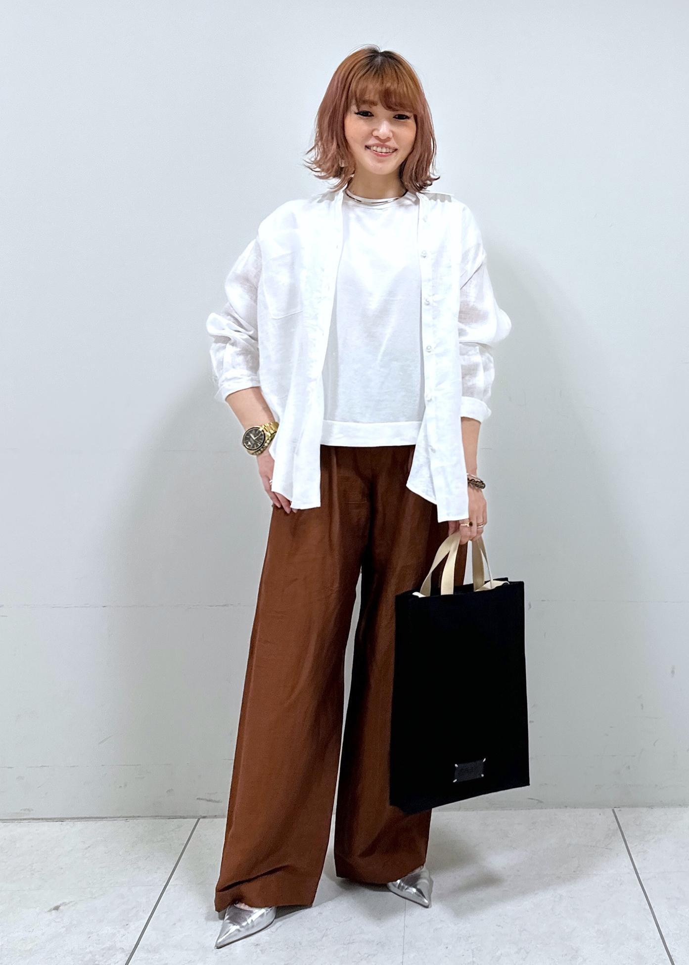 トップスを白でまとめ、ボトムのブラウン色を軽やかな印象にしました☆