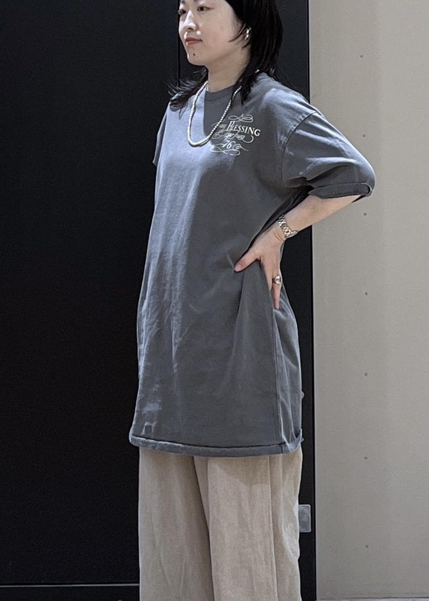 アウトレットSALON adam et ropéビンテージライクパルファムプリントビッグTシャツブルー系 / F¥3,960レビューチュニックくらいのかなり長めな丈。お尻がすっぽり隠れるので、お尻が目立つレギンスパンツなどとも相性◎です。