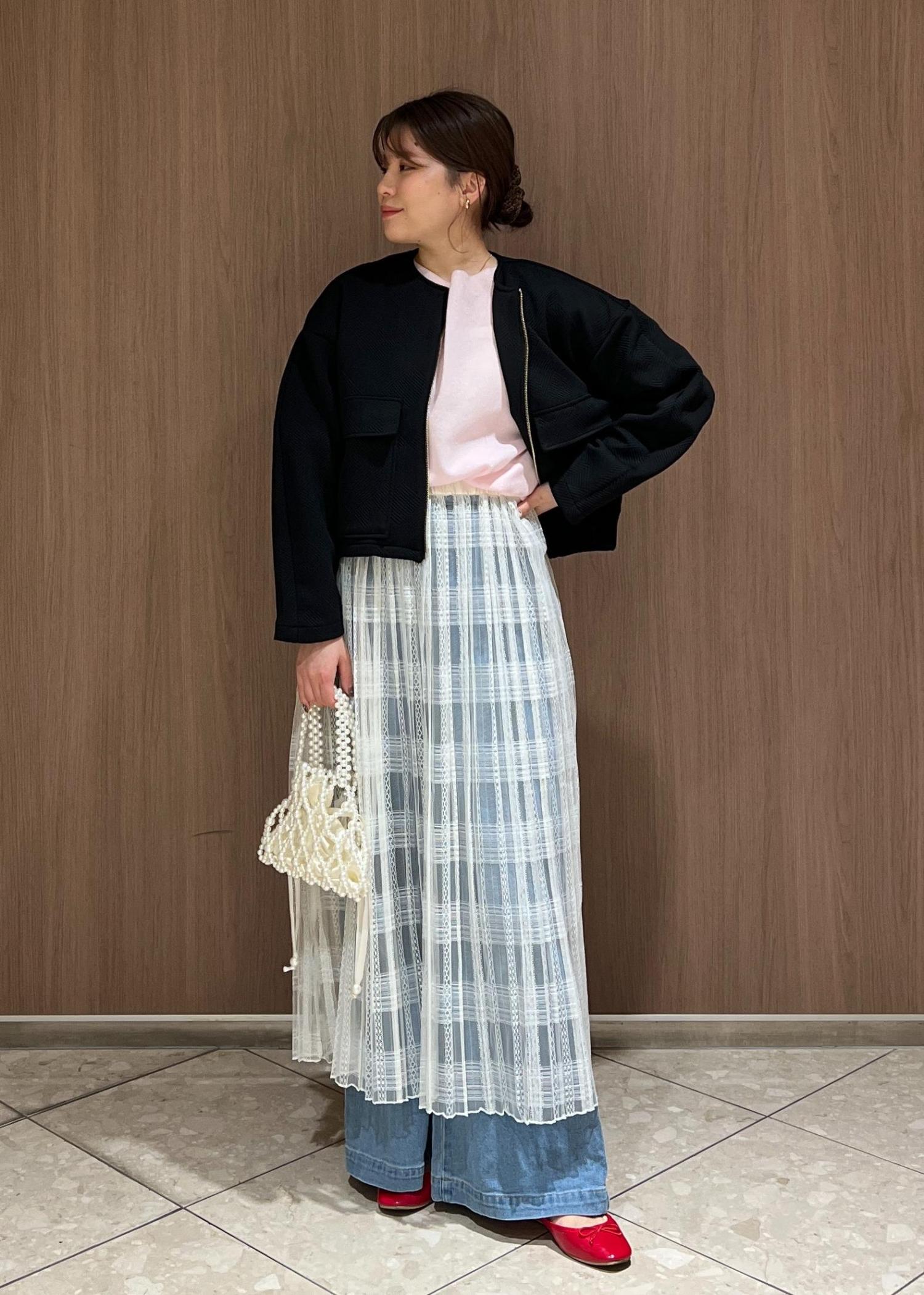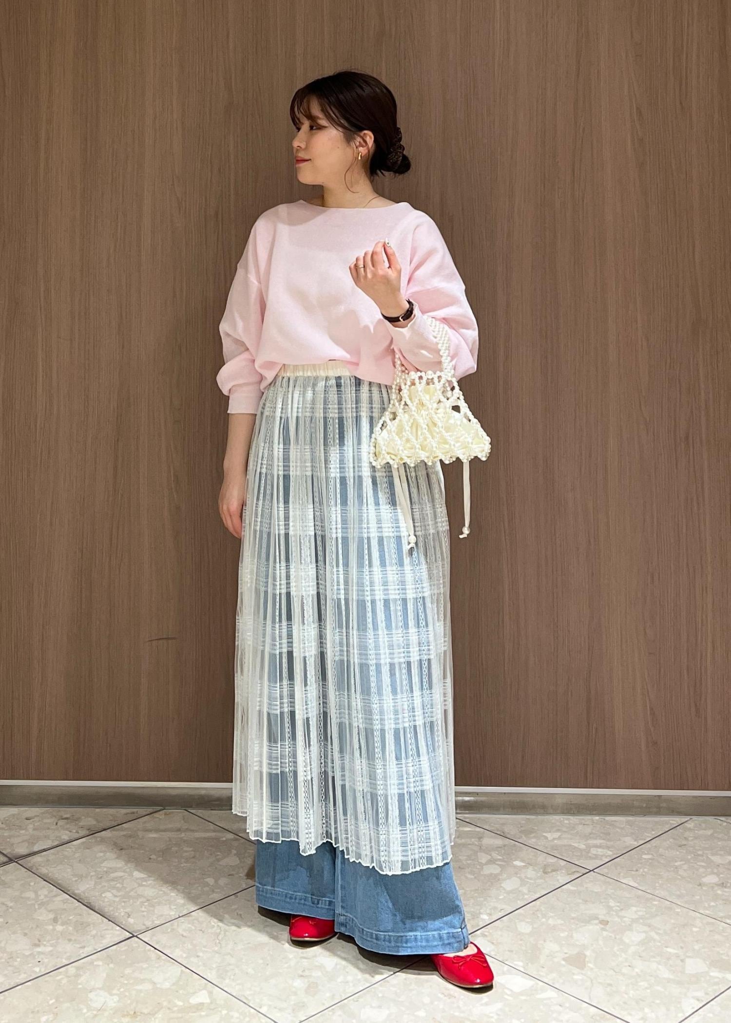 シアー素材なので透け感あり、ニットでも軽くヘルシーな印象でお召しいただけます◎ -