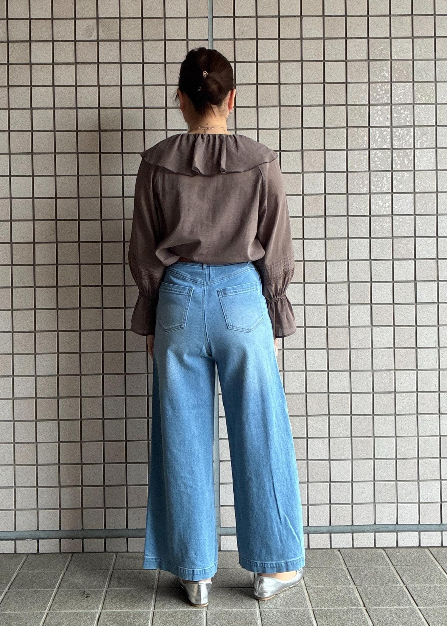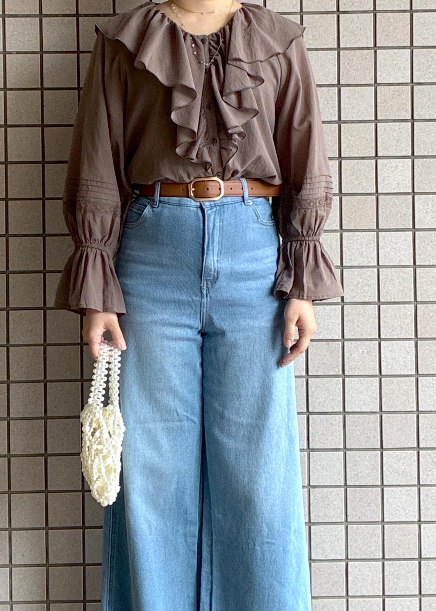今回は、デニムですがスカートやパンツにも合わせられます。