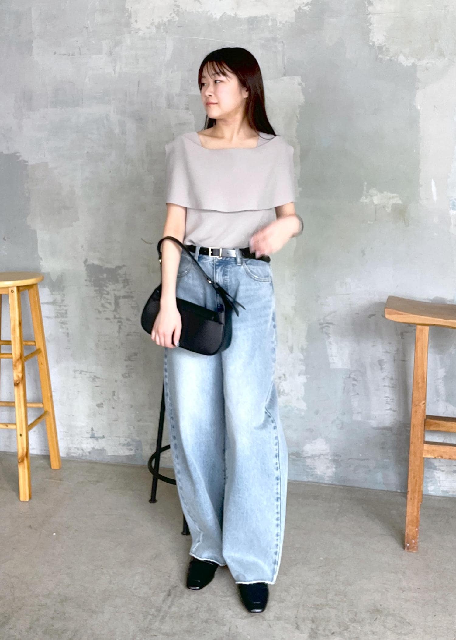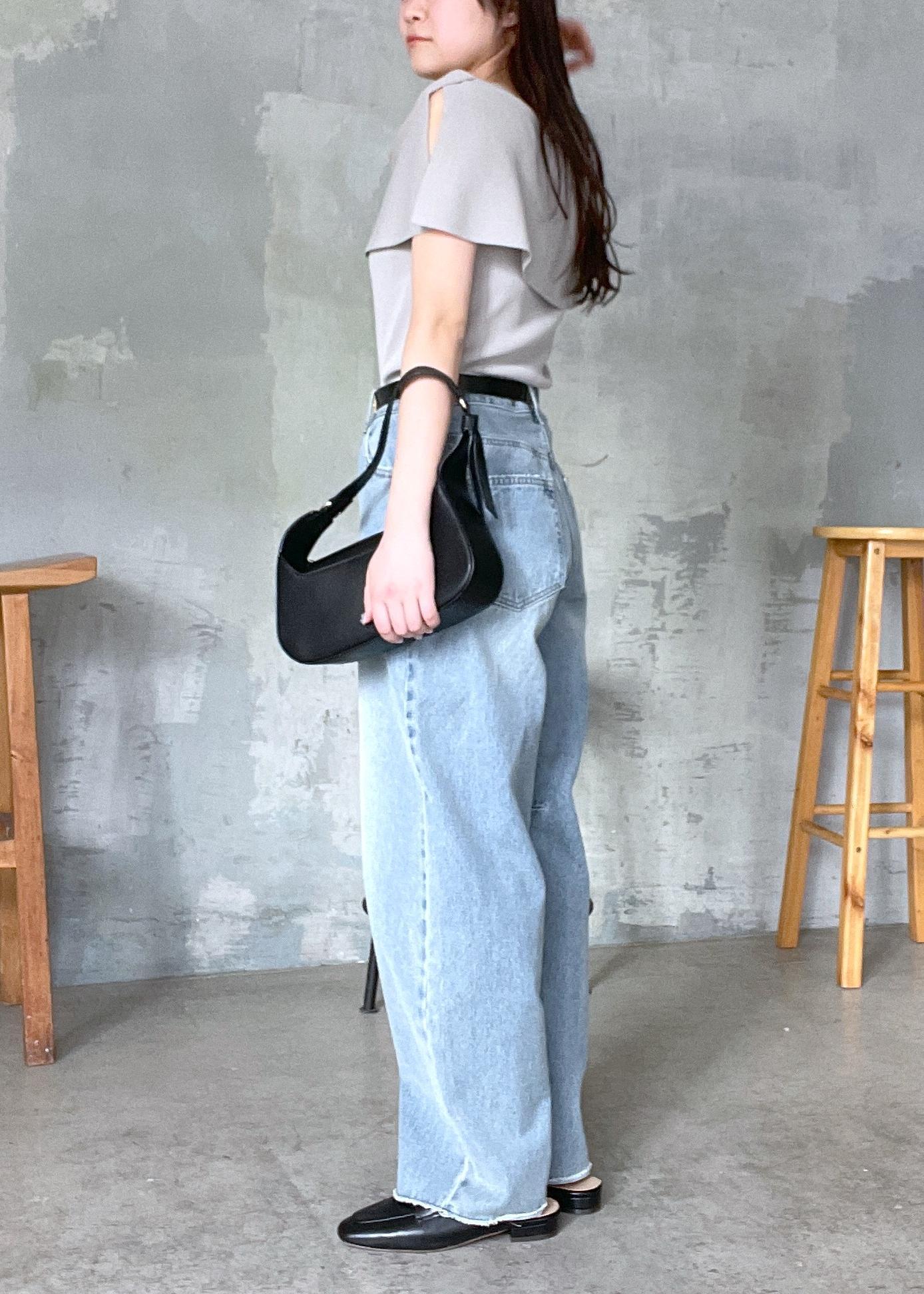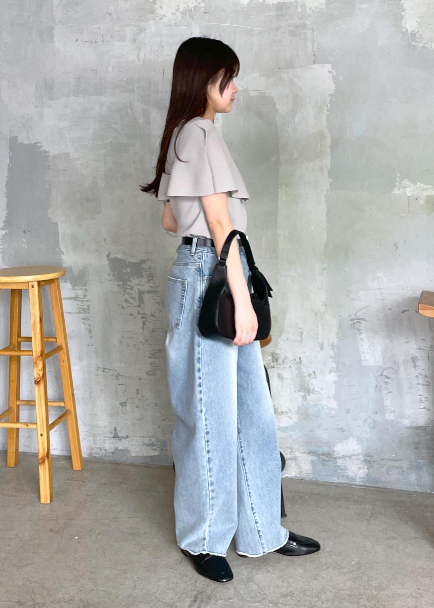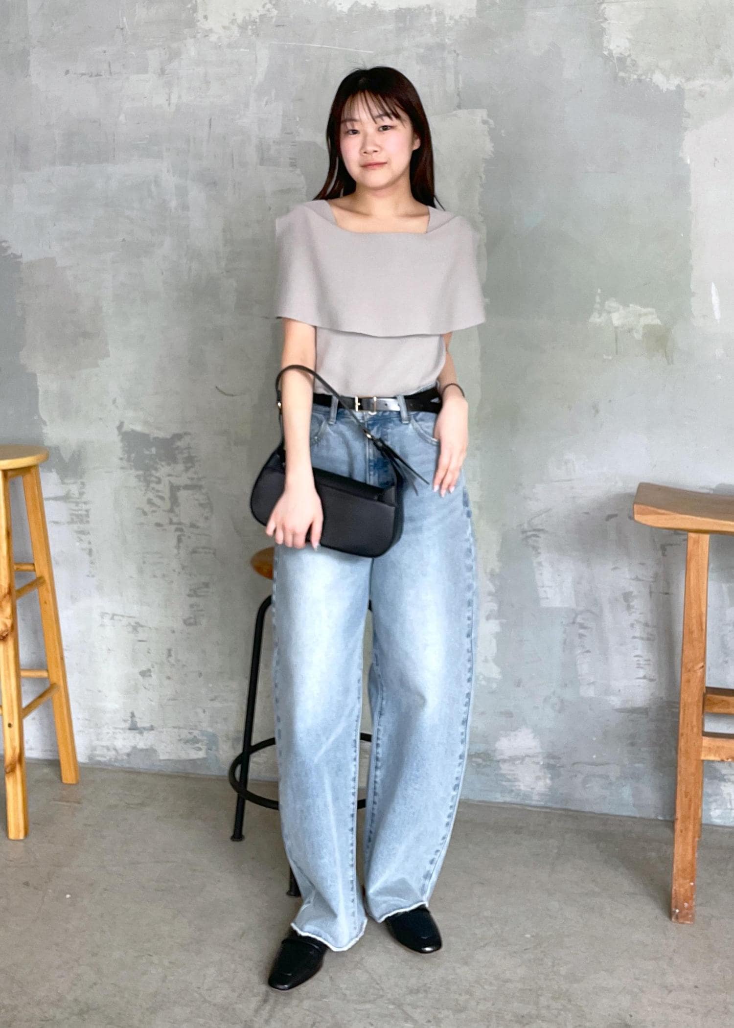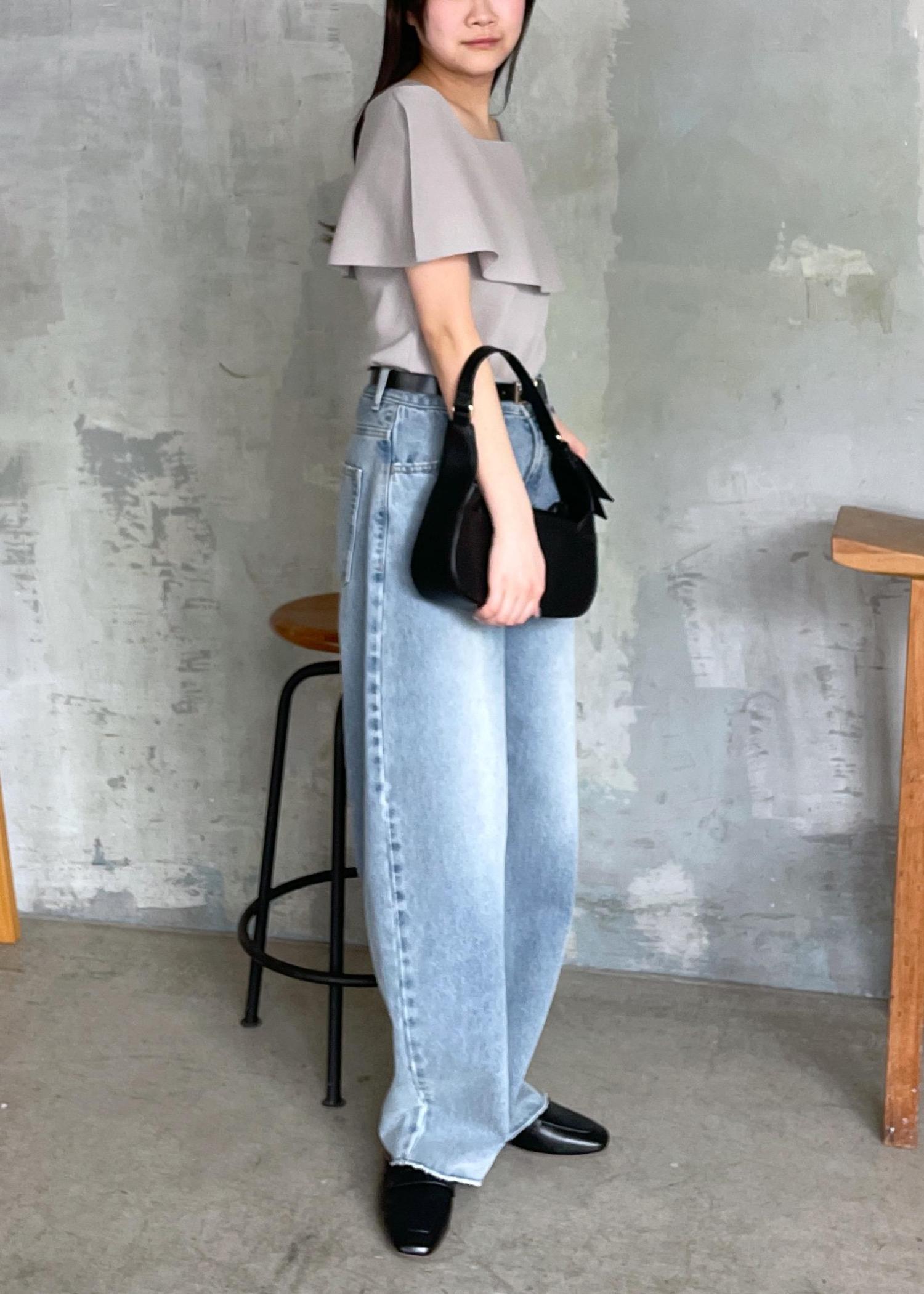 脚のラインを拾わないので、細身のデニムに抵抗がある方でも挑戦しやすい形です。 -
