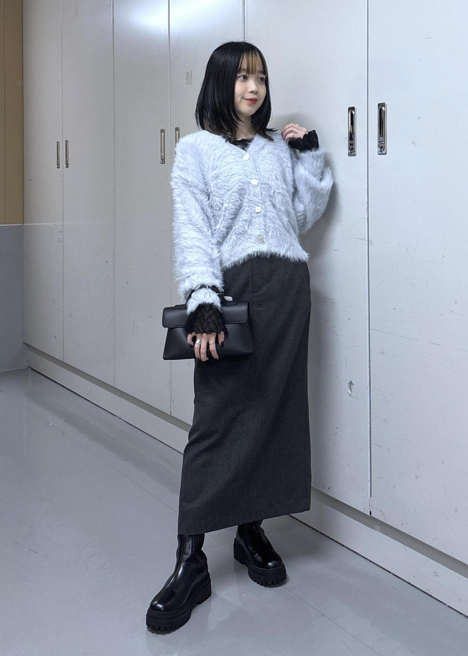 155cmでSサイズ、膝が見える長さなので大人っぽい印象!