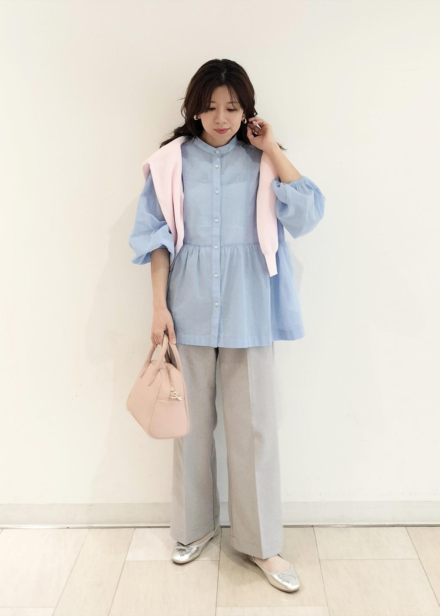 淡色コーデは黒を入れず、グレーやシルバー等で小物をまとめると色合いが引き立ちます!