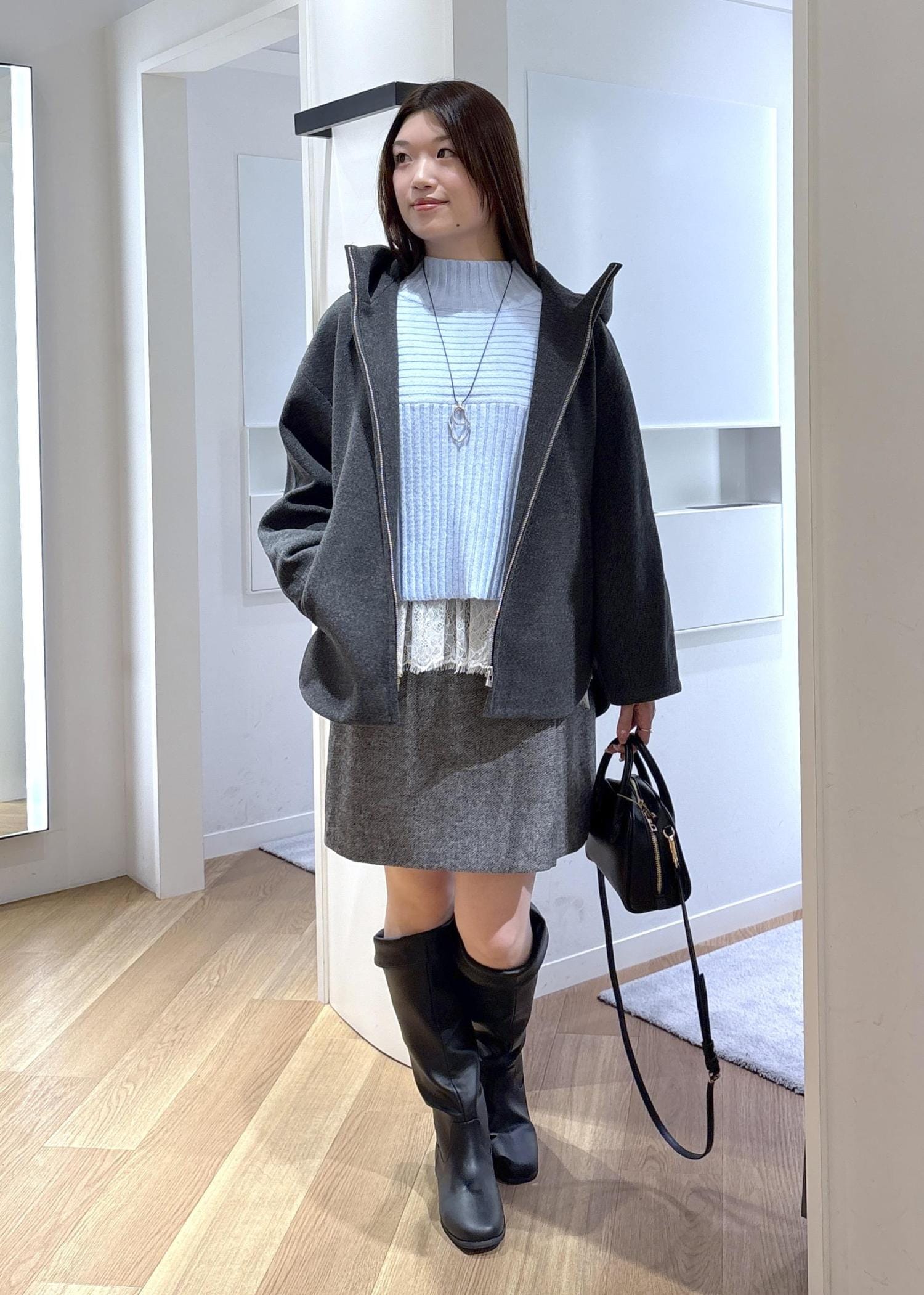 クロップド丈なのでインしなくてもバランスがとりやすいです。 -