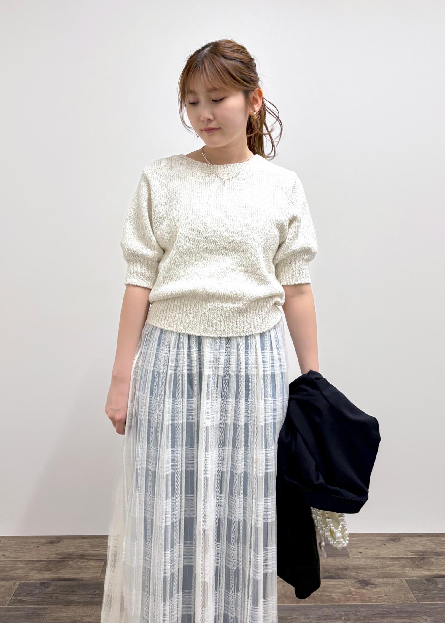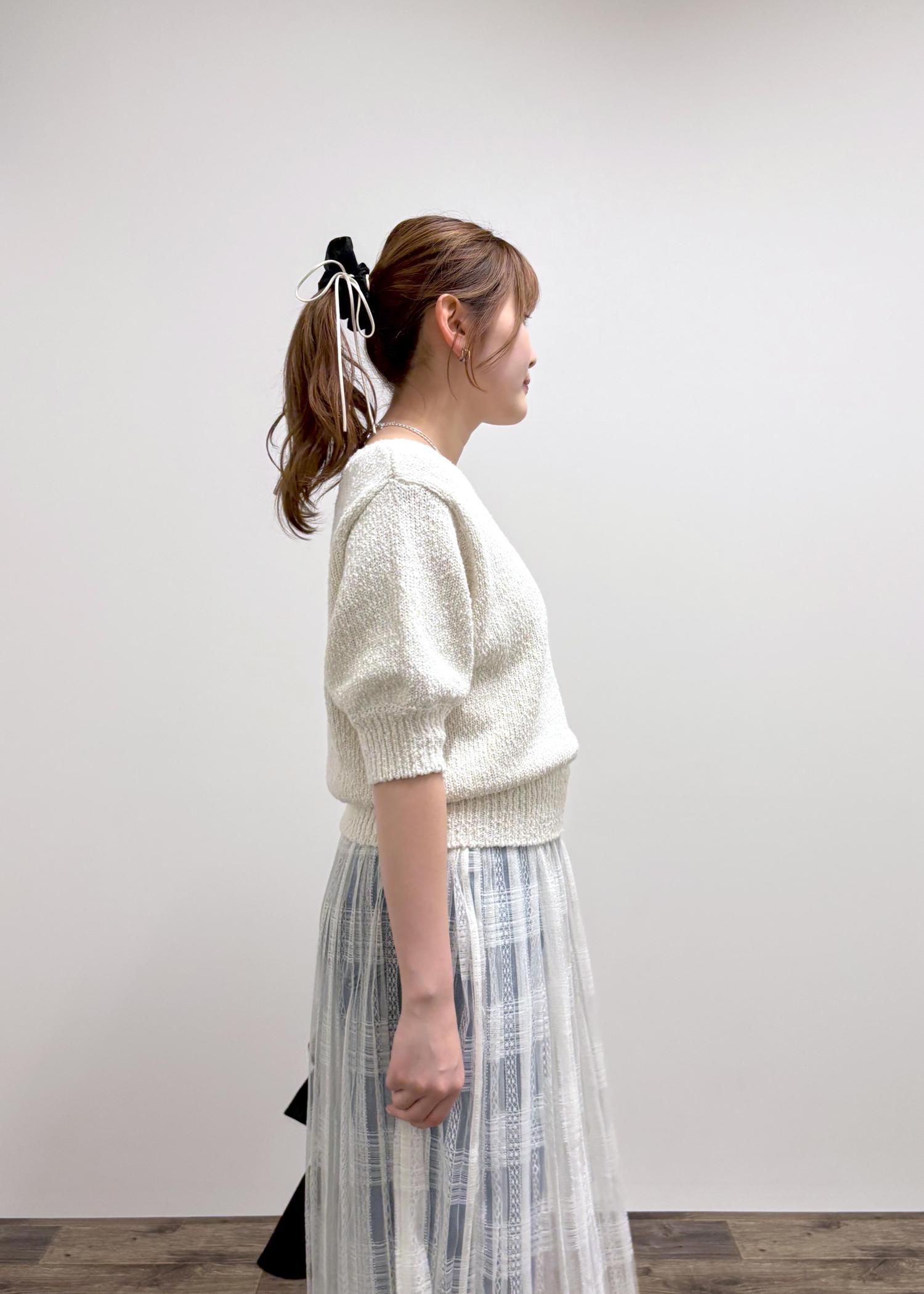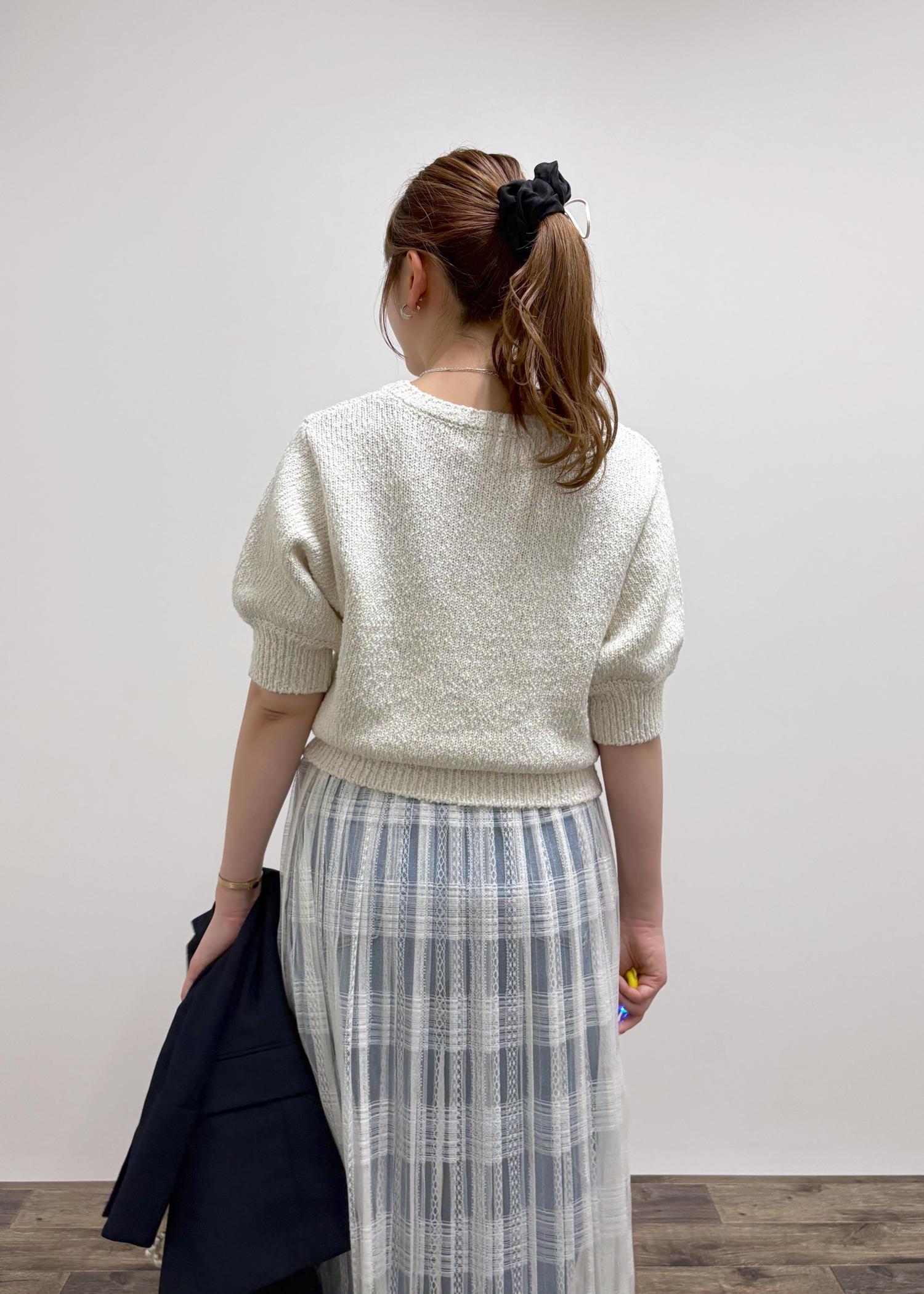 アウトレットROPÉ PICNICラメ混綿ニットハーフスリーブプルオーバーオフホワイト / 38¥3,842レビューラメ混の5分袖ニットトップスです!