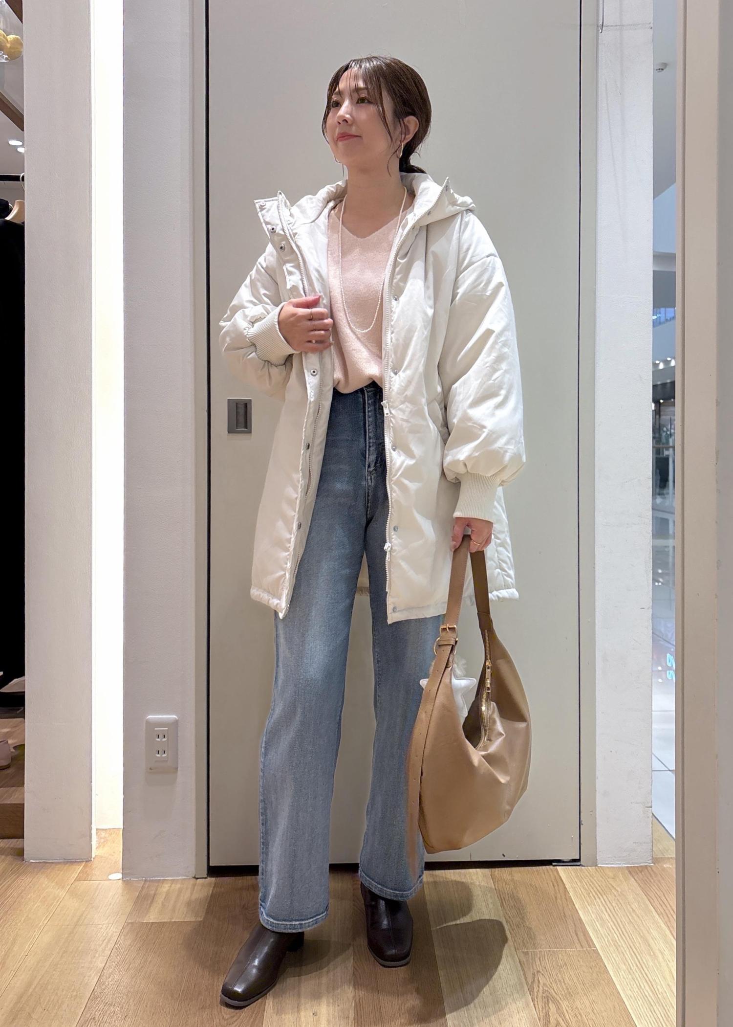 丈が腰に当たるぐらいのすっきりとした長さで、ボトムスを選ばないところも嬉しいです。 -