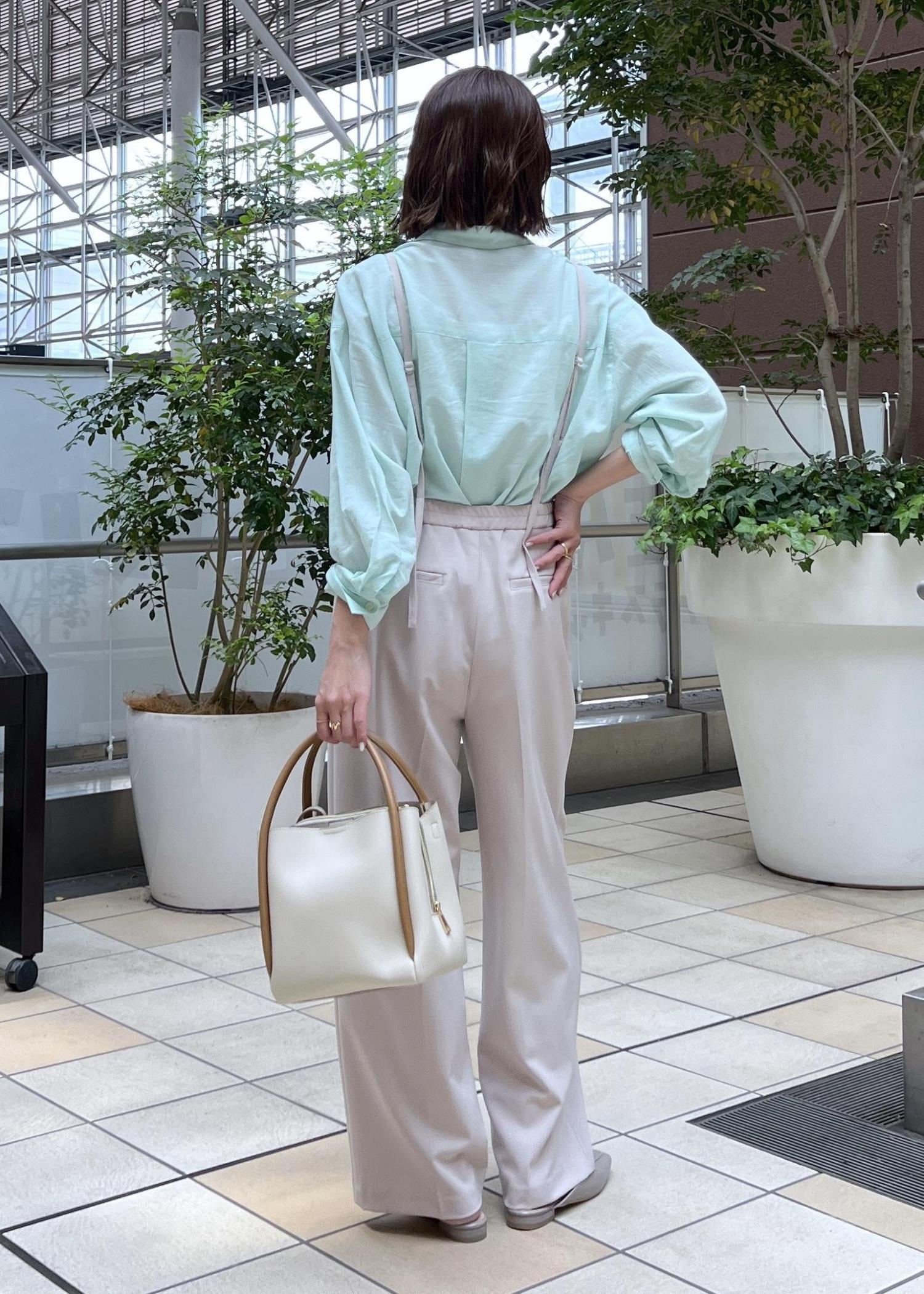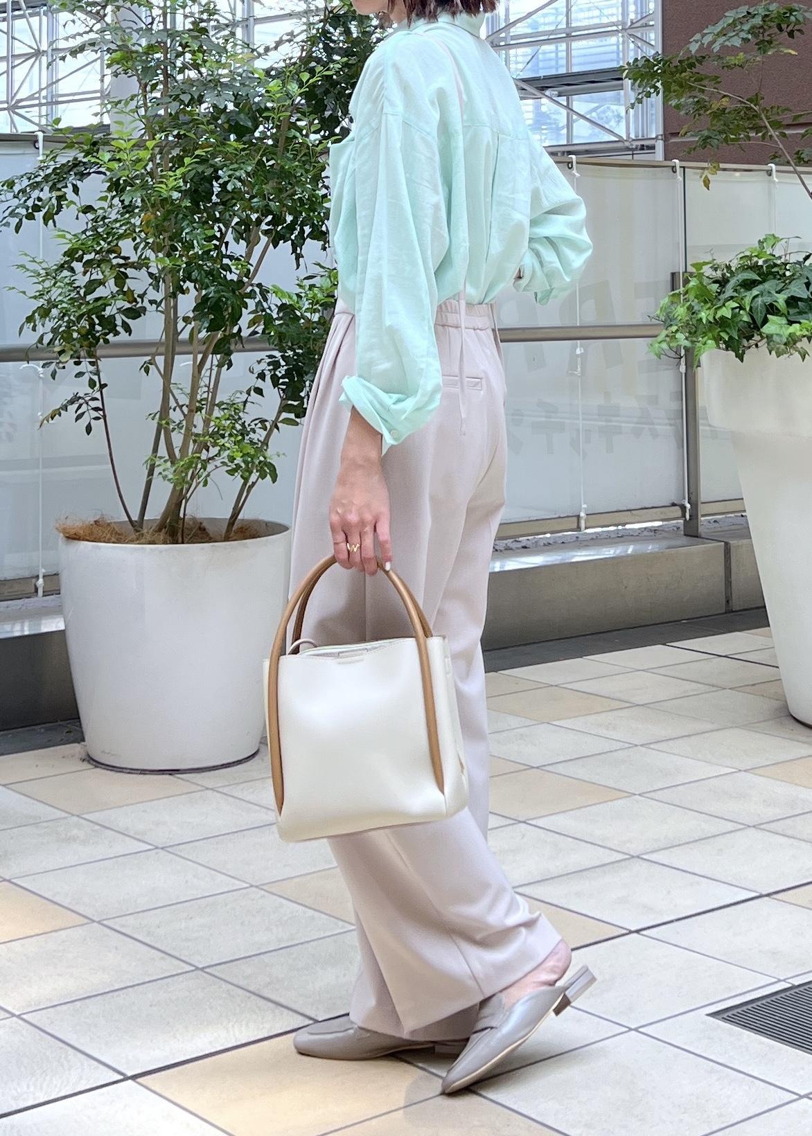 小物も明るめのトーンのアイテムで、軽やかなお出かけスタイルにしました。