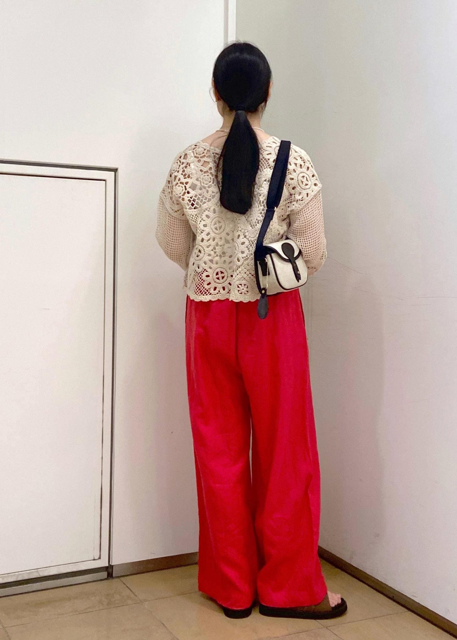 SALON adam et ropéヨーロピアンフラックスリネンリラックスパンツレッド / M¥17,600レビュー【サイズ感】