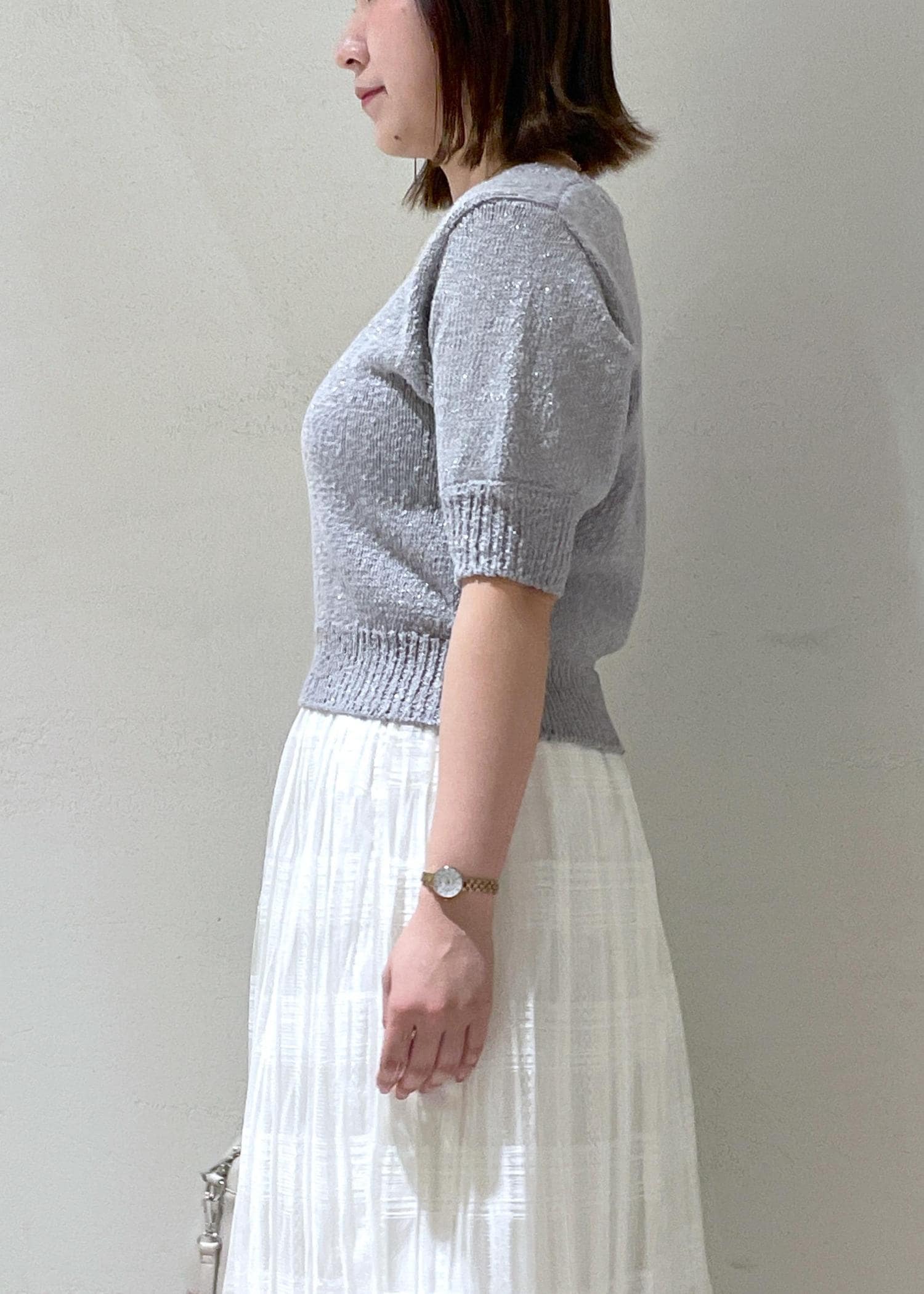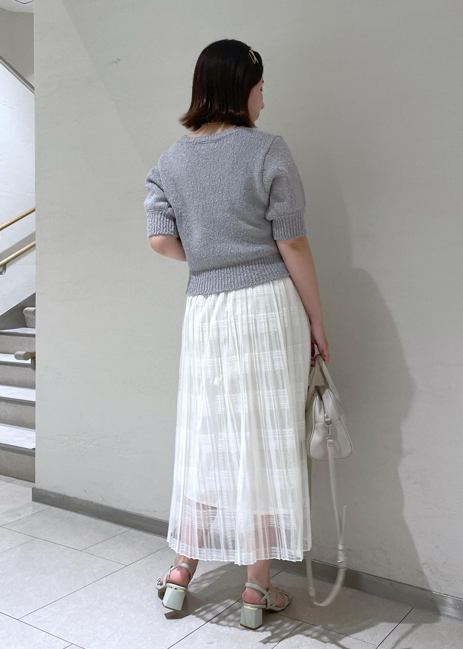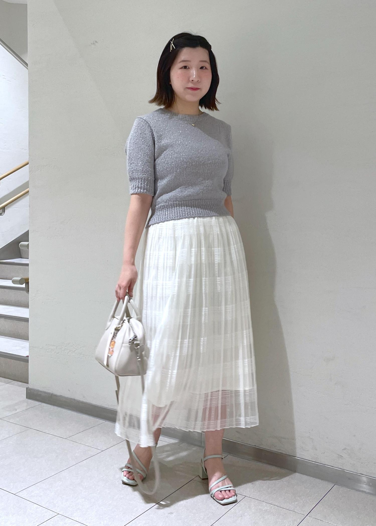 トップスはグレーで柔らかさを残しつつ引き締めてみました。
