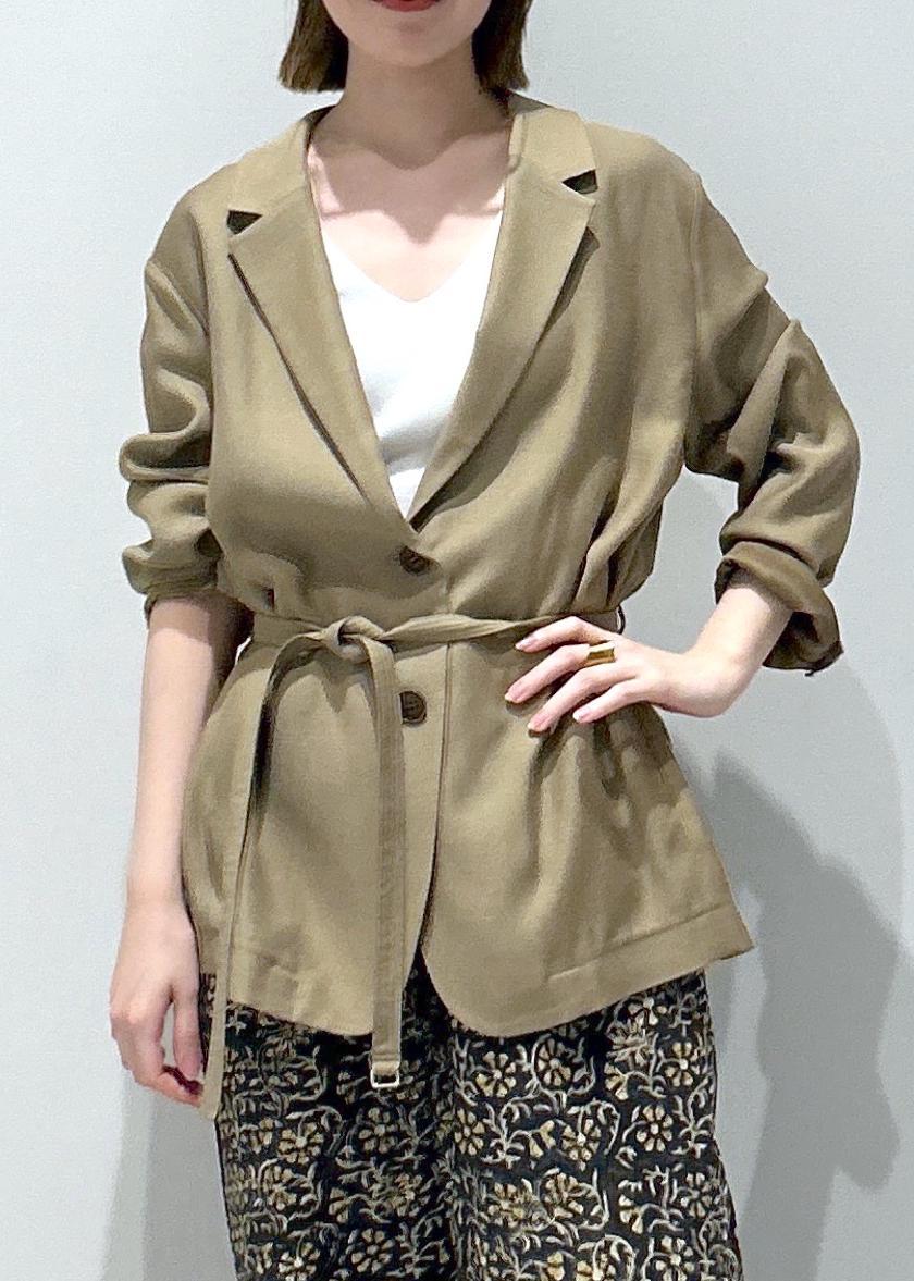 くたっとした落ち感とウエストマーク出来るデザインから、綺麗めにもカジュアルにも合わせられる万能ジャケット。