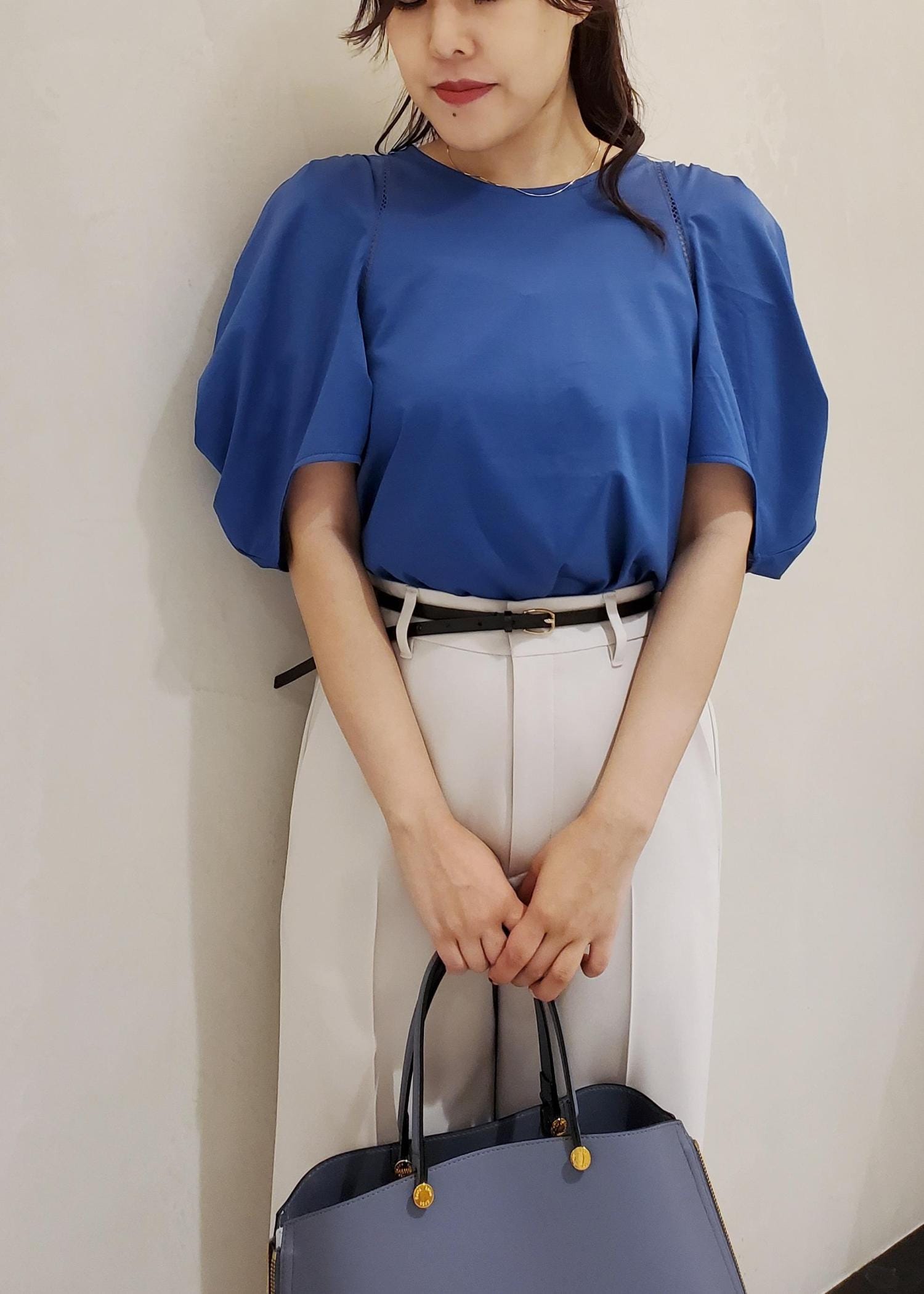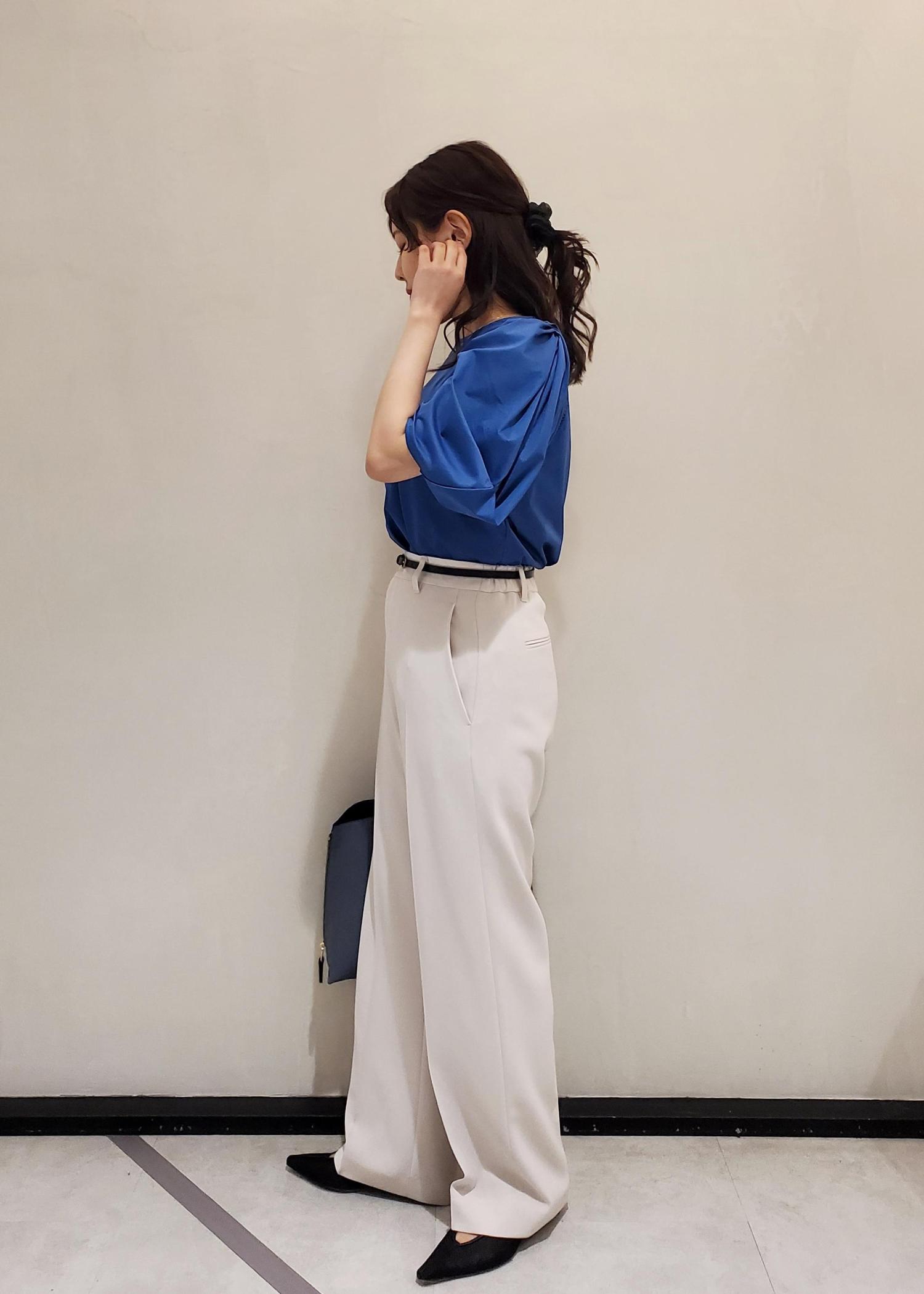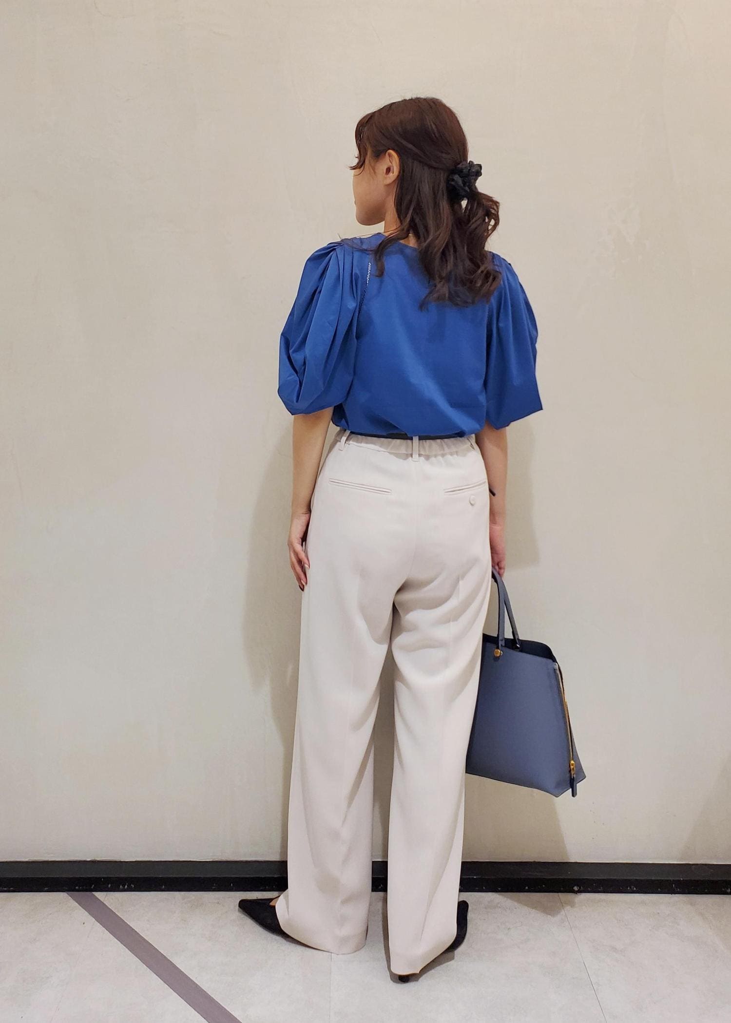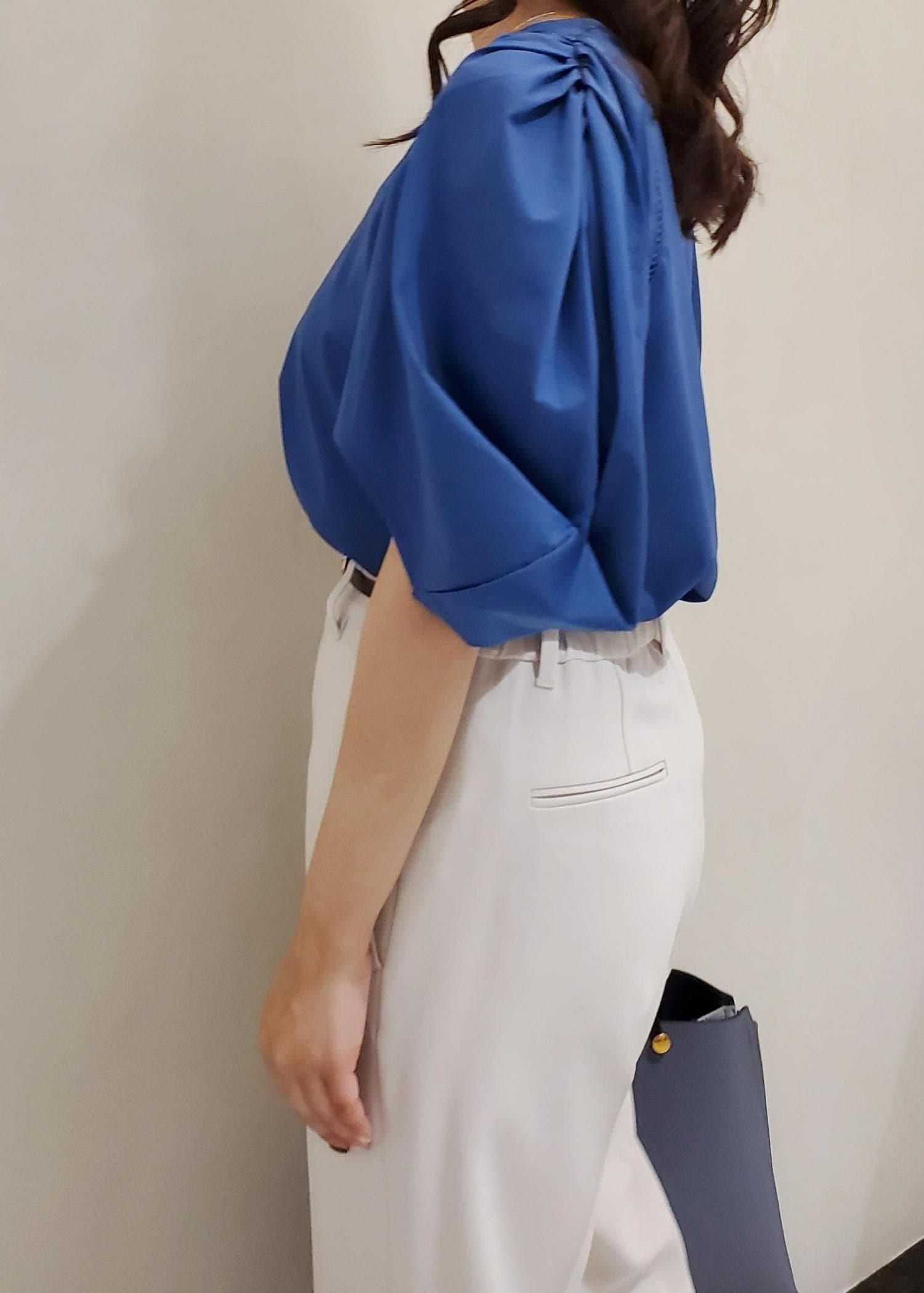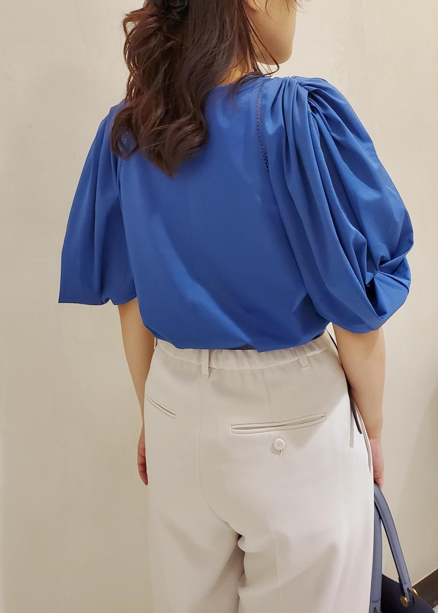 肩にギャザーが入っているのでふんわりとしたパフ袖ですが、生地が柔らかいのでボリュームが出すぎず着れました◎