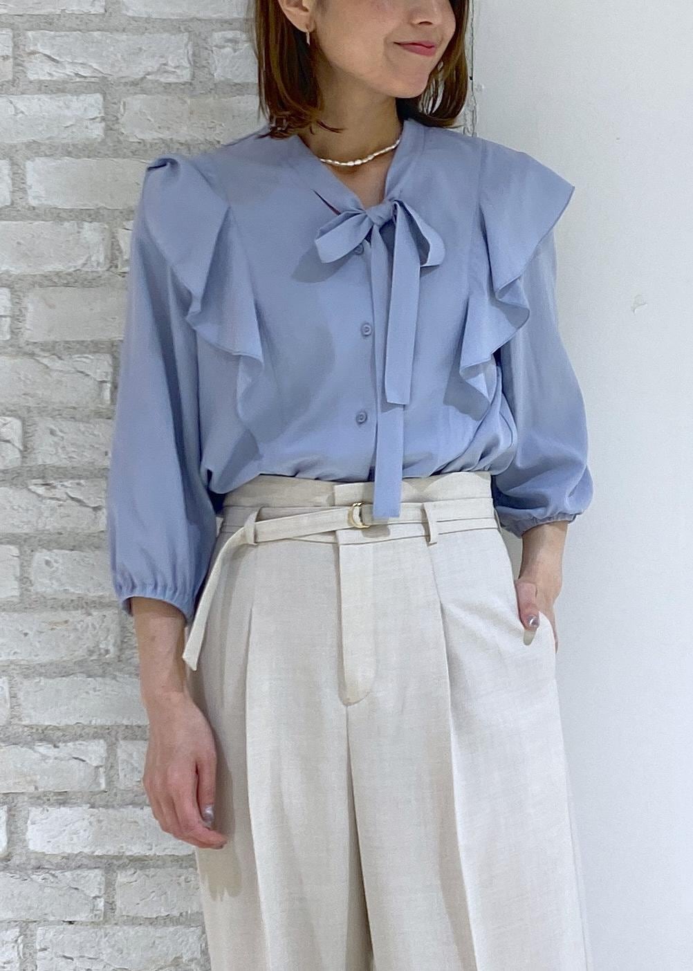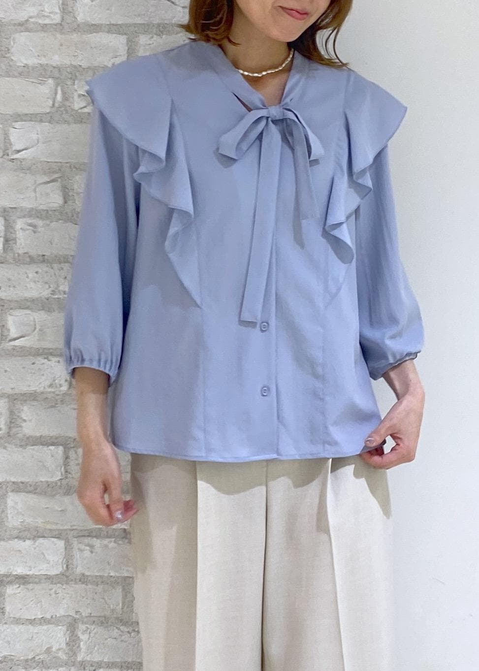 ROPÉ PICNICラッフルリボンデザインシャツブルー / 38¥4,994レビューとても柔らかな着心地で身幅は程よくゆとりがありました。