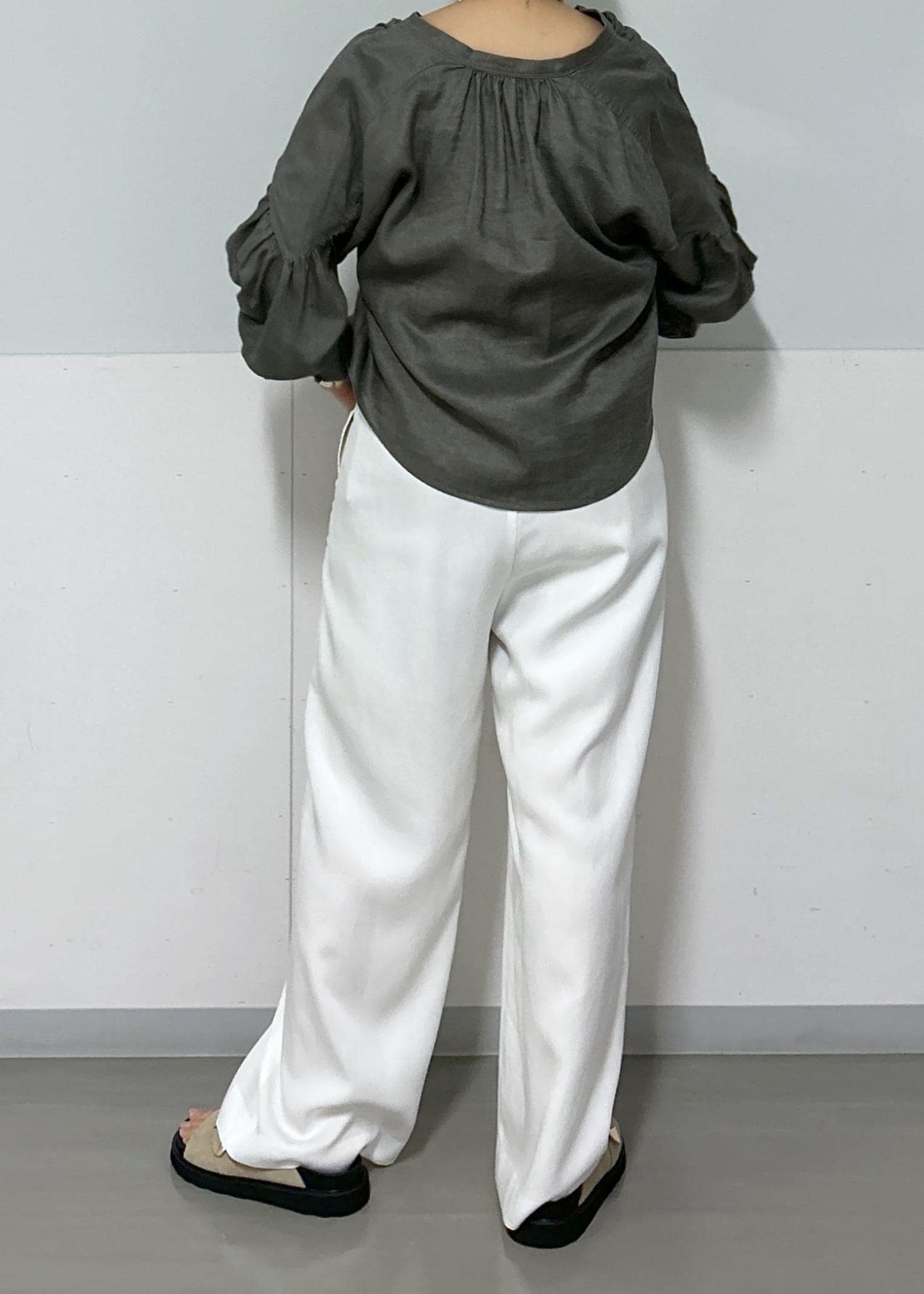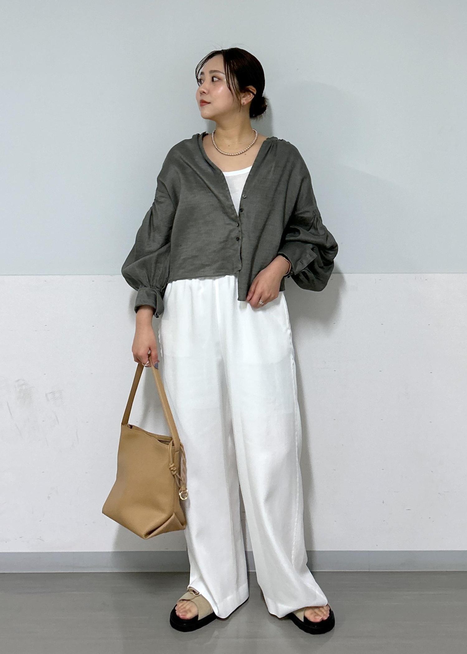 SALON adam et ropéリネンスキッパーギャザーブラウス[GENTLE LINEN]グレー / F¥18,810レビューサイズ感は着丈が短め、身幅が広めのおつくりです。