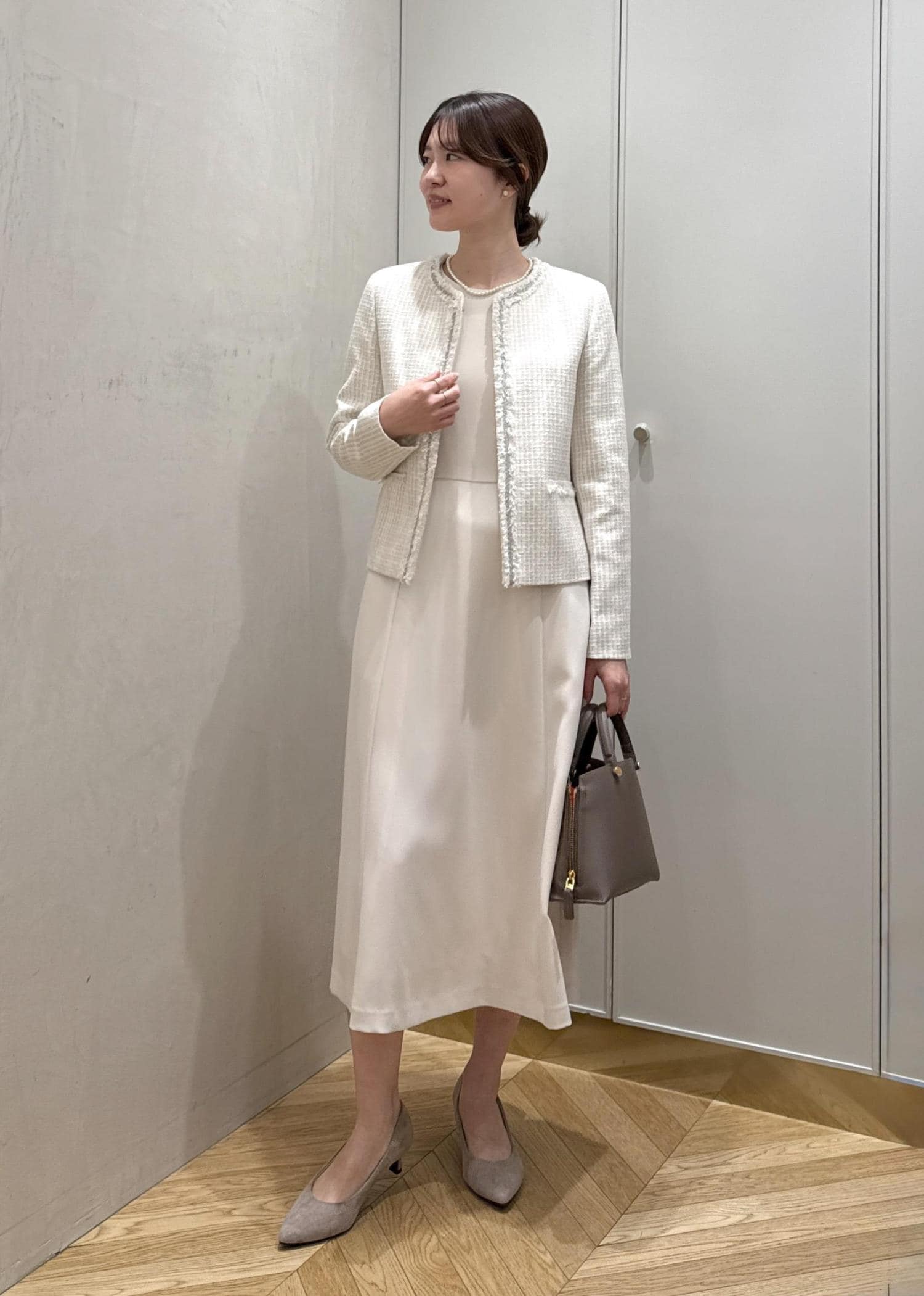 着丈は長めでフラットシューズを合わせるとギリギリでしたので、小柄な方は丈直しがお勧めです。