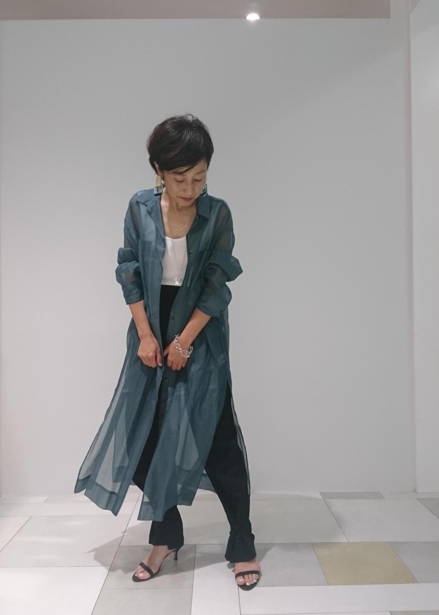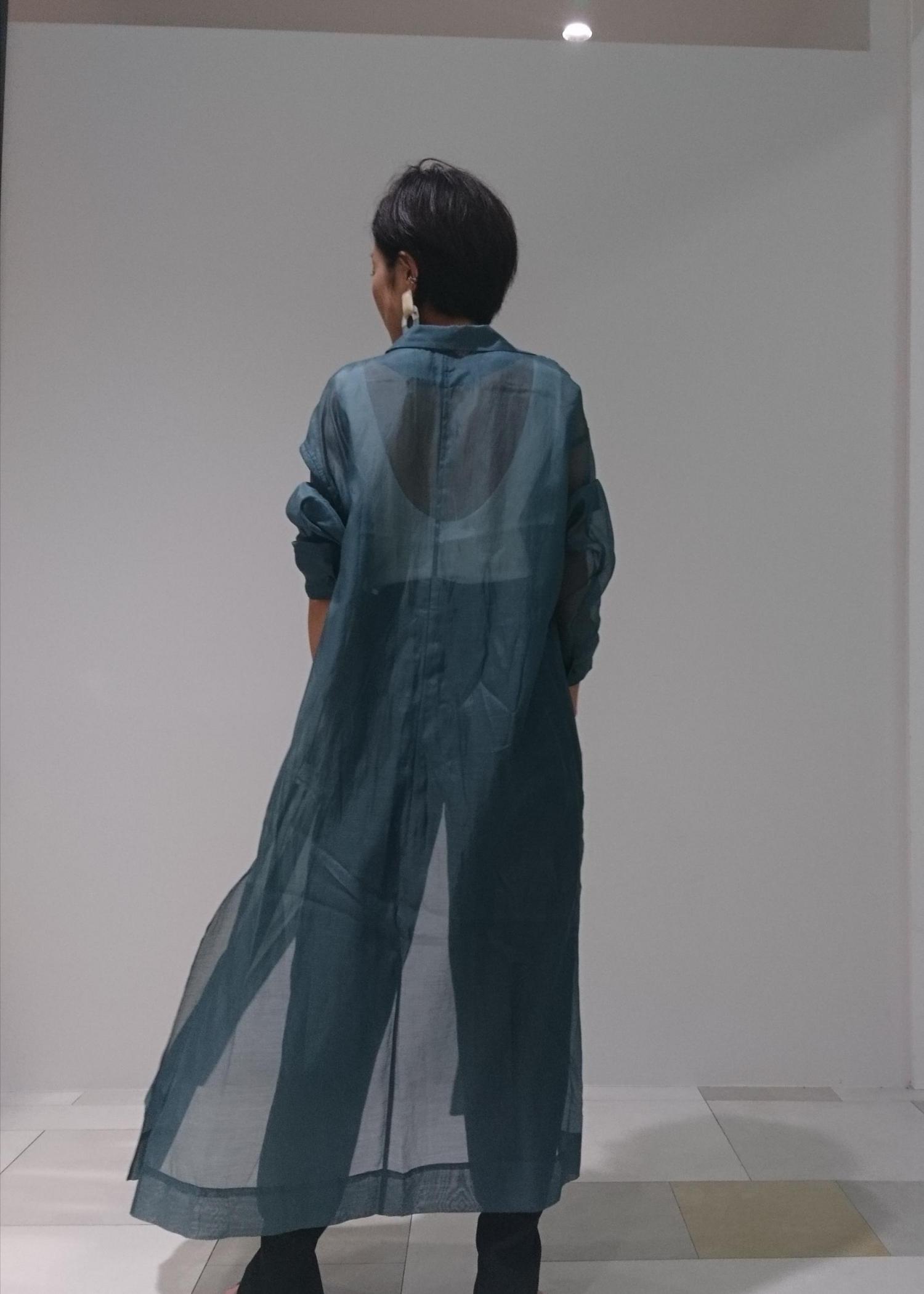これから、暑くなる季節でも着て頂けるオーガンジーのシャツワンピース。