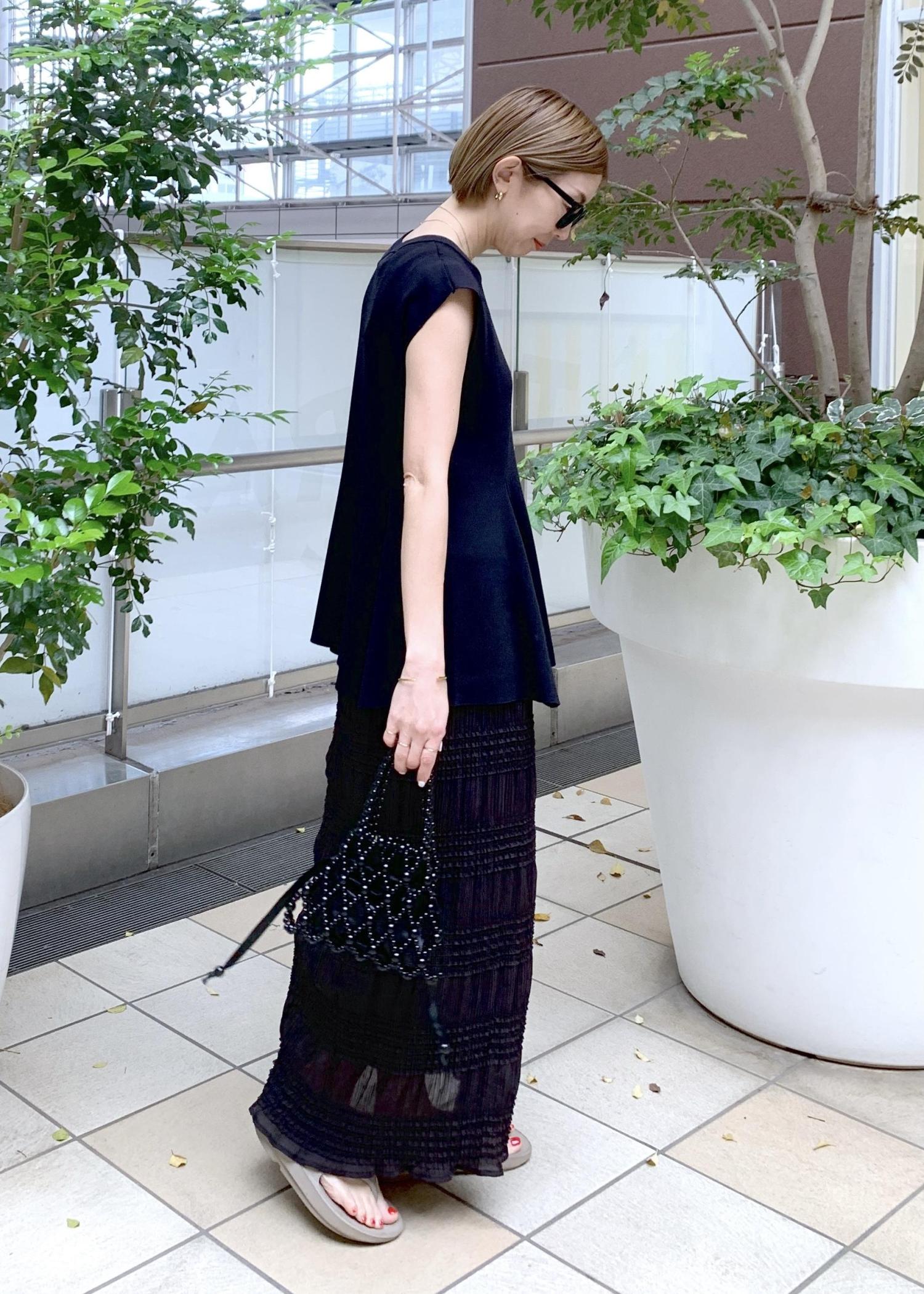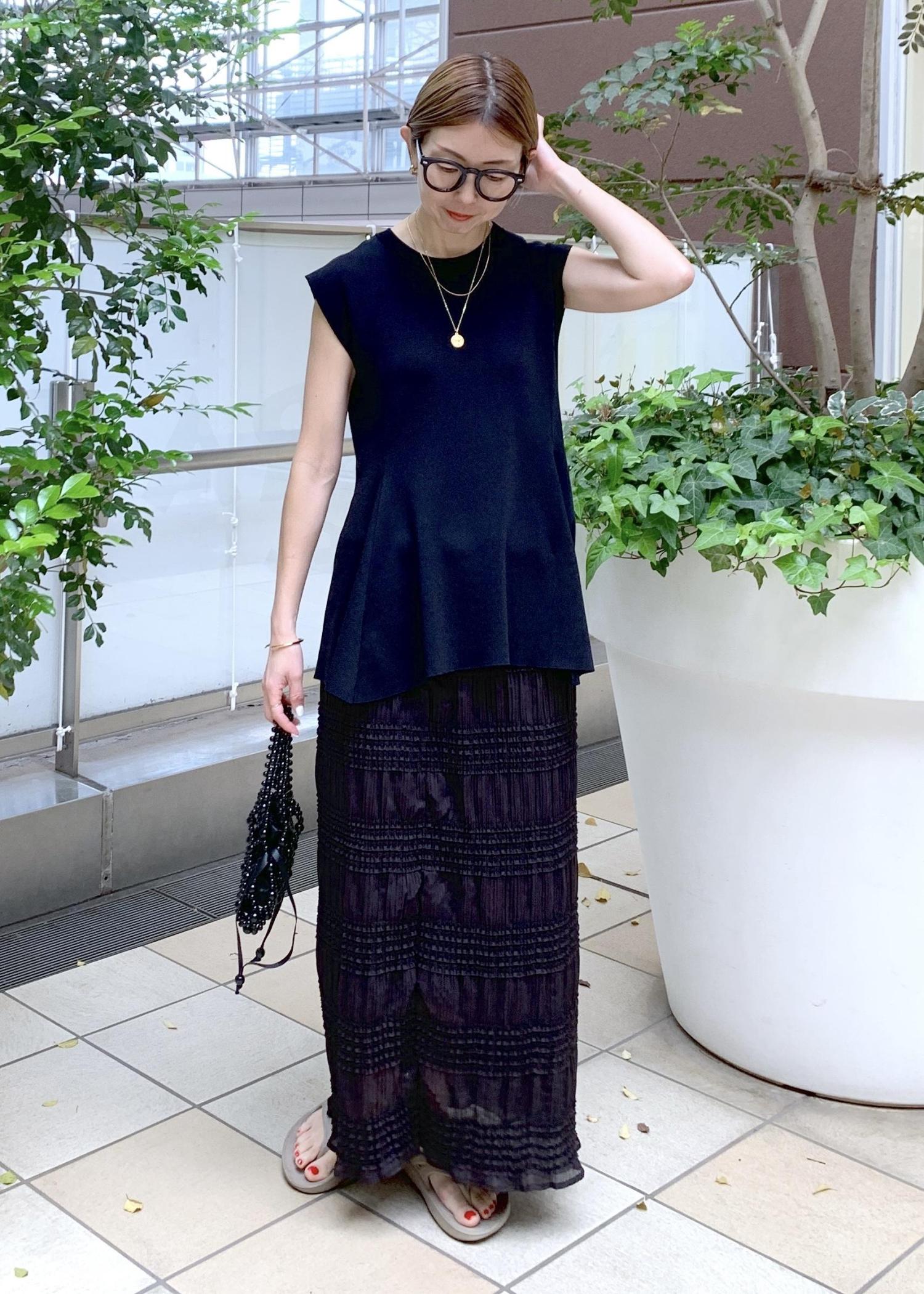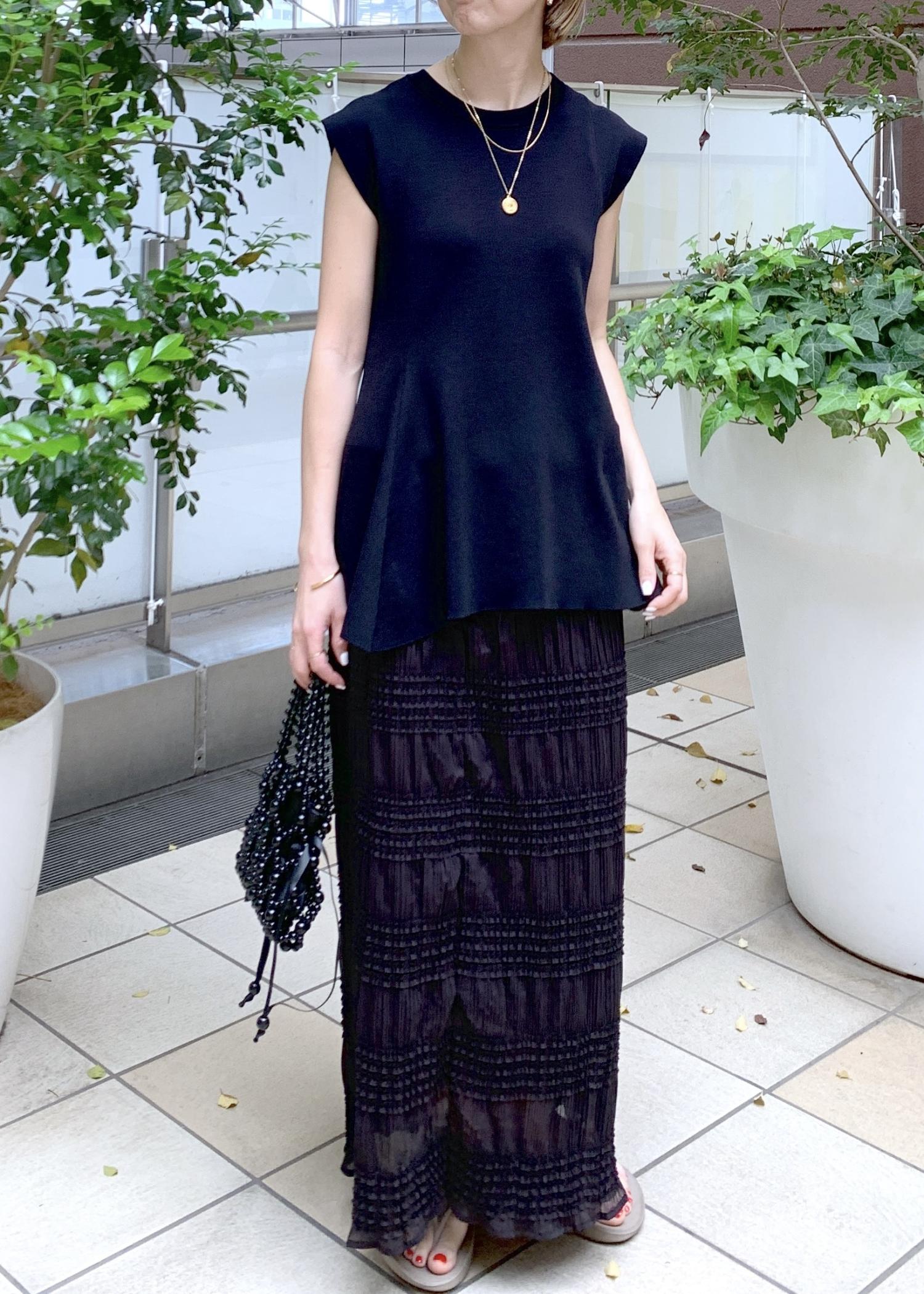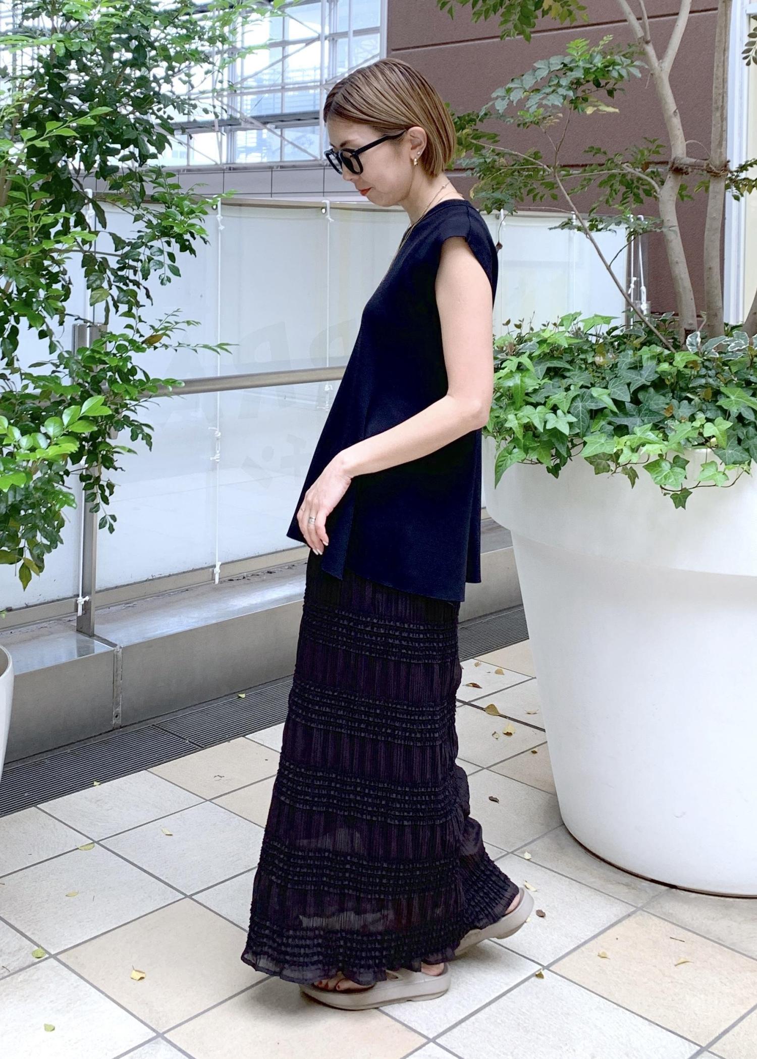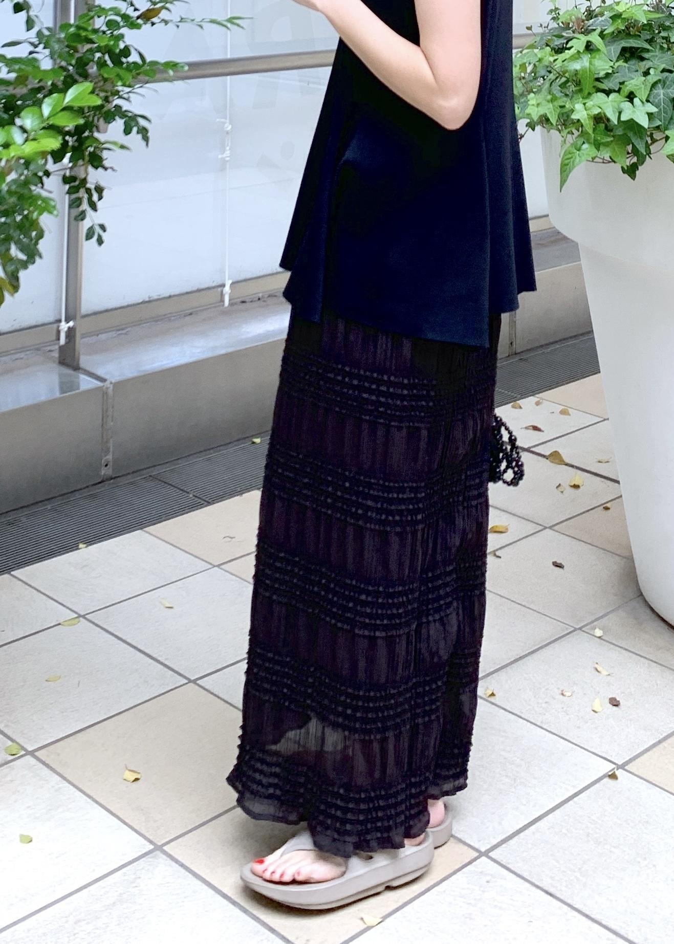 細かいプリーツとフリルで程よい甘さがある大人のスカート。