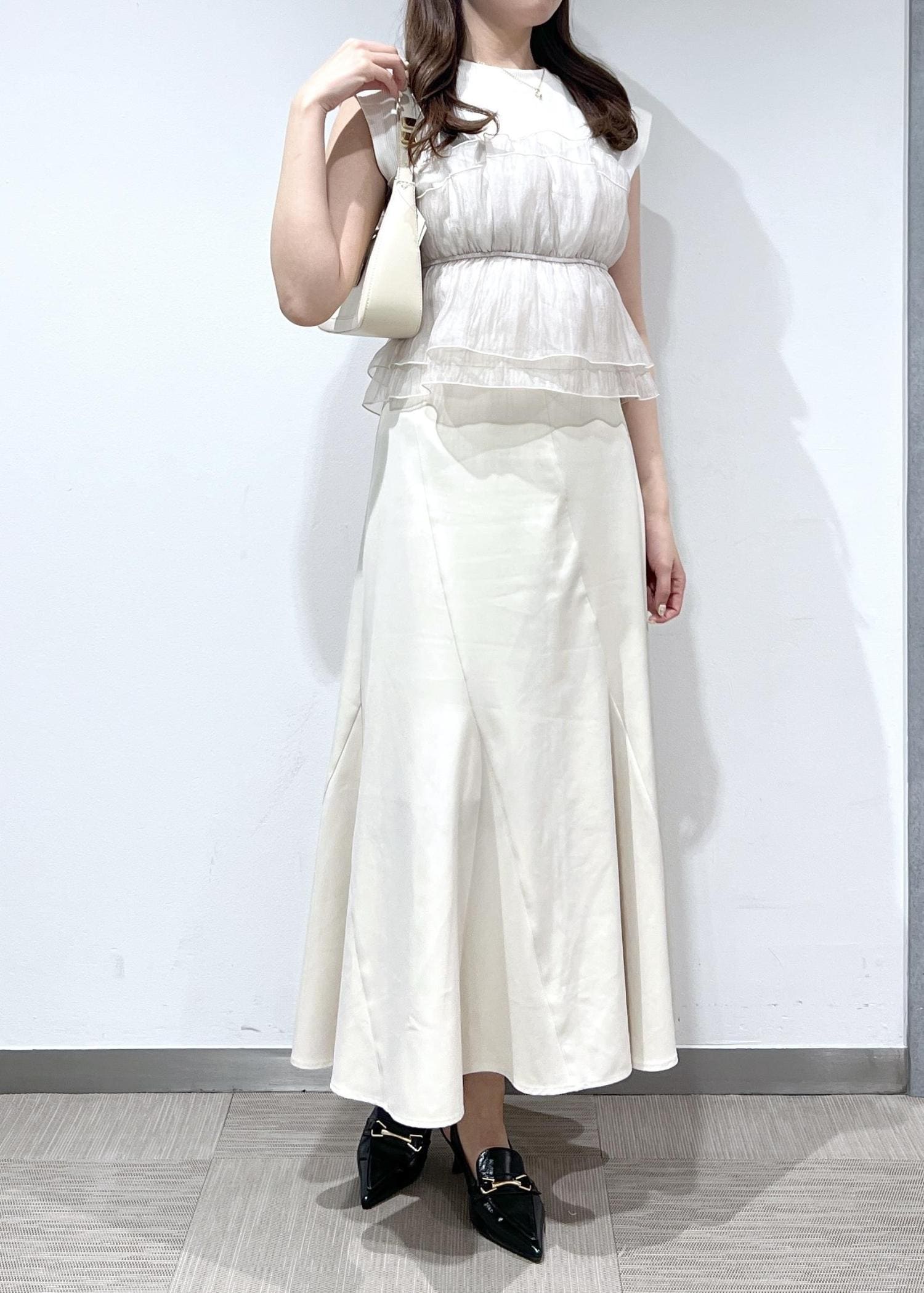 VIS旬なレイヤードスタイルが叶う!ビスチェドッキングフレンチスリーブプルオーバー【洗える】キナリ系 / F¥5,489レビューツヤ感のあるビスチェなので1枚で華やかな印象になります◎ ビスチェ部分は胸下で柔らかいゴムが入っているのでかたちも綺麗です。フレンチスリーブなので肩周りを程よく隠してくれます!
