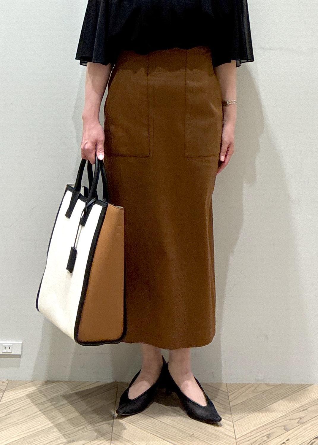 アウトレットROPÉ【洗える】サテンリネン ポケット付きタイトスカート【34サイズ/J'aDoRe・店舗限定】/25SSブラウン / 38¥9,900レビュー158cm38サイズ着用。