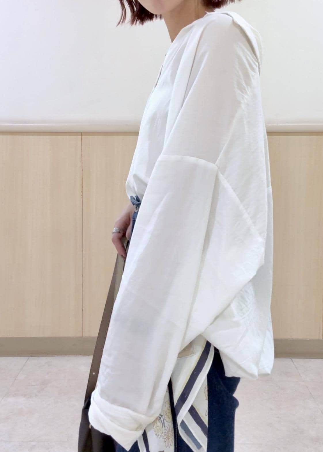 首元は深めのVネックで顔回りをすっきり見せてくれます! -