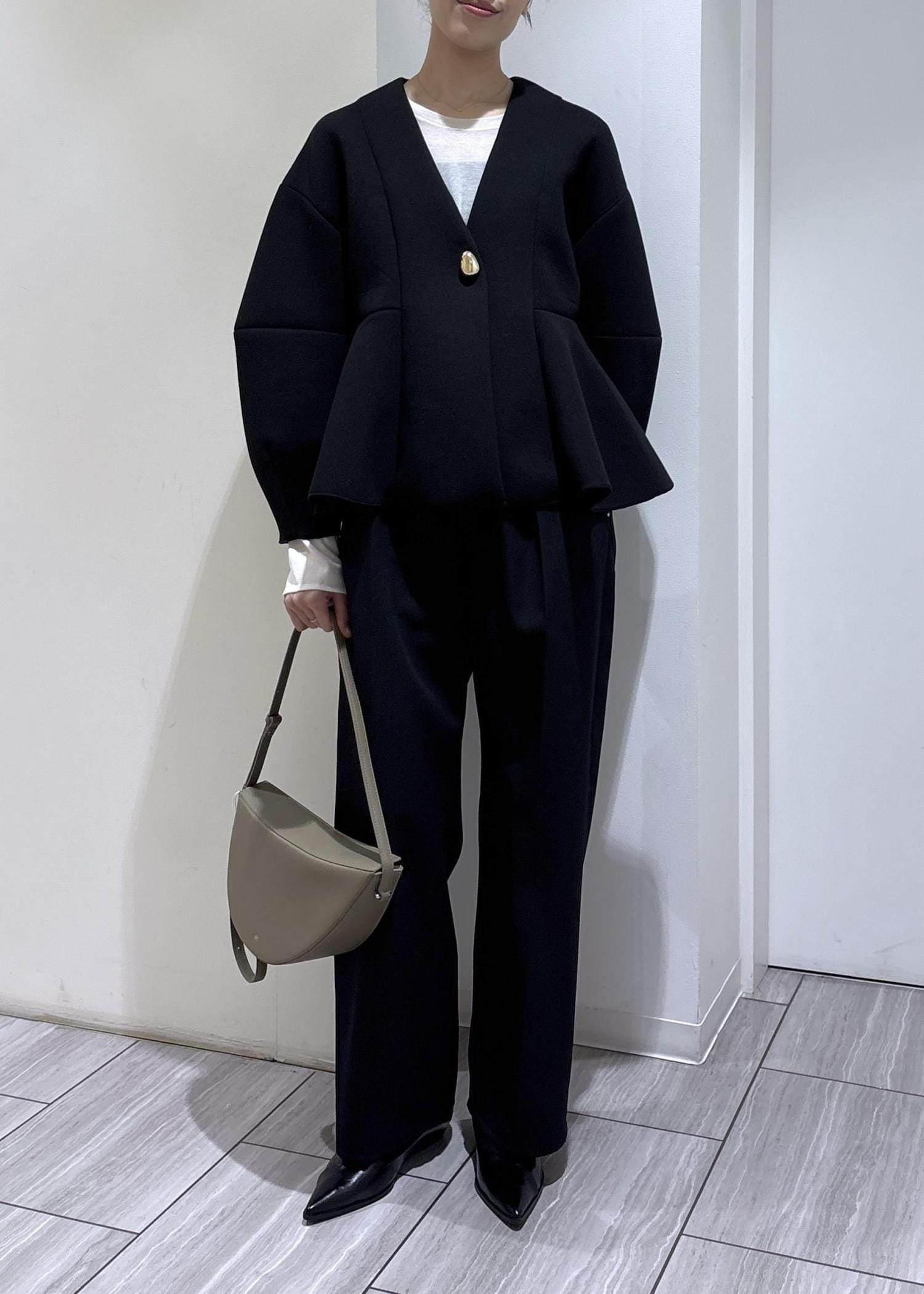含みのあるシルエットでカジュアルな着用感は残しつつ綺麗見えする春夏に特におすすめの1本。