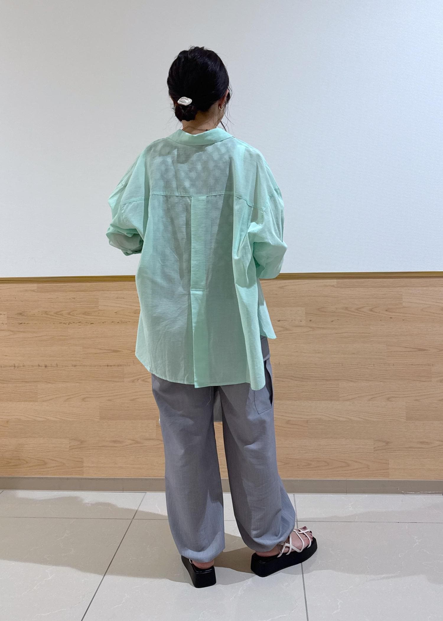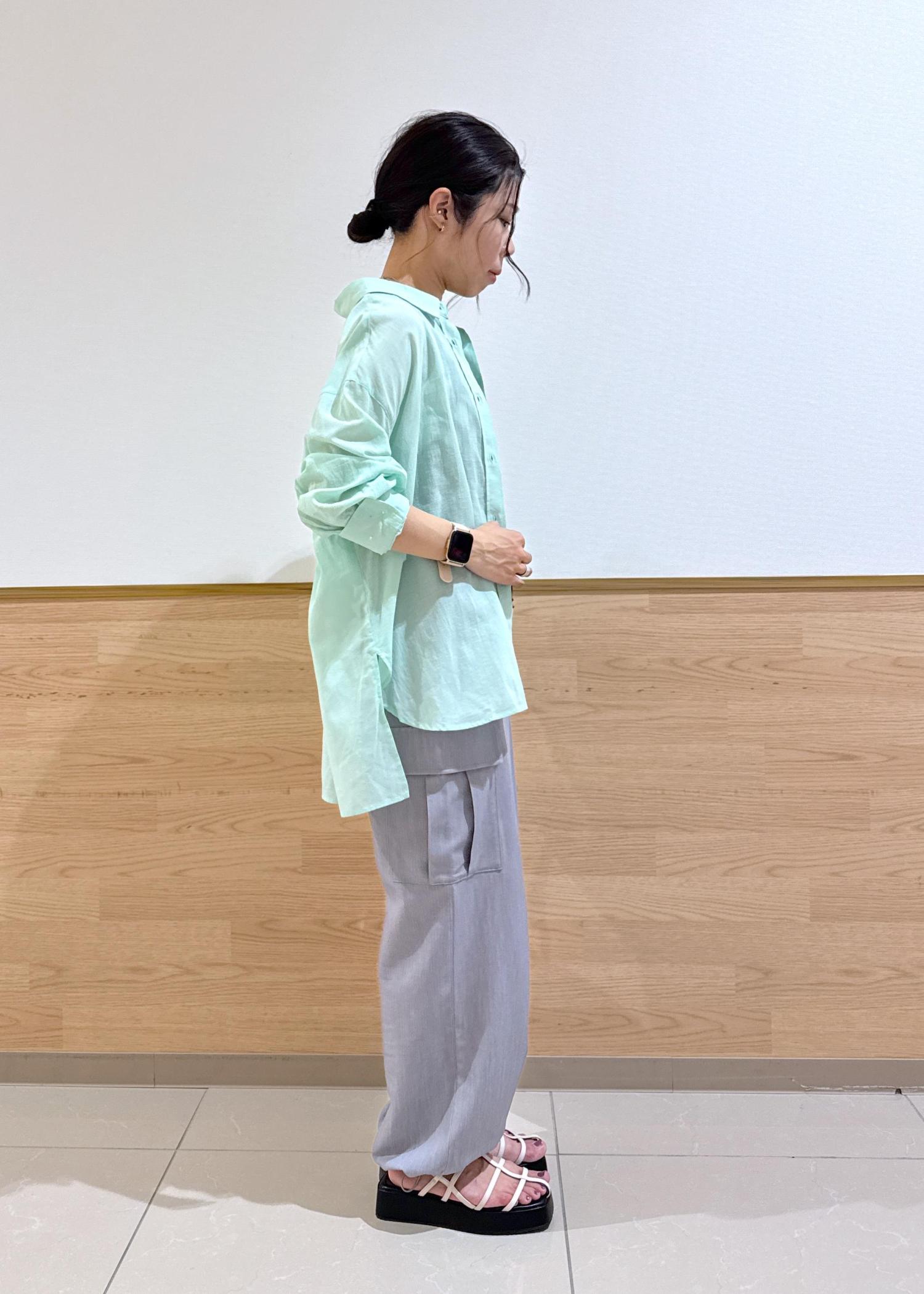 人気のお気軽シャツの新色グリーンを主役にカジュアルコーデ!