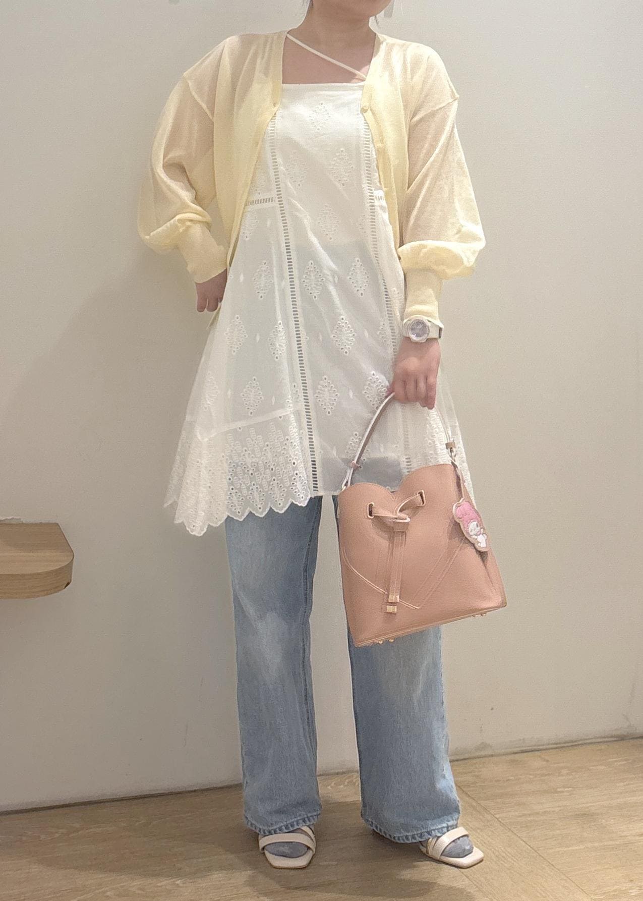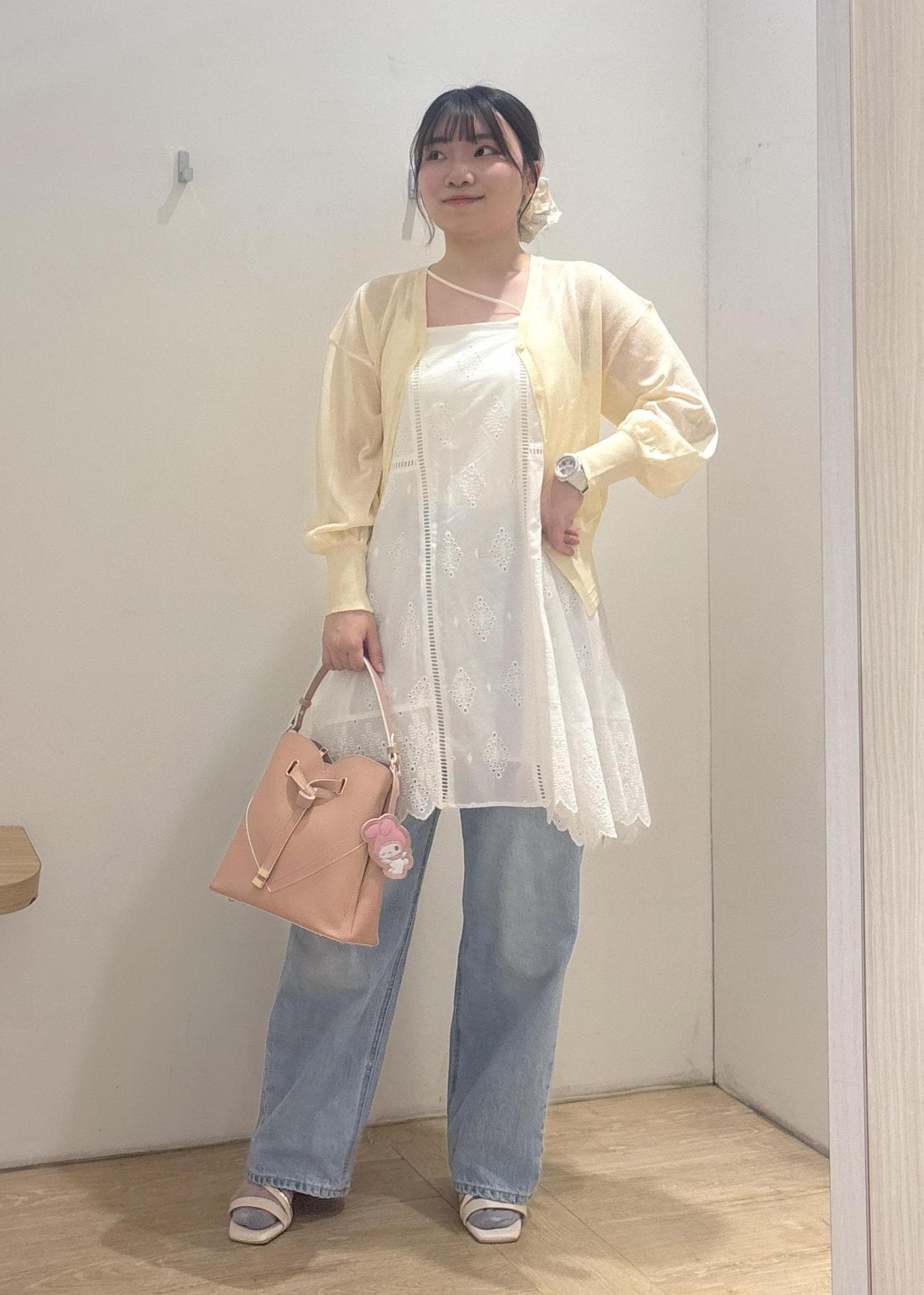 アウトレットVISカットワークレースキャミミニワンピースオフホワイト / F¥4,450レビューチュニック型のワンピースなので非常に着回ししやすいです。レイヤードスタイルとしてパンツと合わせるのがおすすめです!