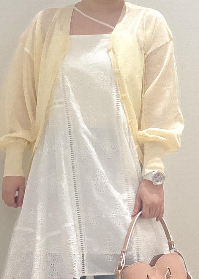 アウトレットVIS【前後2WAY】ハート釦シアーカーディガンホワイト系 / F¥3,293レビュー前後2WAYで着ていただけるアイテムです!サラッとした素材なのて、夏場の羽織に大変おすすめです。