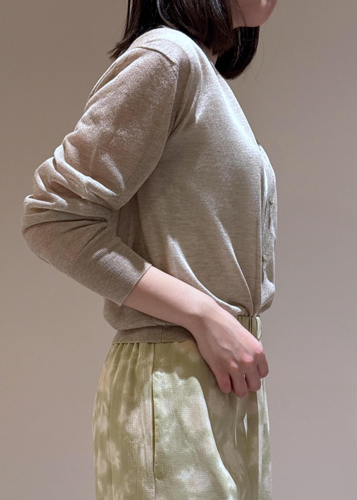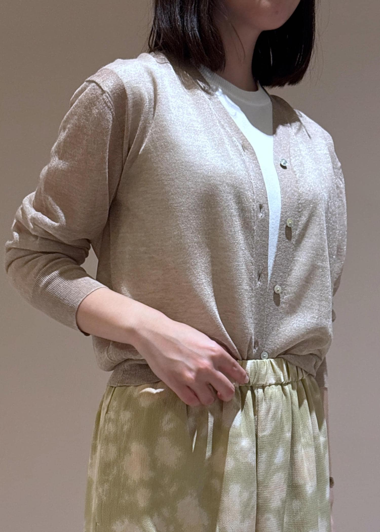 これからの季節にピッタリなシアーカーディガンを使ったコーデ。