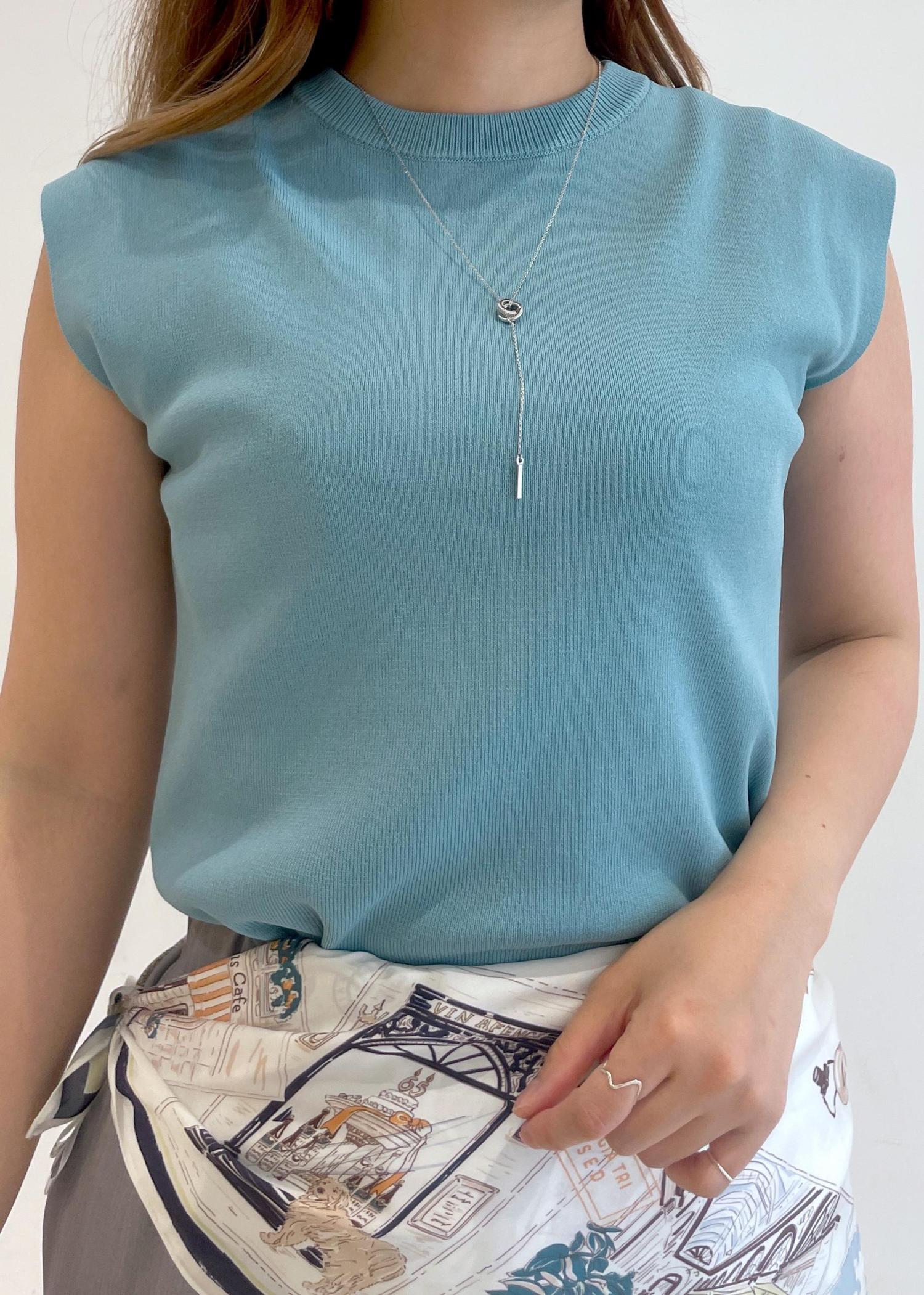 大人気のゼロスリーブのサックスブルーをポイントにベーシックなカラーで合わせたコーディネートです!