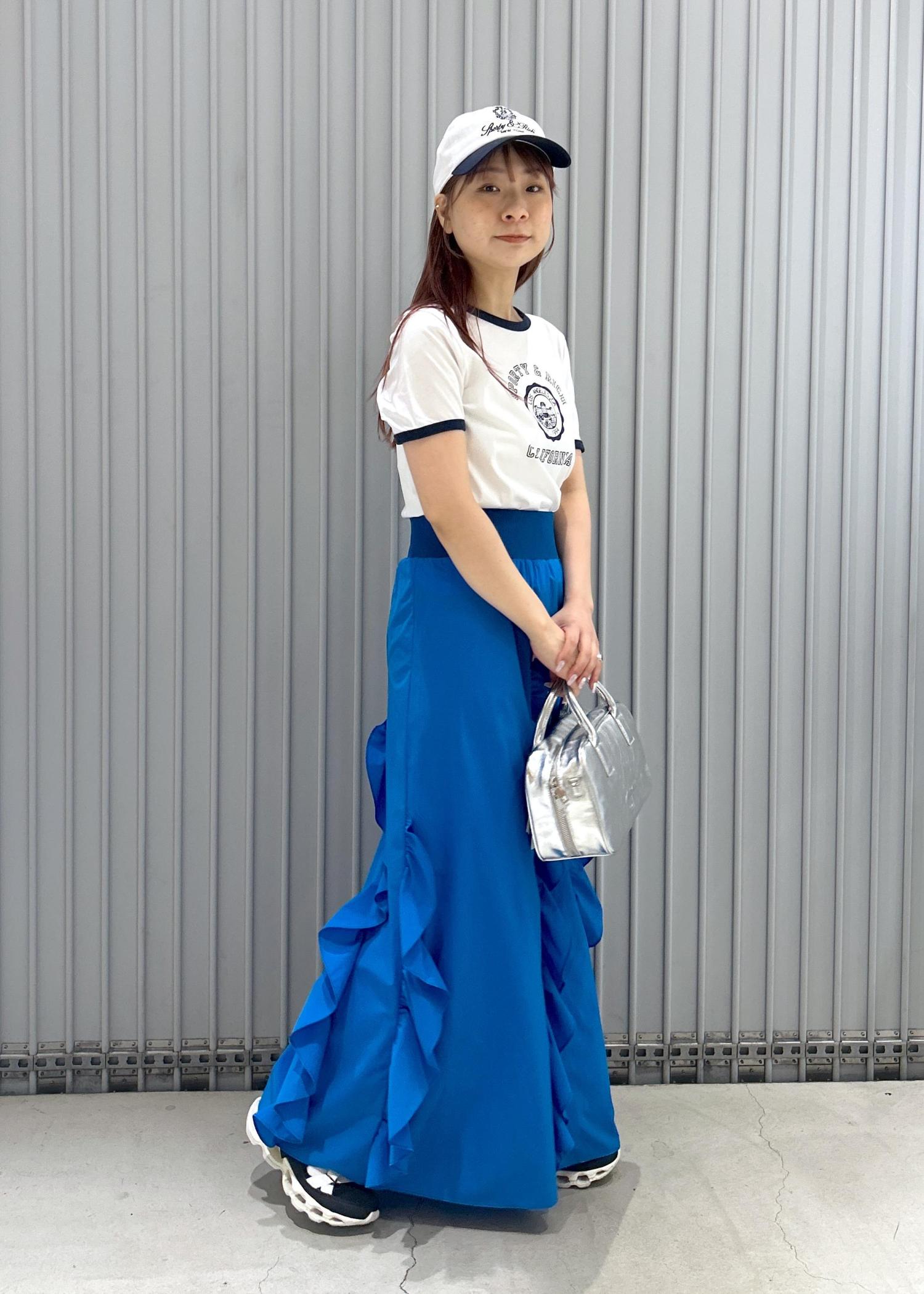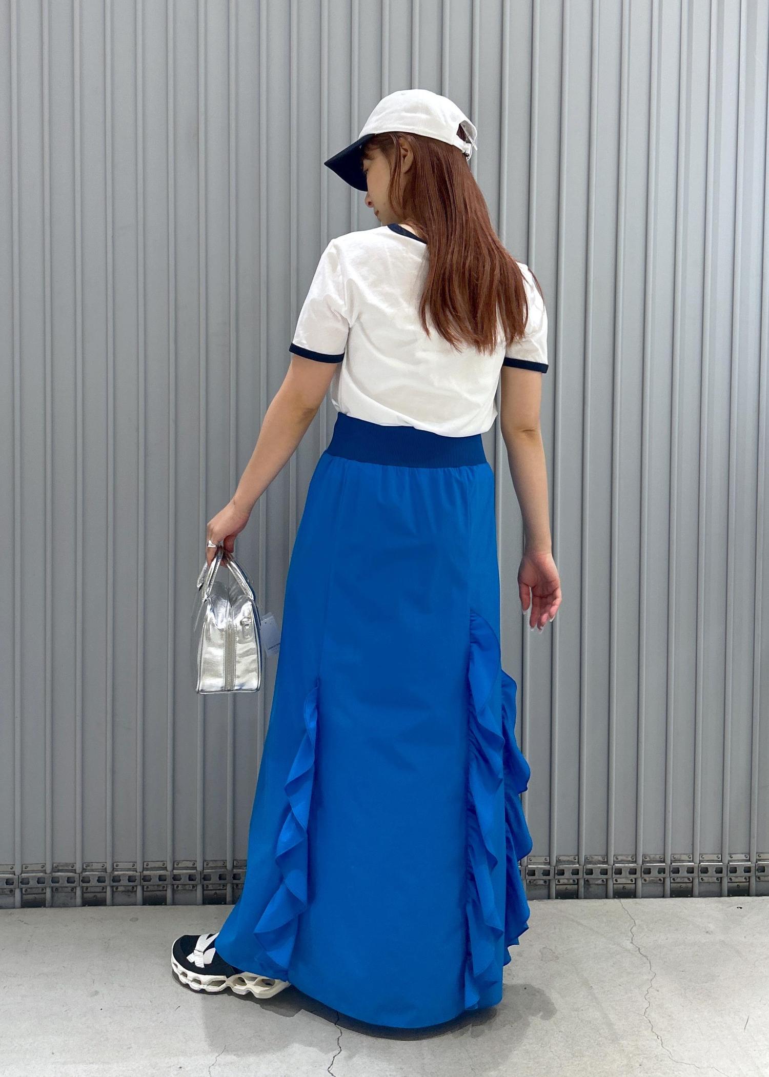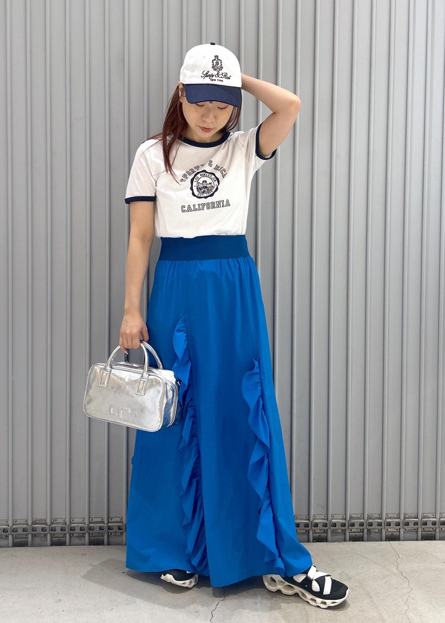 フリルが存在感ありますがシャカッとした素材で甘すぎないです!