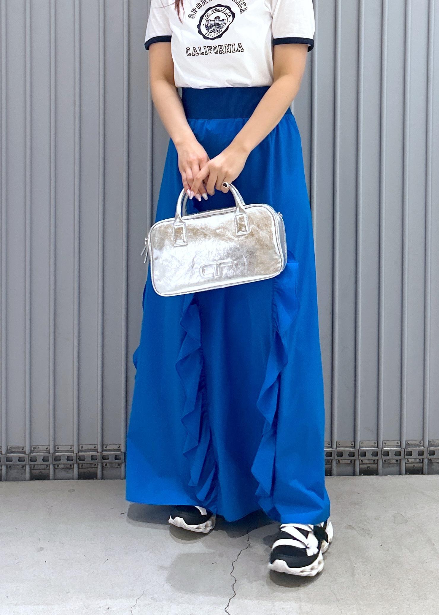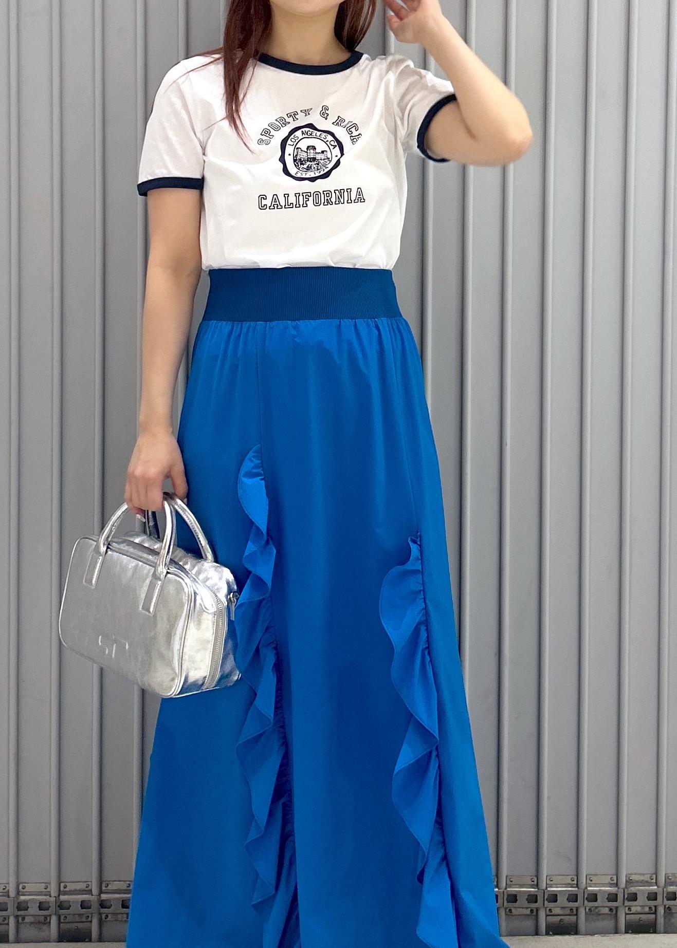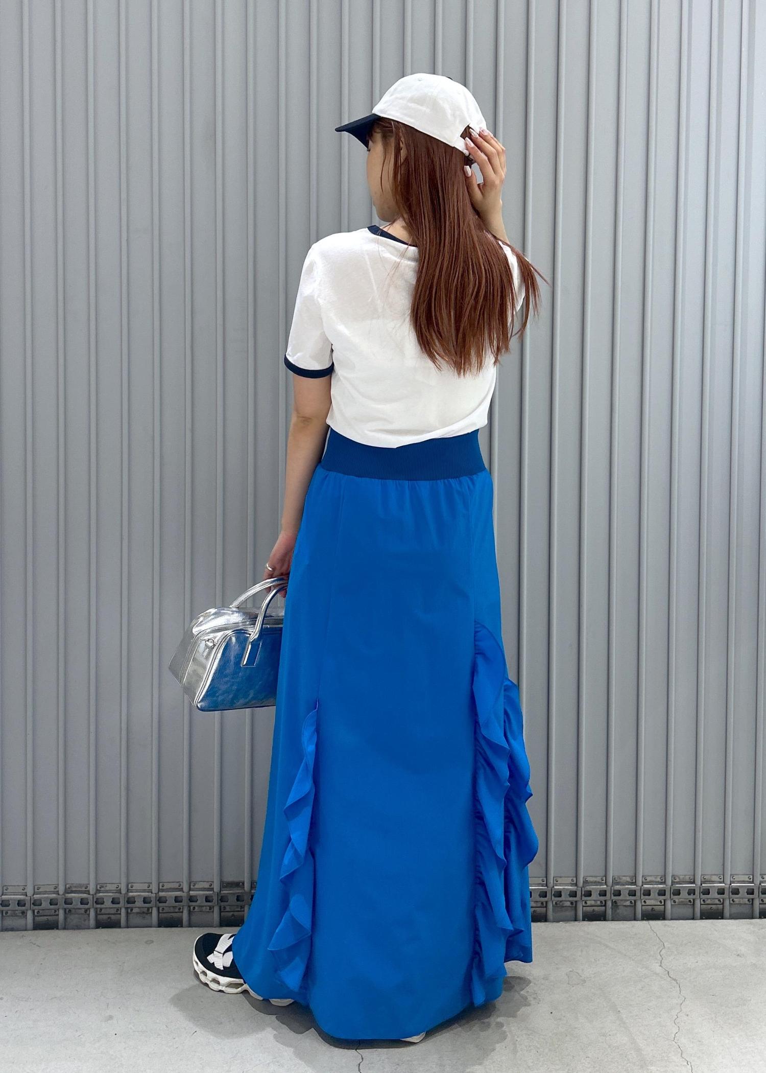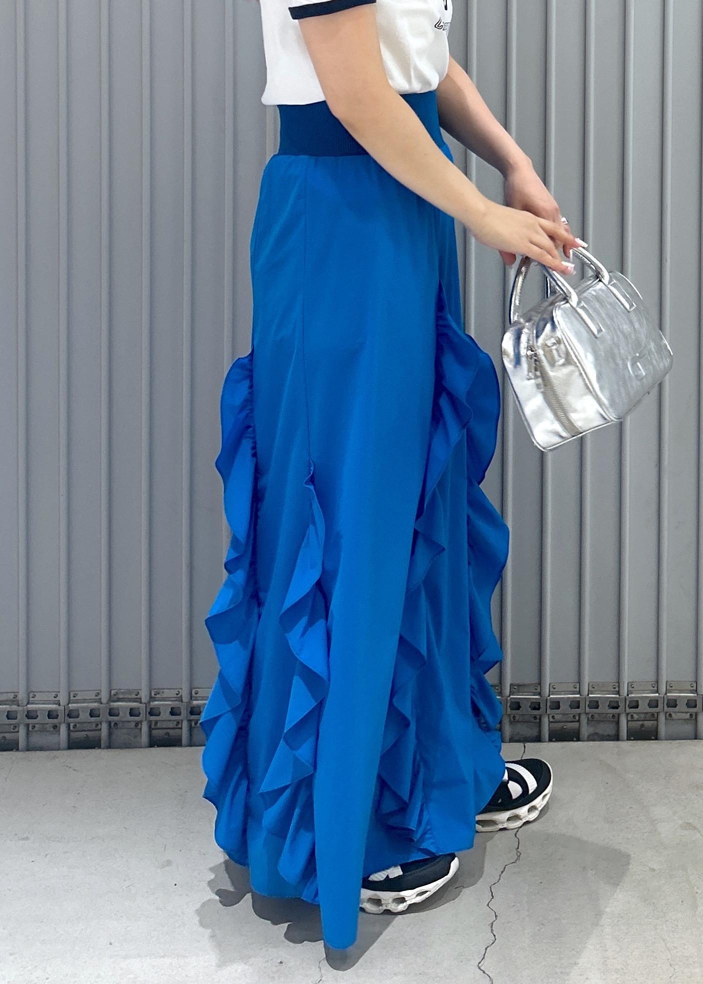 フリルが存在感ありますがシャカッとした素材で甘すぎないです!