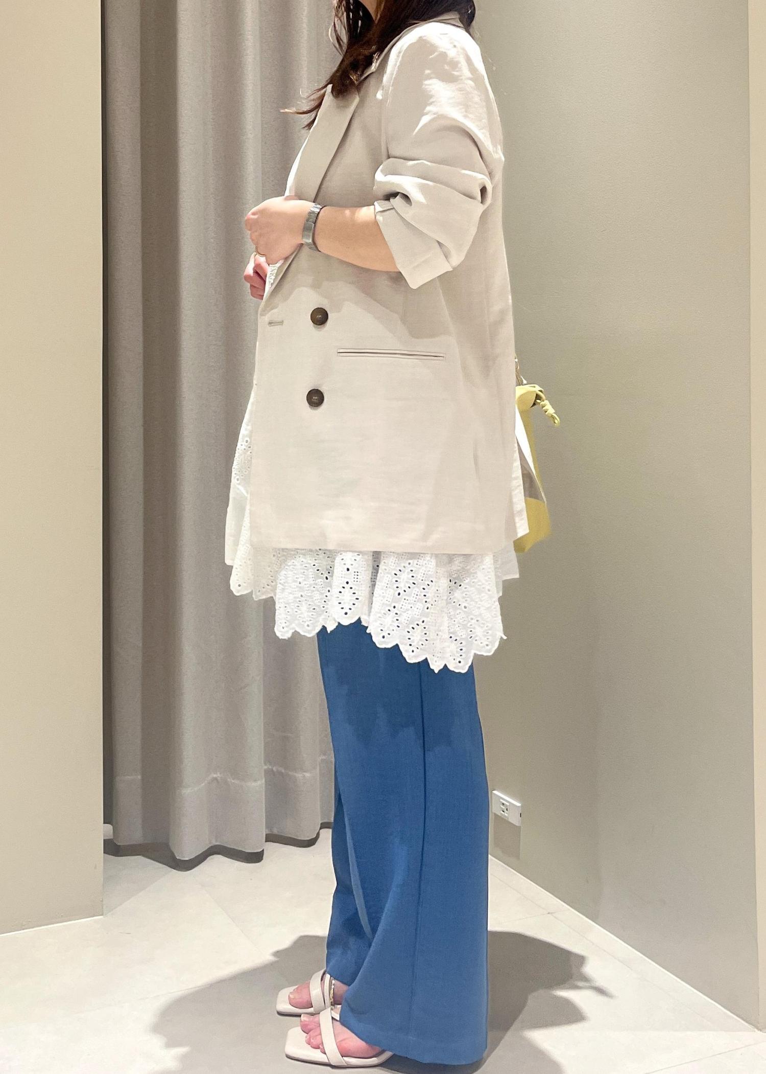 身長152センチで、フラットな靴だと裾が付きますがソールが厚めのスニーカーや4、5センチ程度のヒールでちょうど良く履けます。 -