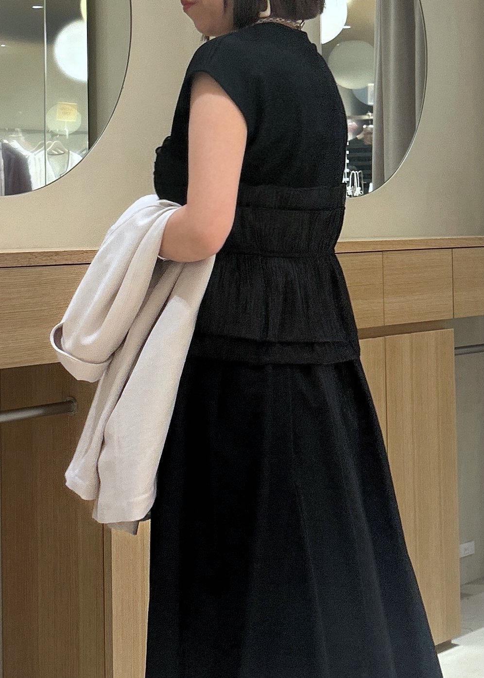 VIS旬なレイヤードスタイルが叶う!ビスチェドッキングフレンチスリーブプルオーバー【洗える】ブラック系 / F¥5,489レビュー一枚で着映えするビスチェドッキングニット。