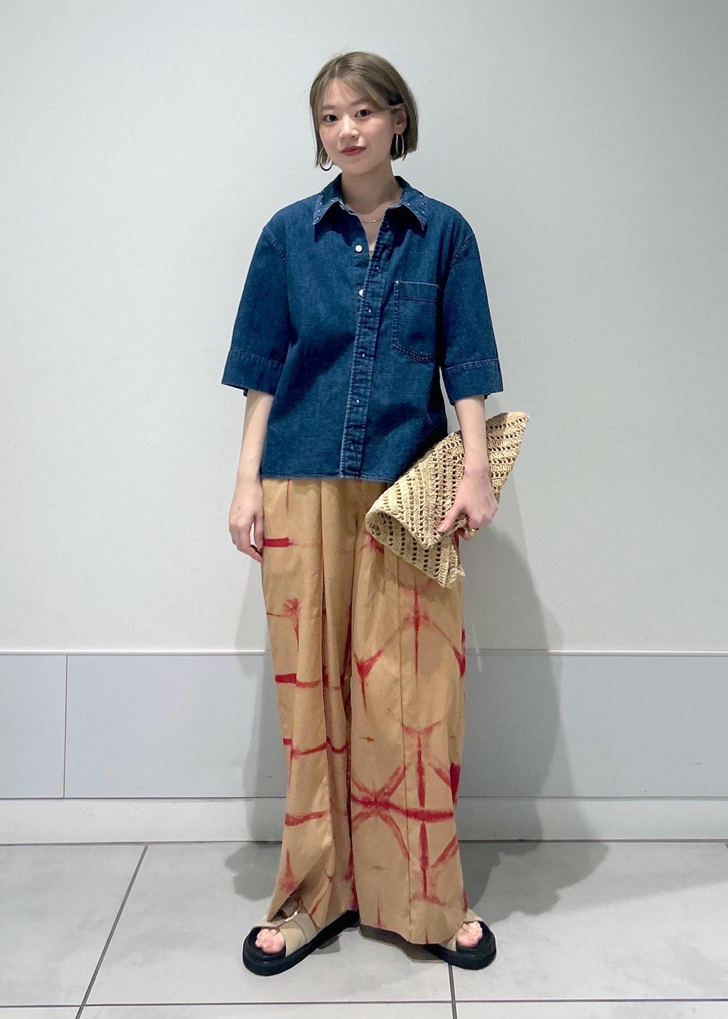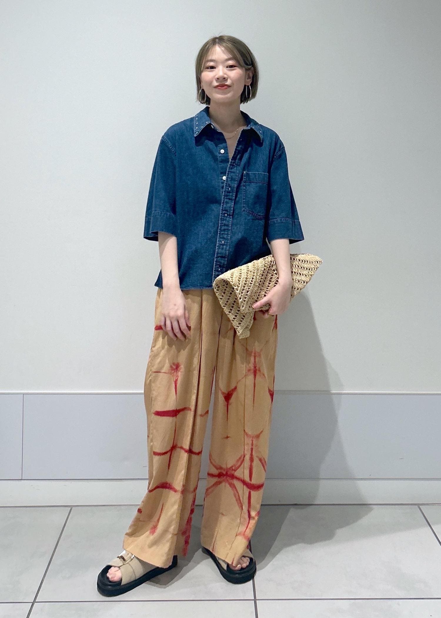 デニムジャケットと合わせて夏を意識したカジュアルなコーディネートにまとめました◎