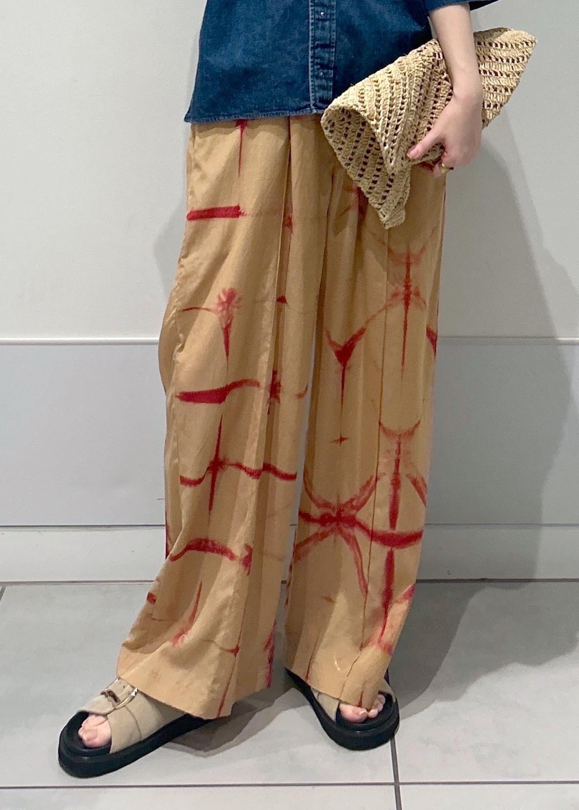 オレンジ×レッドの鮮やかなカラーがポイントになるパンツ。