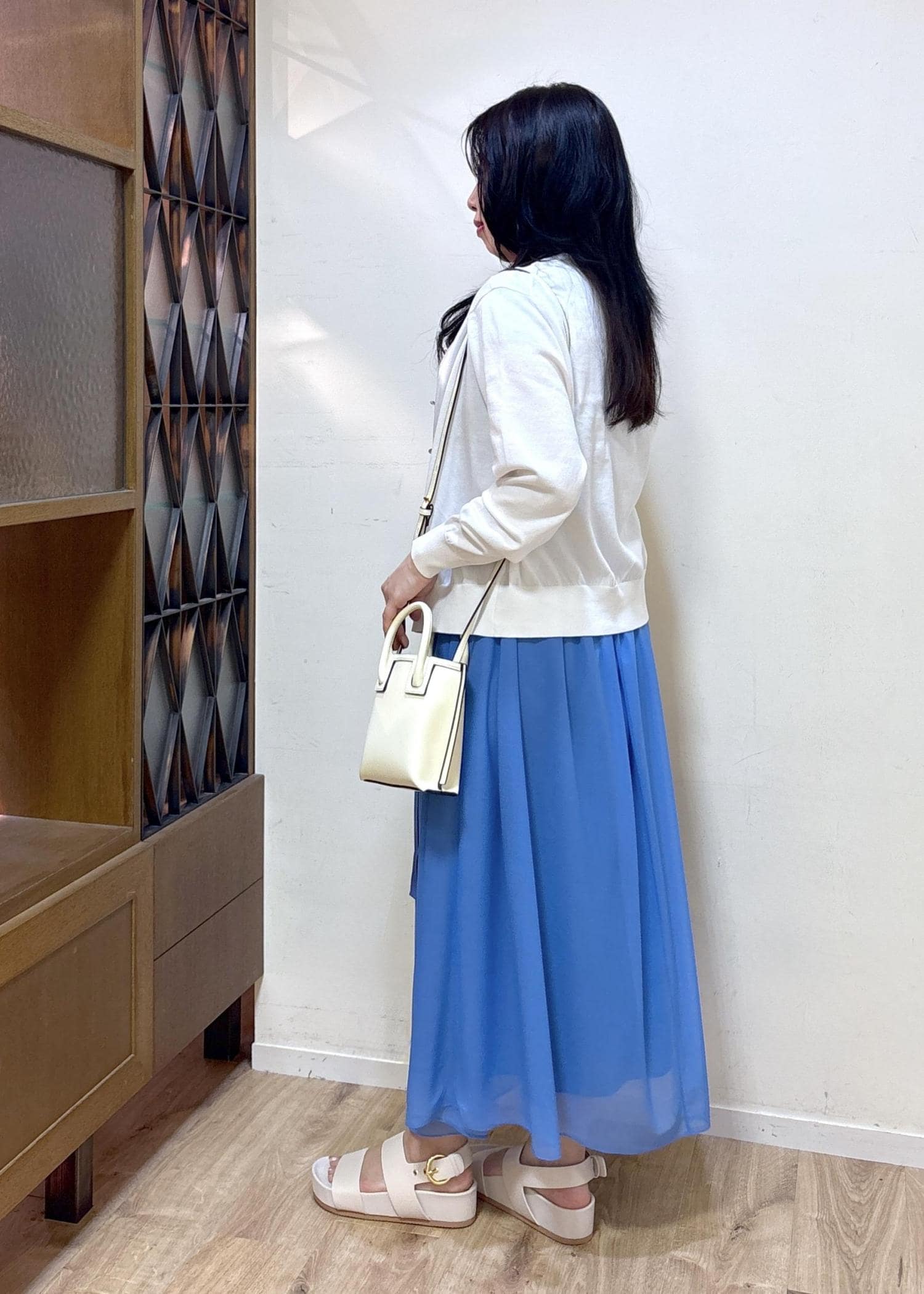 日常使いはふんわりとしたリラックスシルエットで、リボンベルトを結んでウエストマークするとスッキリとスタイルアップで、オケージョンなどきちんとしたシーンにもオンオフ問わずお使いいただけます。
