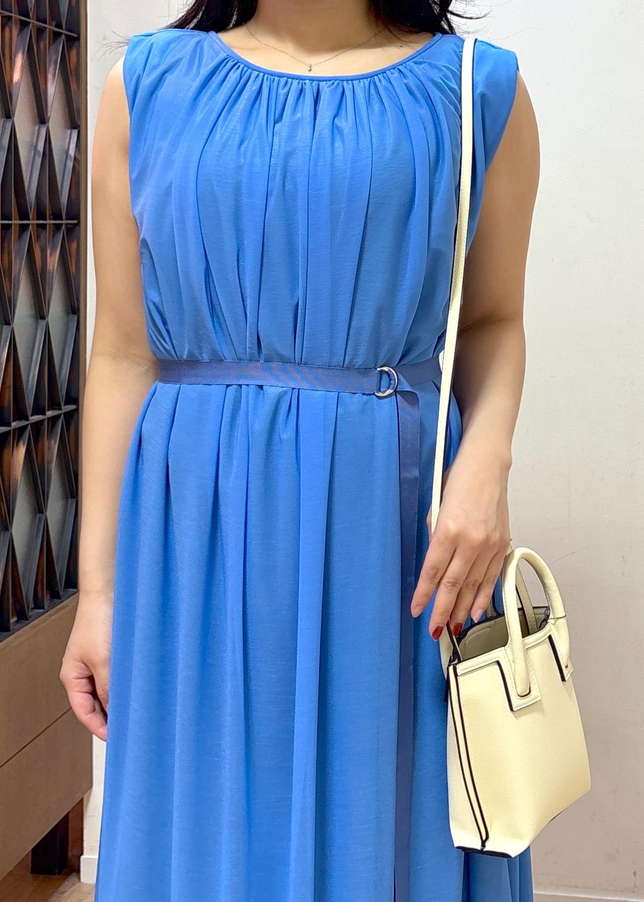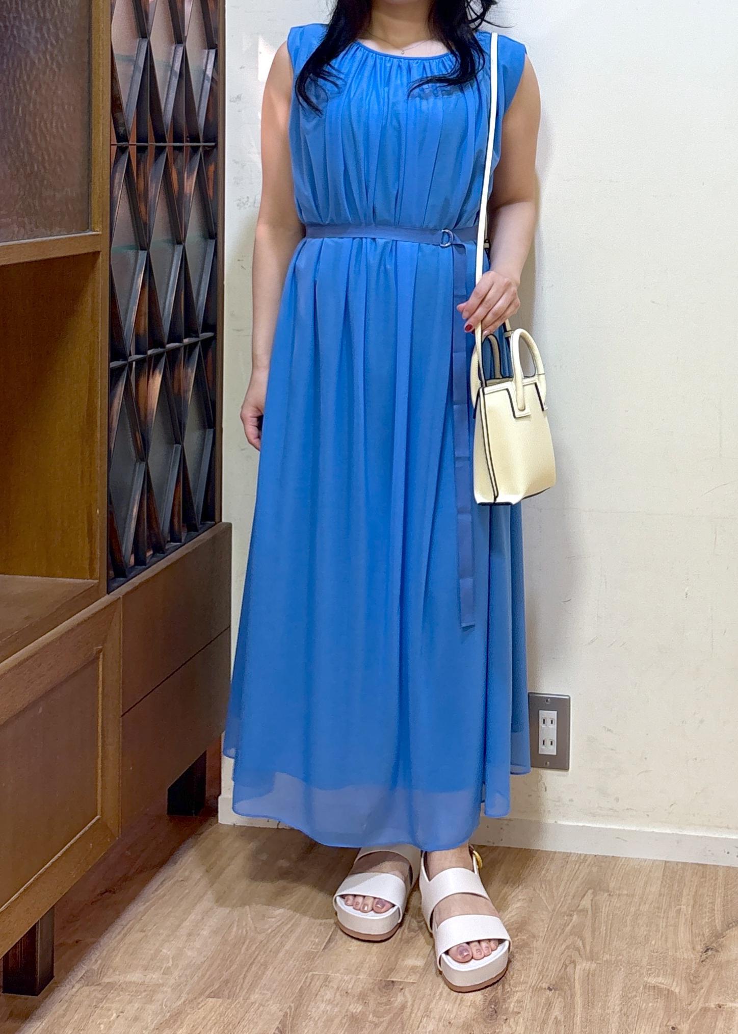 アウトレットROPÉ【洗える・新色追加】ブライトネスヤーンギャザーワンピースブルー / 38¥17,820レビュー身長152cm 38サイズ着用