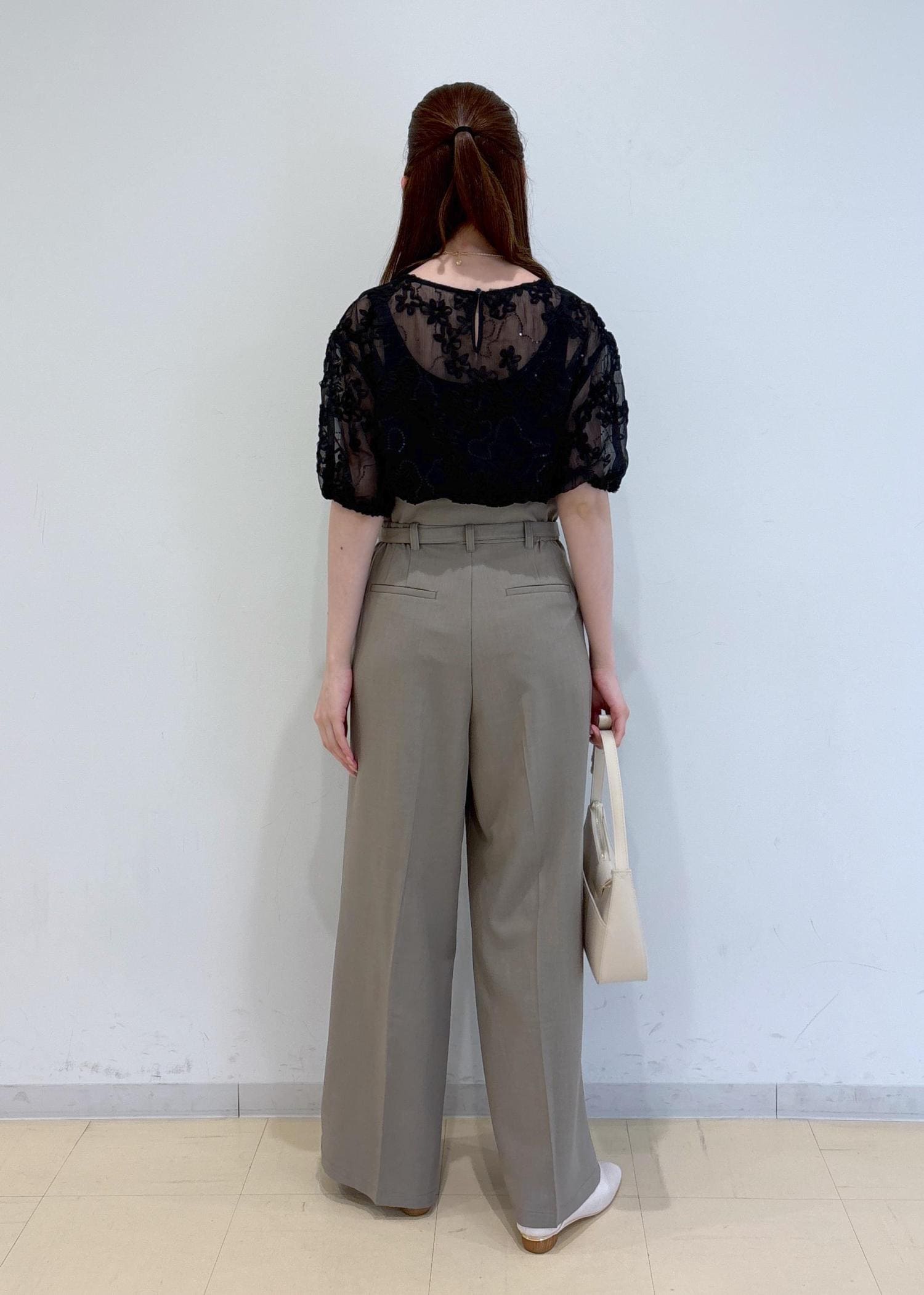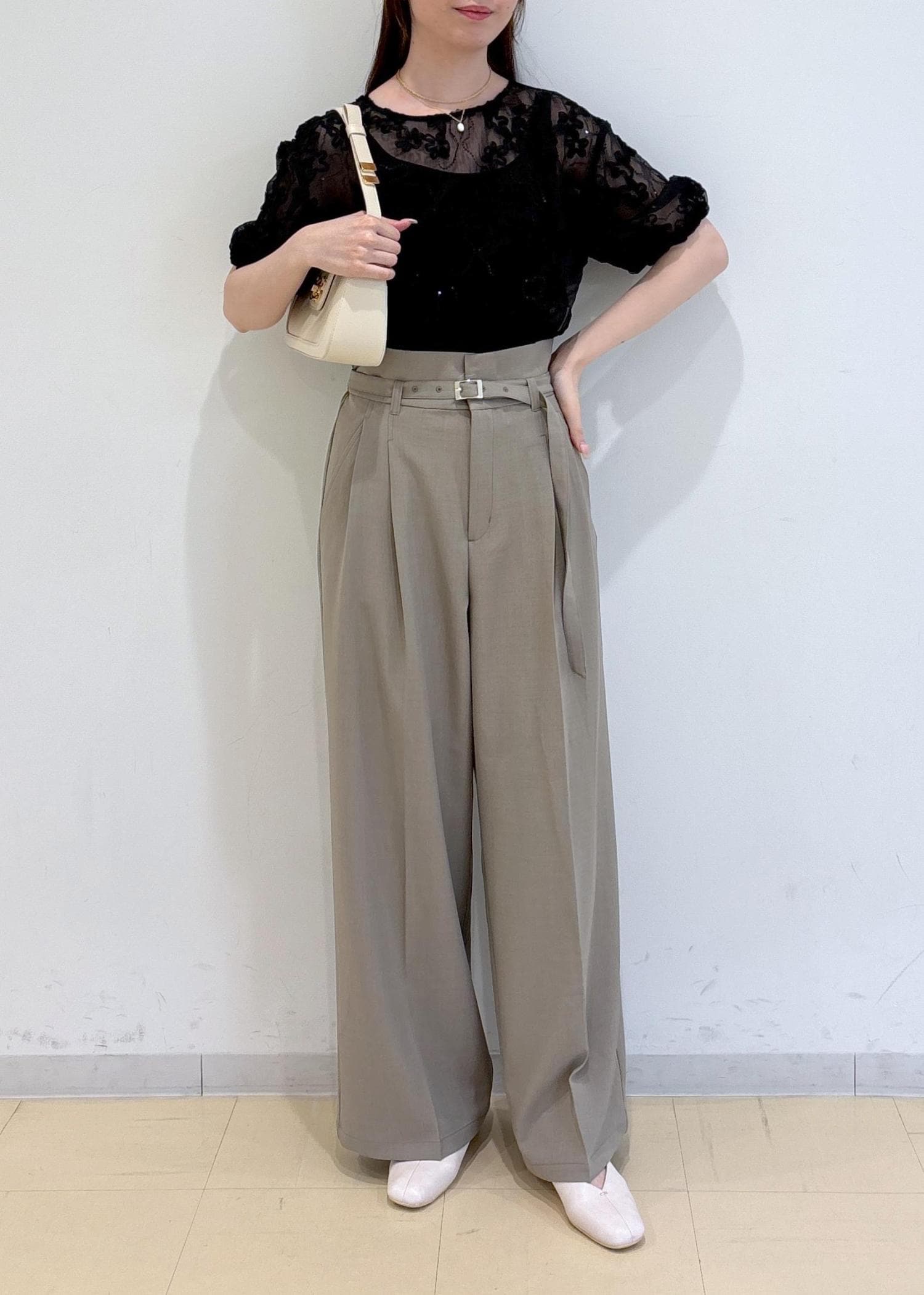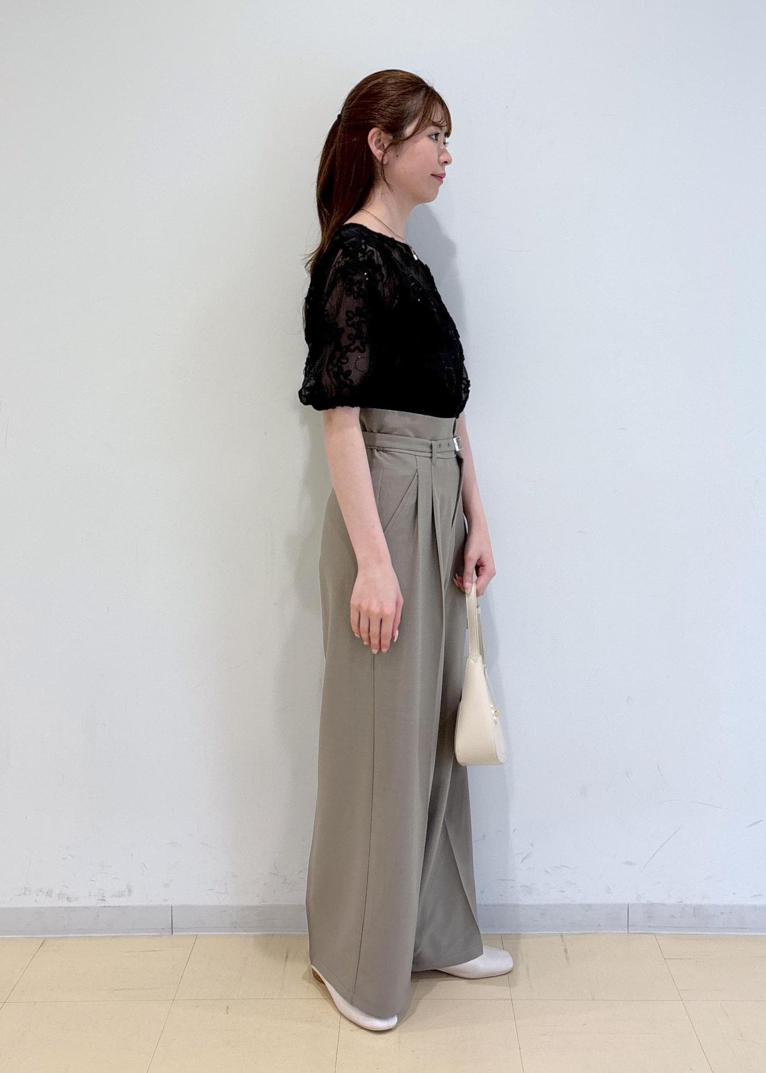 ハイウエストなので足が長く見えてスタイルアップが叶います!ワイドシルエットなので体型カバーができ、さらっとした素材感で楽に着用できました。 -